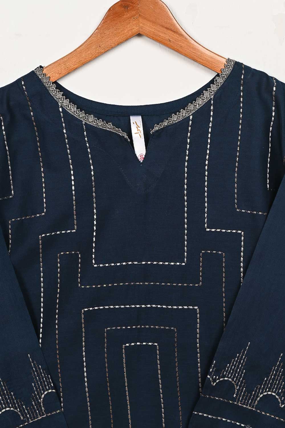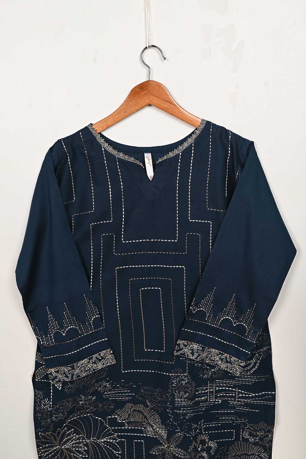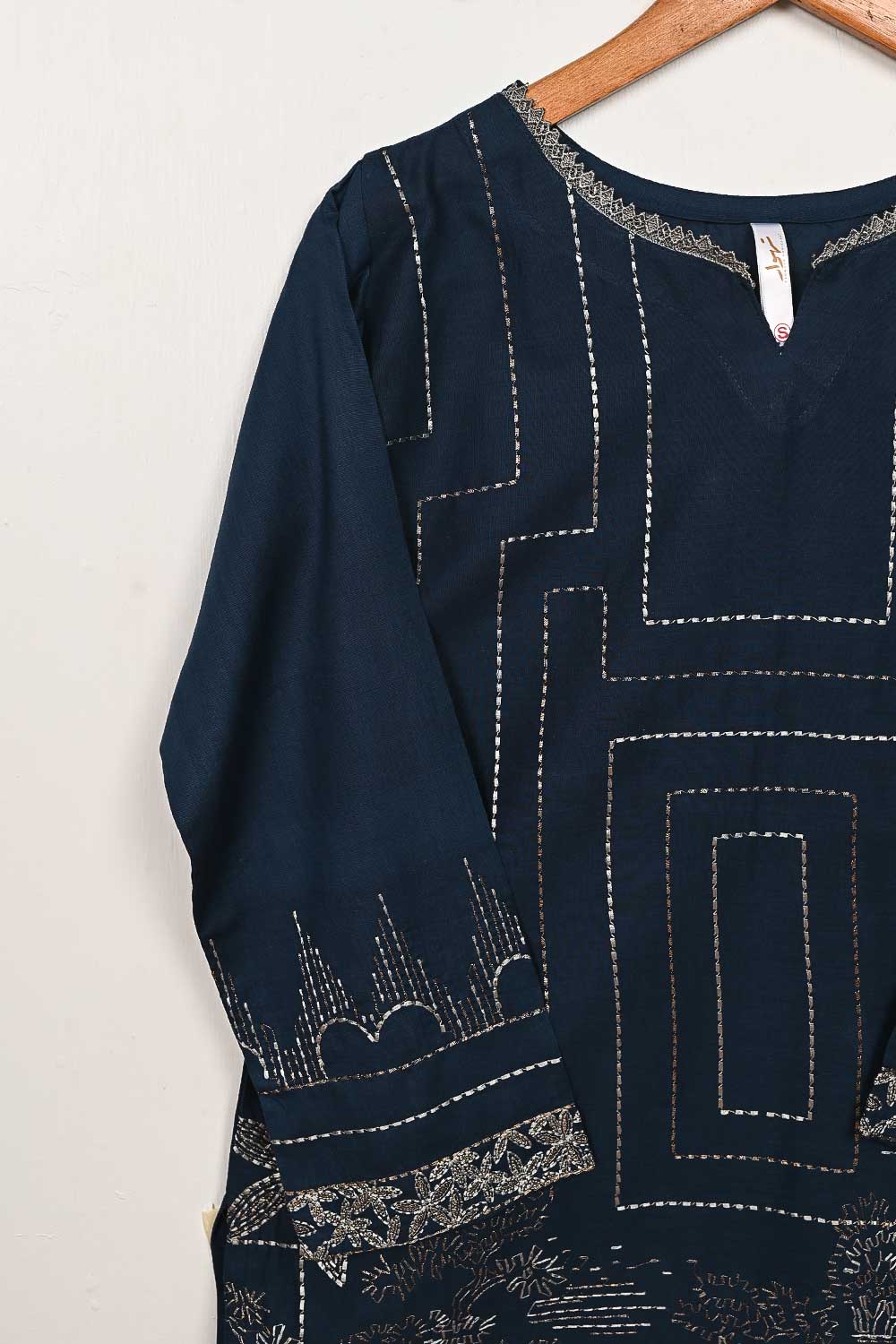 3SP-11A-NavyBlue - 3Pc Cotton Embroidered Dress With Chiffon Embroidered Dupatta