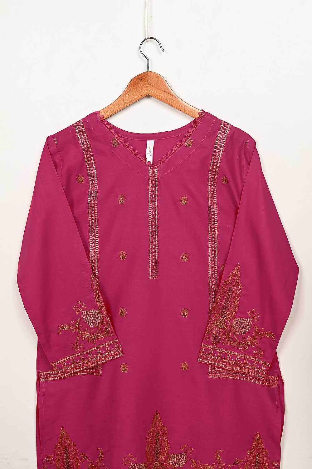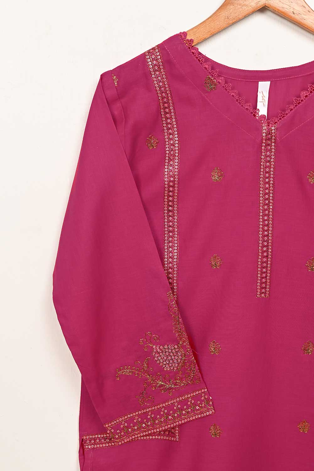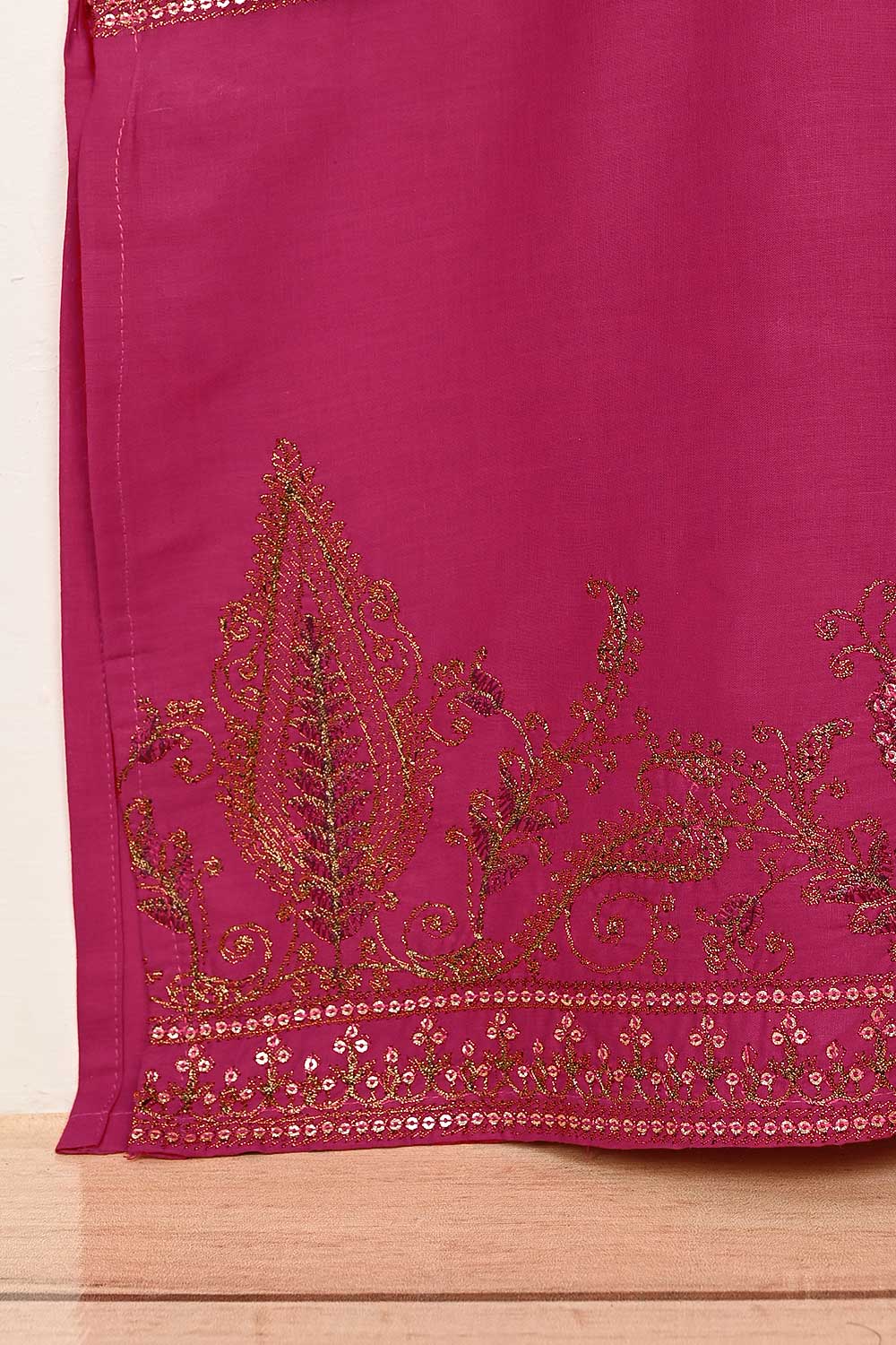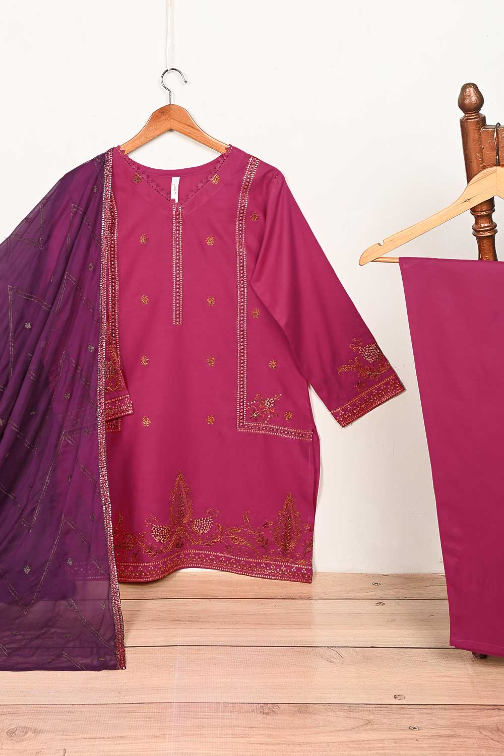 3SP-13B-Fuchsia - 3PC COTTON EMBROIDERED Dress With Chiffon Embroidered Dupatta