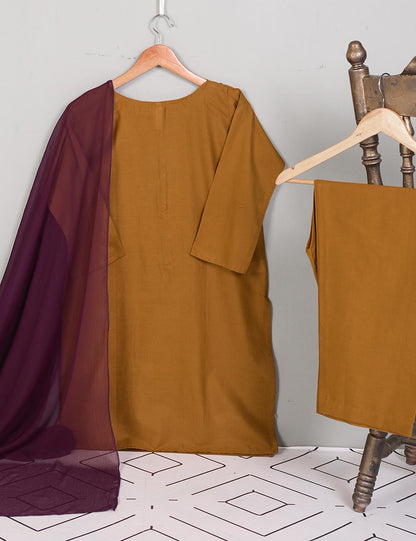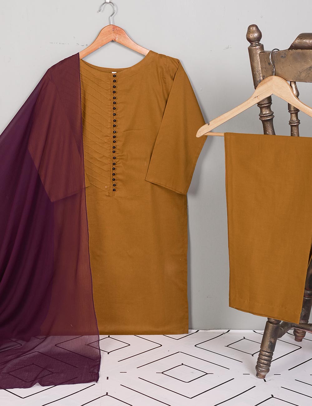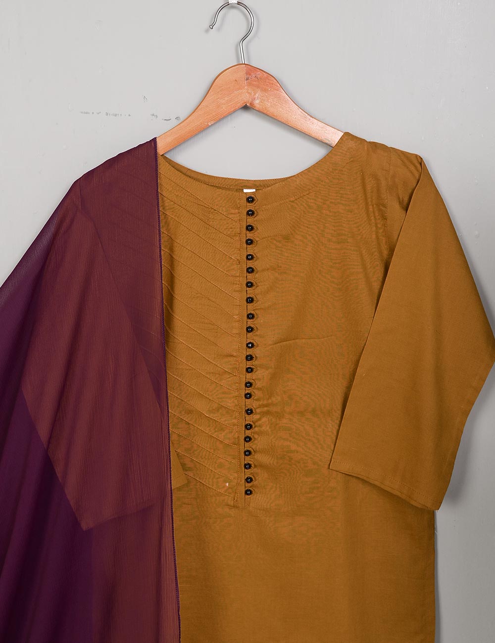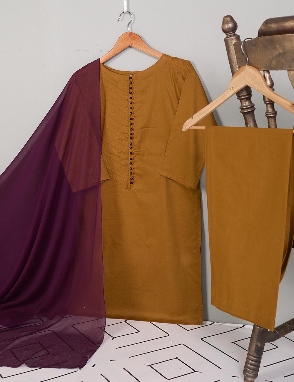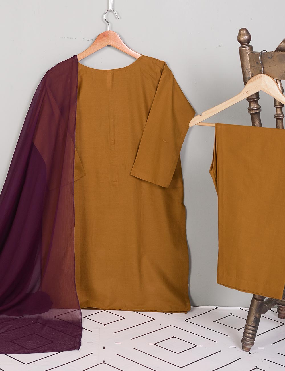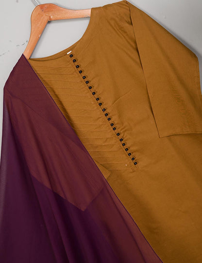 3SP-1A-Brown - 3PC COTTON Dress WITH Chiffon Dupatta