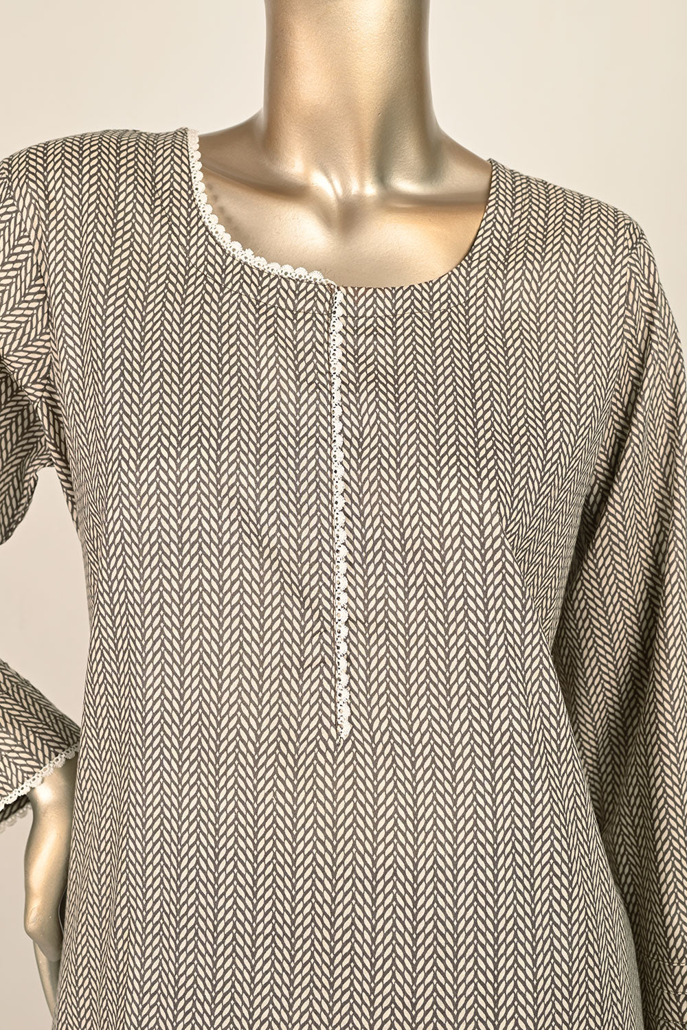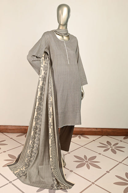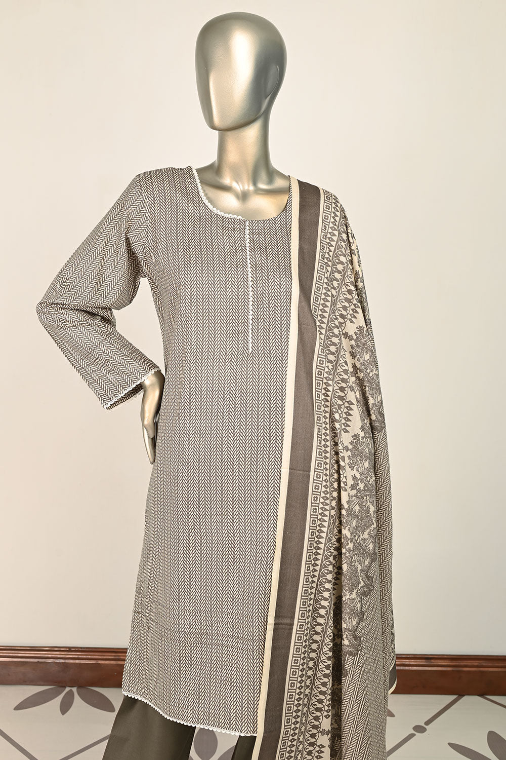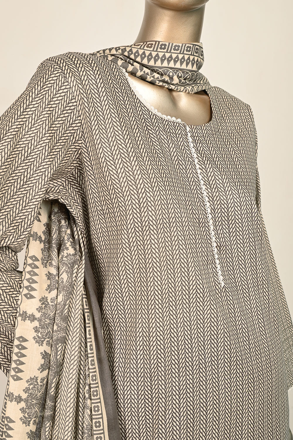 3SP-23- Gray- 3Pc Printed Lawn Stitched Dress