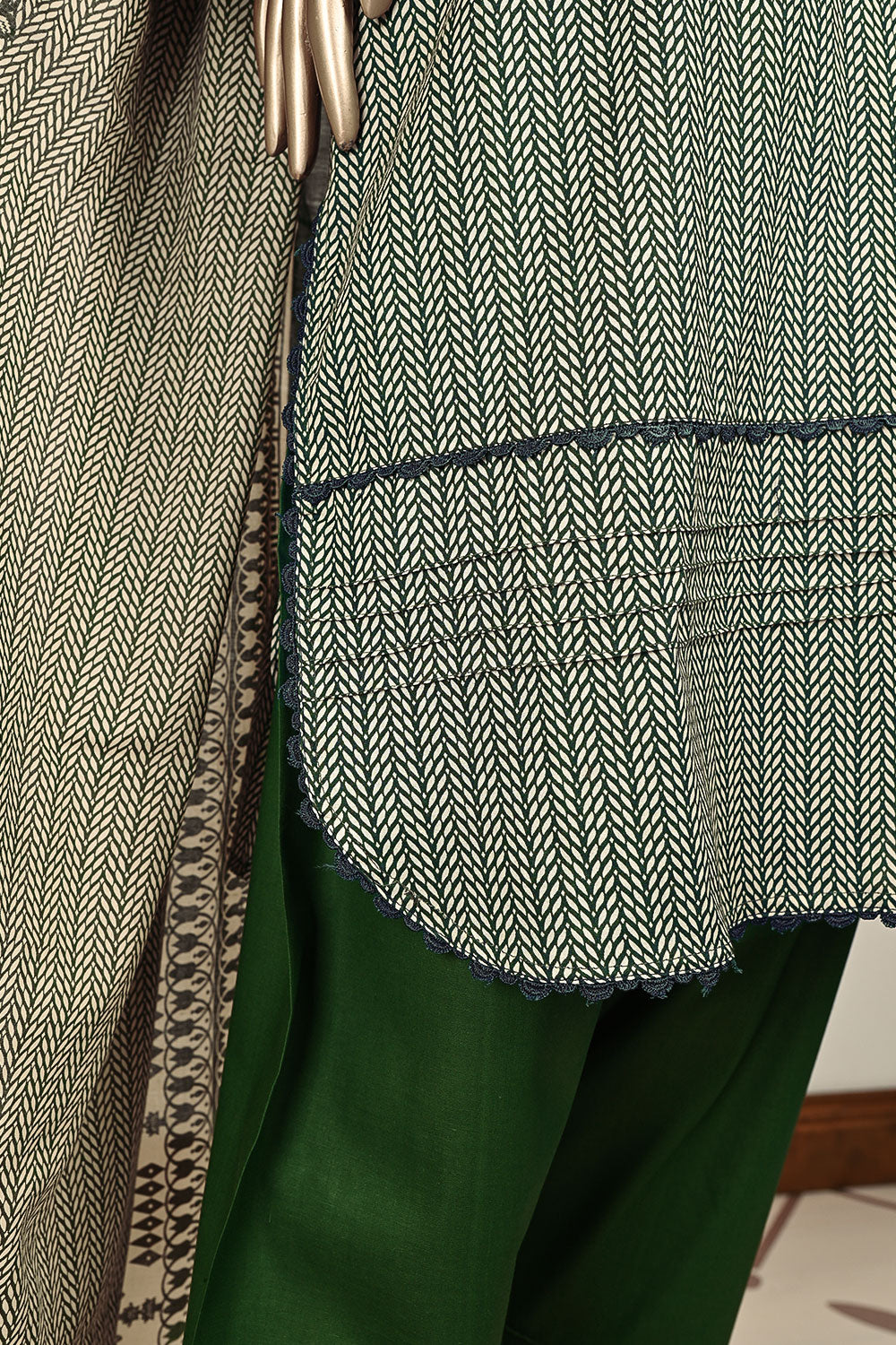 3SP-24-GREEN - 3PC Printed Lawn Stitched Dress