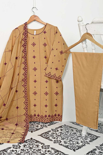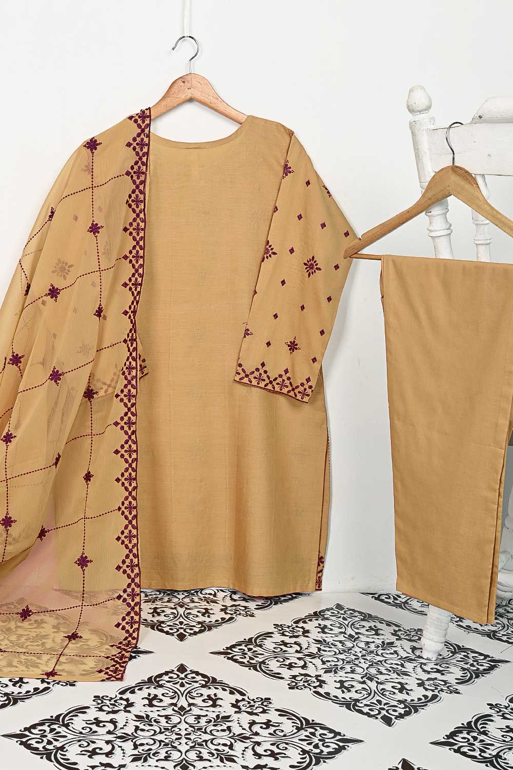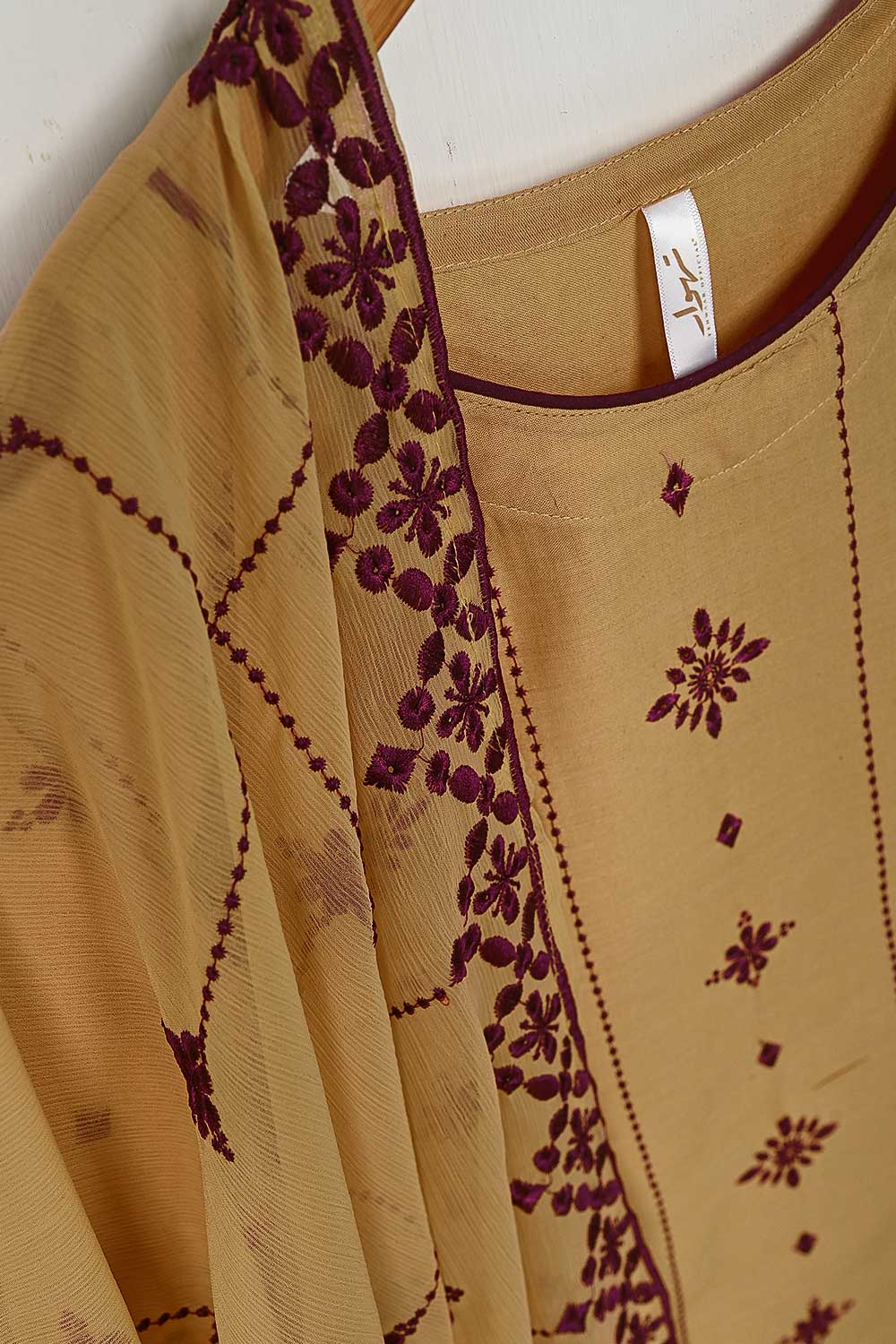 3PC Cotton Embroidered Dress With Chiffon Embroidered Dupatta