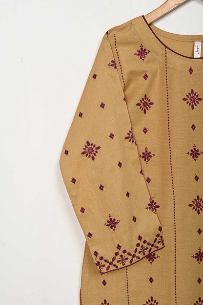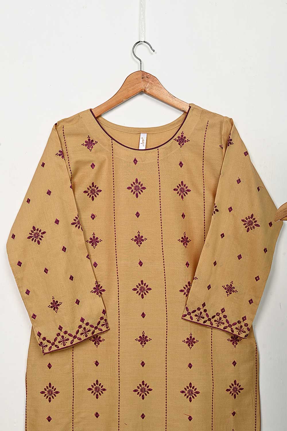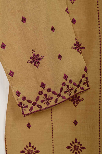 3SP-6A-SKIN - 3PC COTTON EMBROIDERED Dress With Chiffon Embroidered Dupatta
