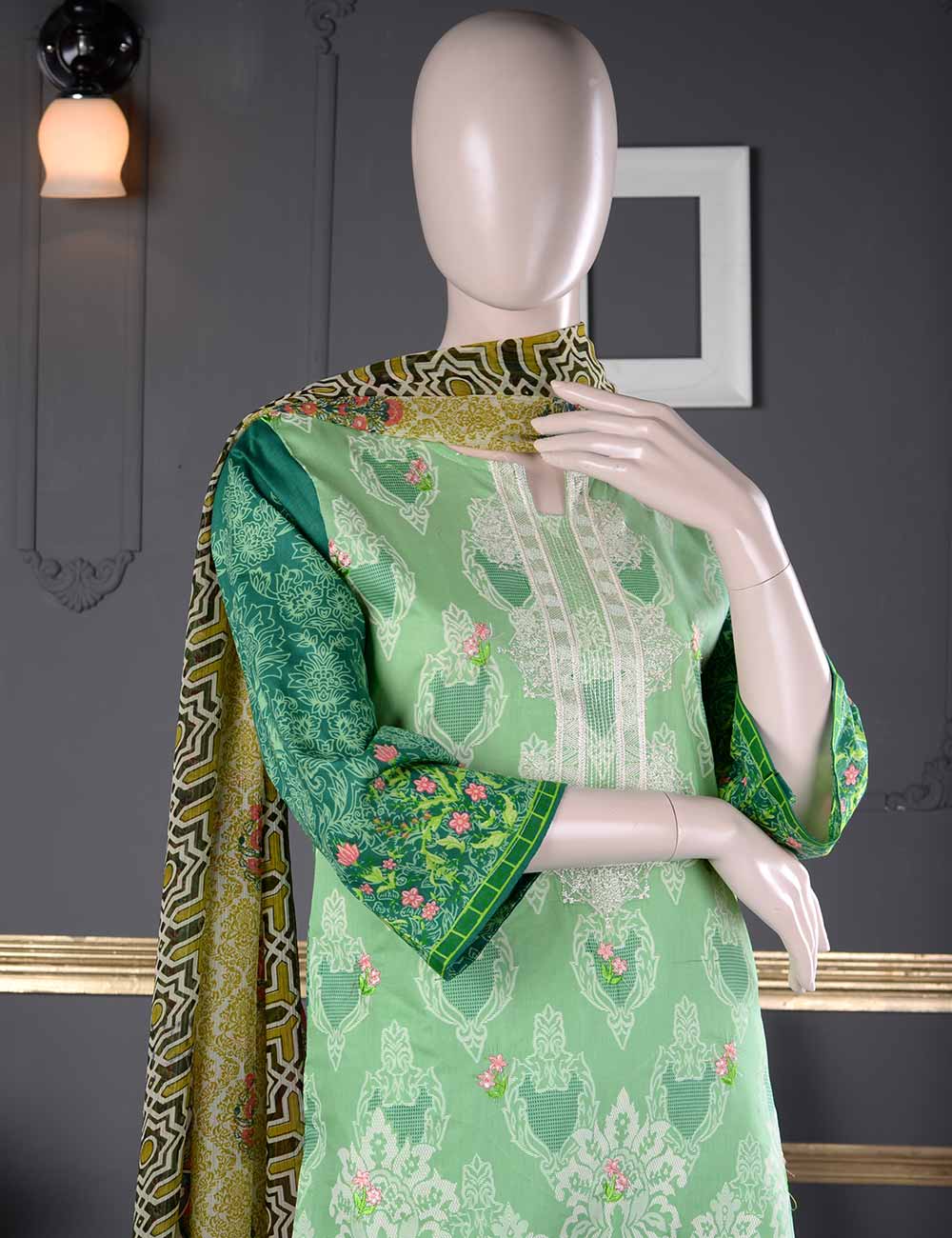 3 Pc Unstitched Embroidered Lawn Dress with Lawn Printed Dupatta