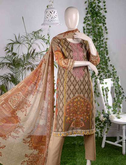 3 Pc Unstitched Embroidered Lawn Dress with Chiffon Printed Dupatta