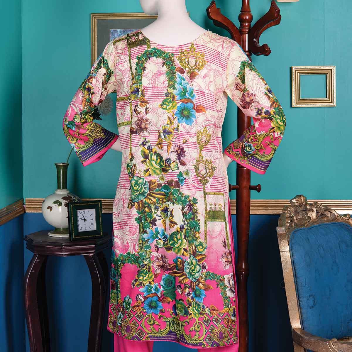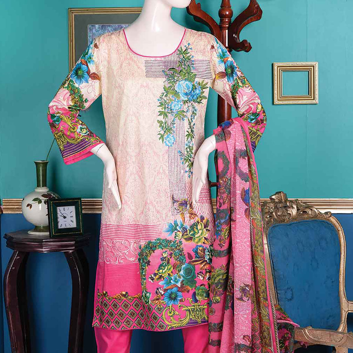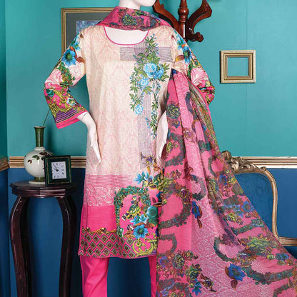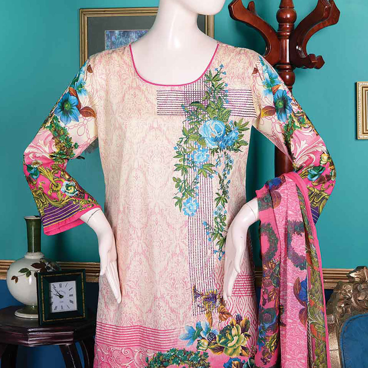 3 Pc unstitched embroidered lawn suit with chiffon printed dupatta.