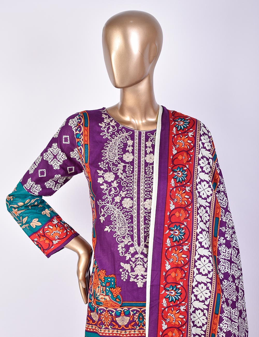 3 Pc Un-stitched Embroidered Lawn - Breezy Beach (ATL-3A-Purple)