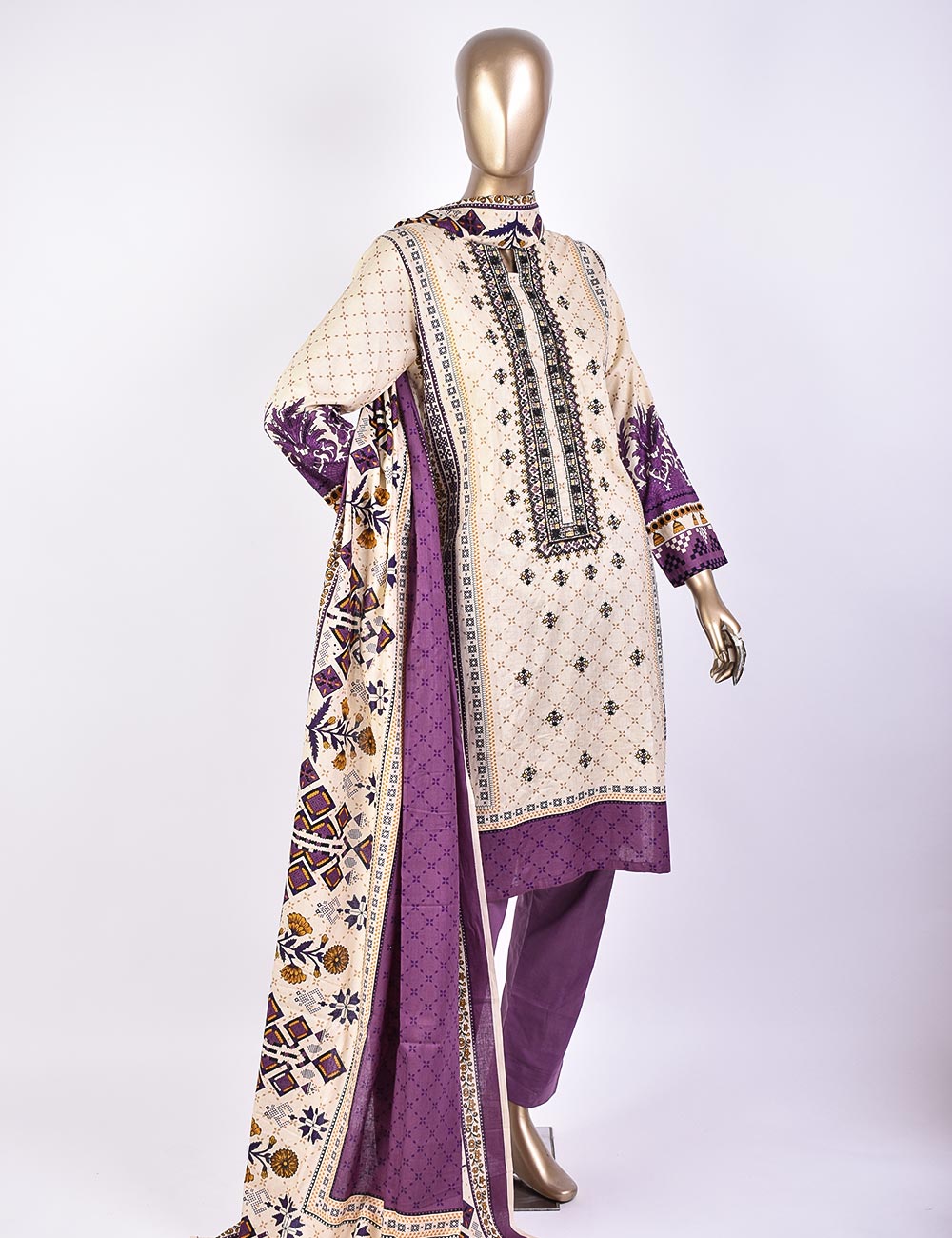 3 Pc Un-stitched Embroidered Lawn - Eternal Ethnic (ATL-4A-Skin Purple)