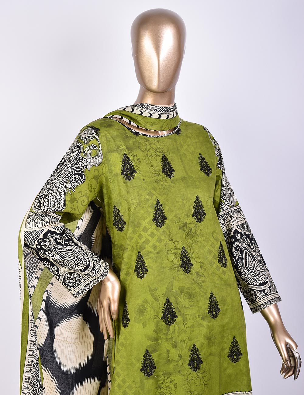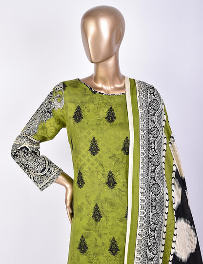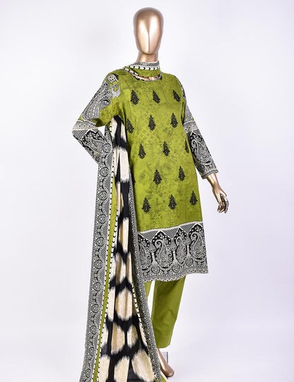 3 Pc Unstitched Embroidered Lawn Dress with Lawn Dupatta and Cotton Trouser
