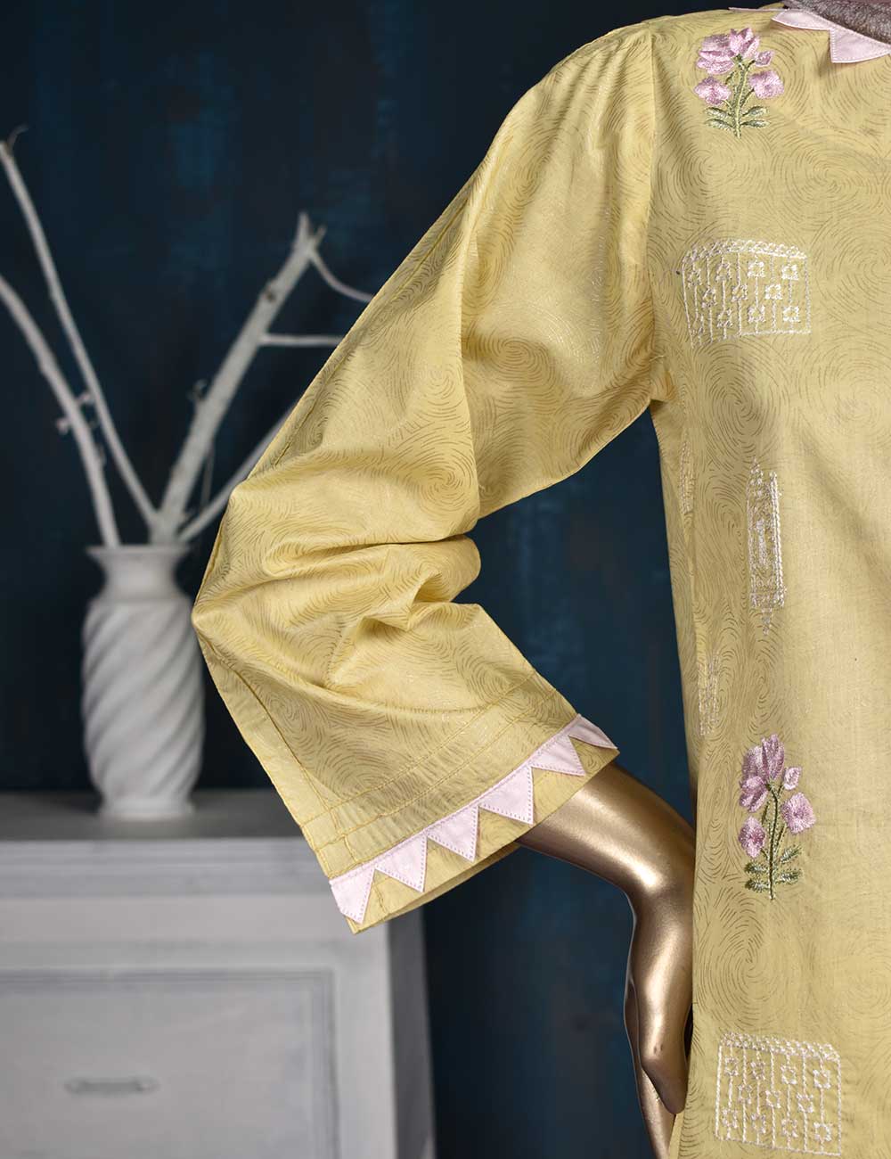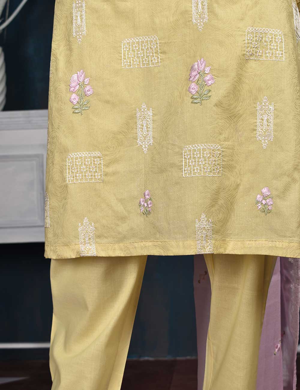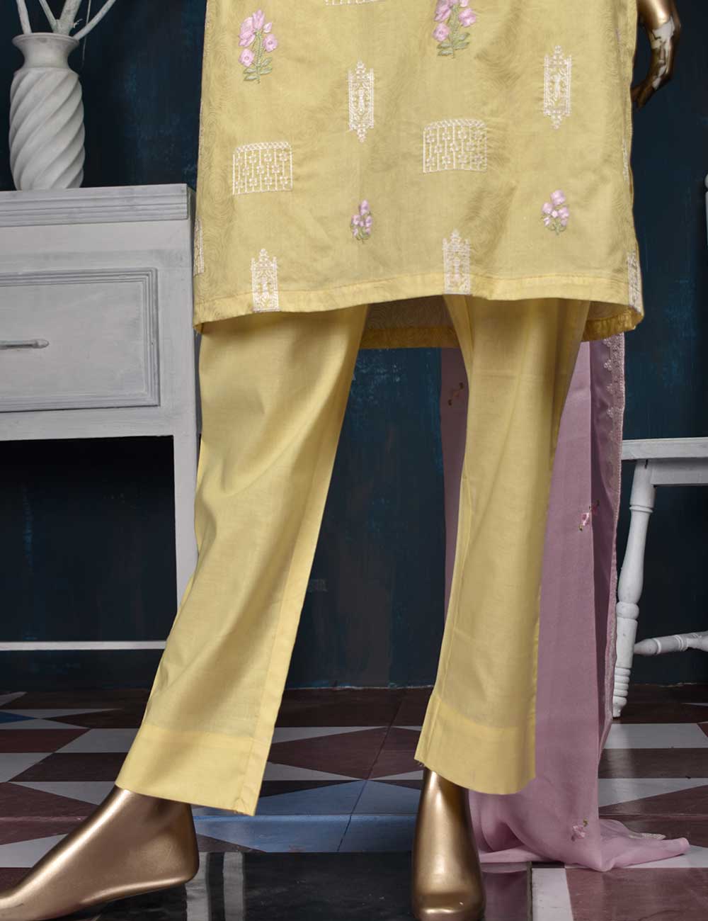3 Pc Printed and Embroidered Cotton Dress with Embroidered Chiffon Dupatta - Eyebrow (CE-2A-Lemon)