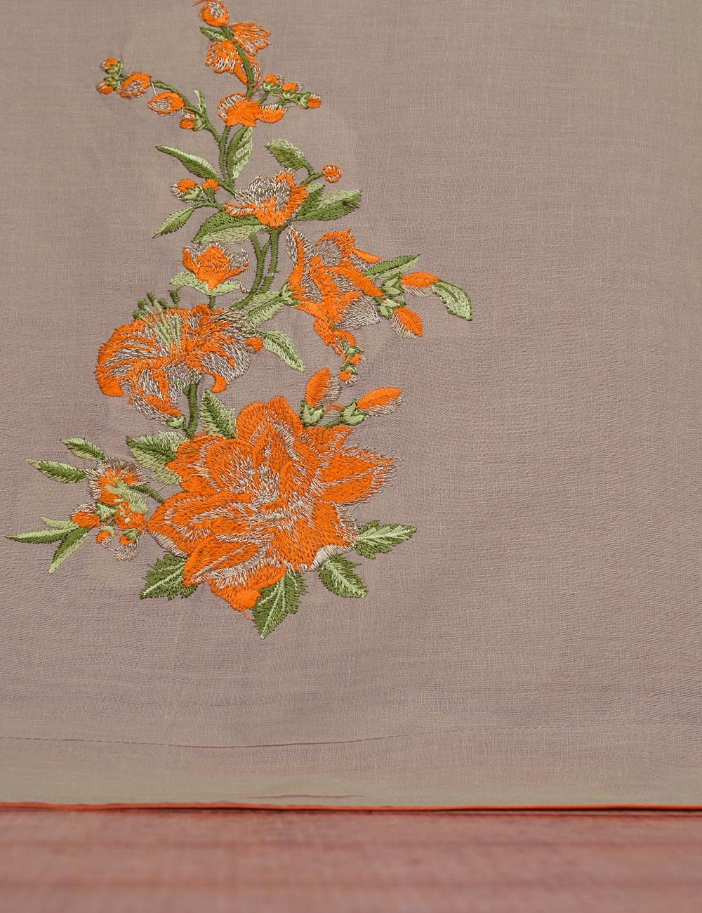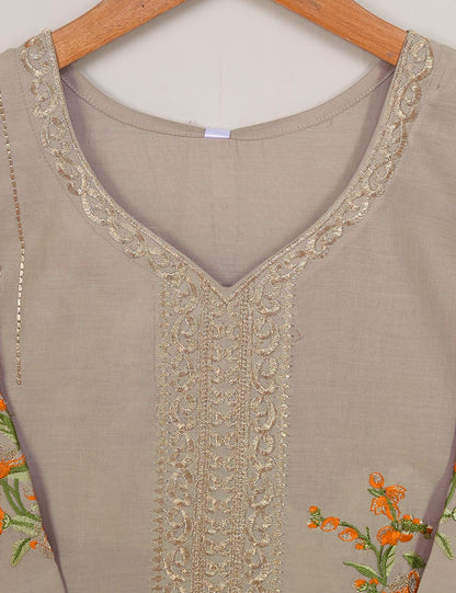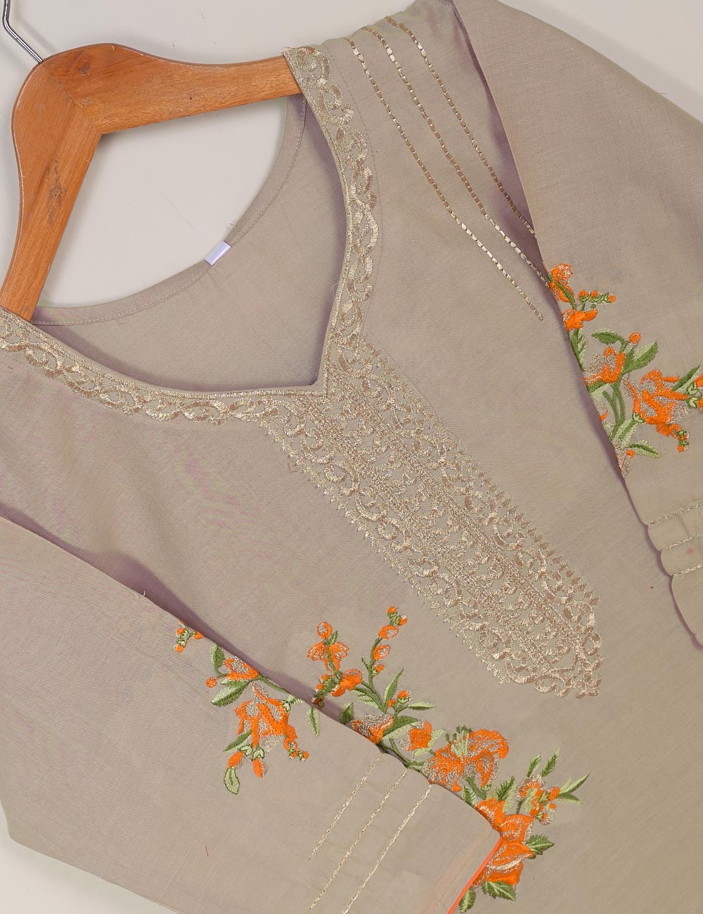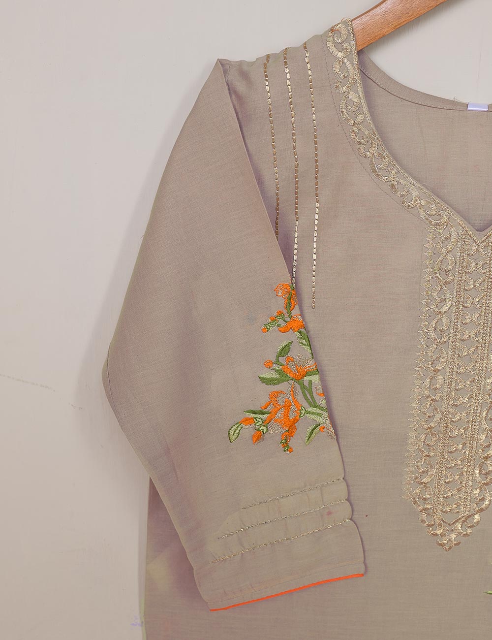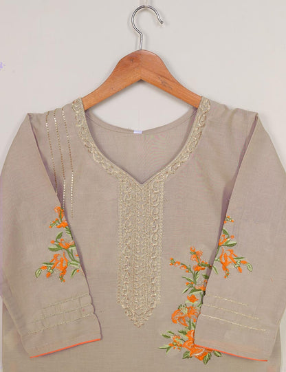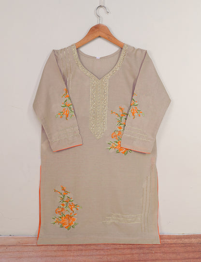 Cotton Embroidered Stitched Kurti - Tropical Hibiscus (T20-017F-Greyish Purple)