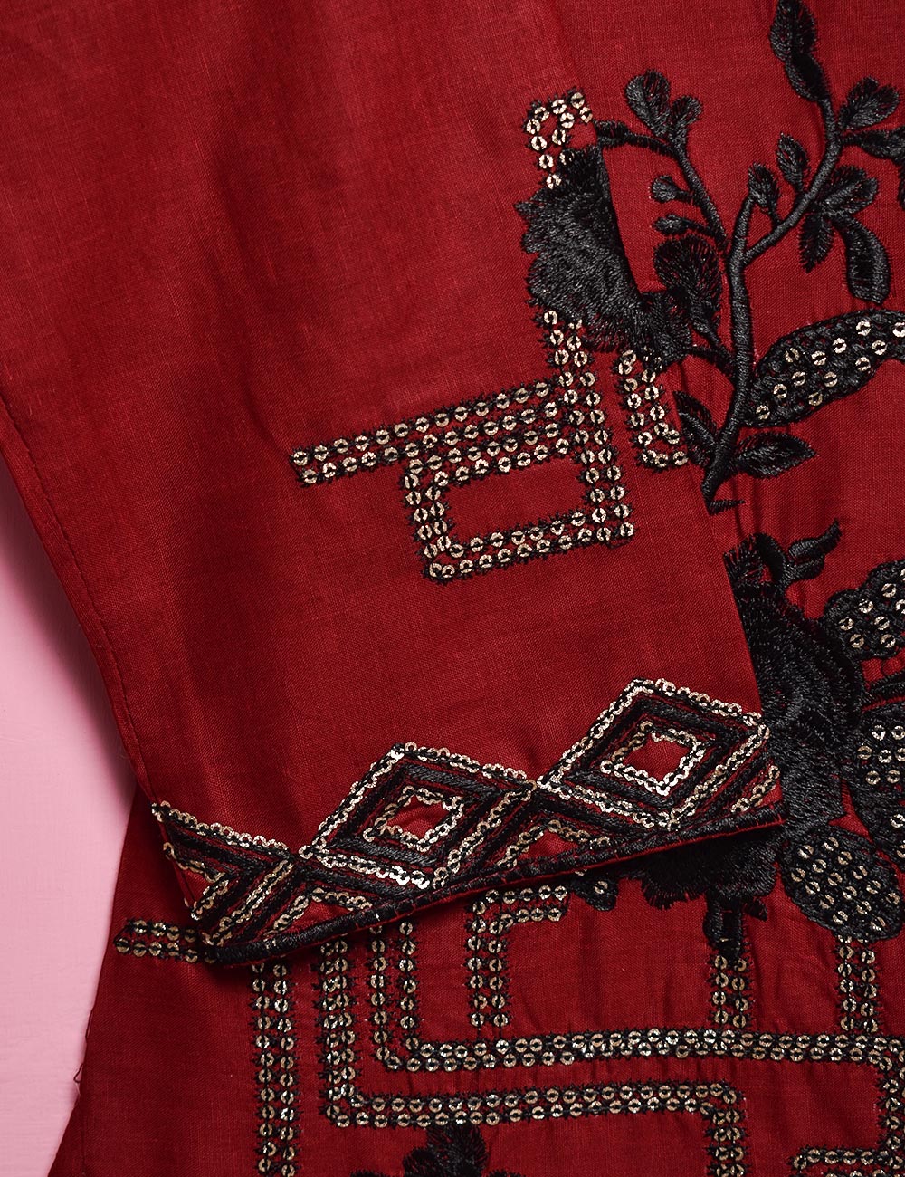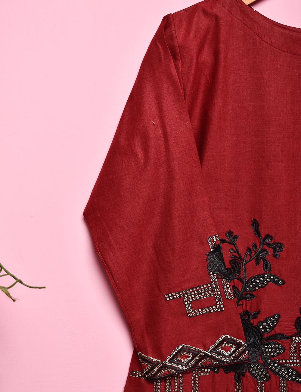 Cotton Embroidered Stitched Kurti - Limbo (TS-019C-Maroon)