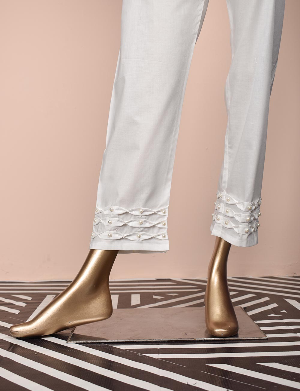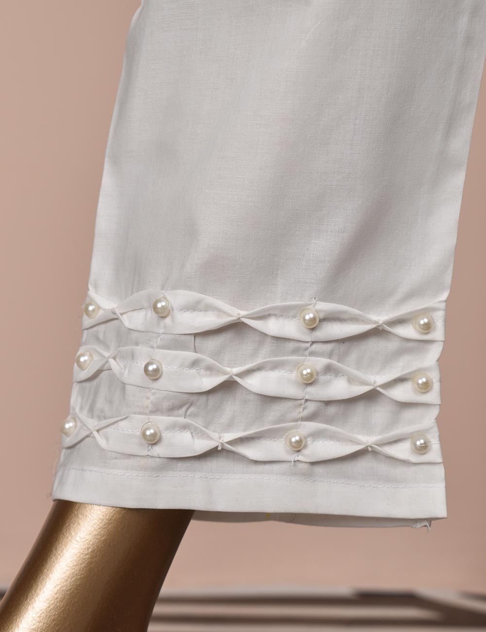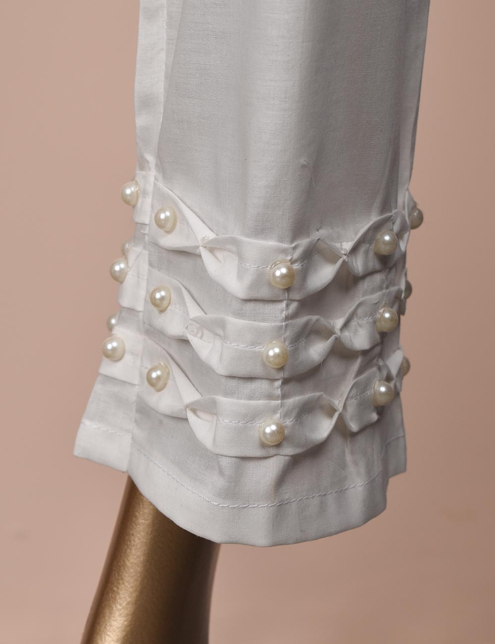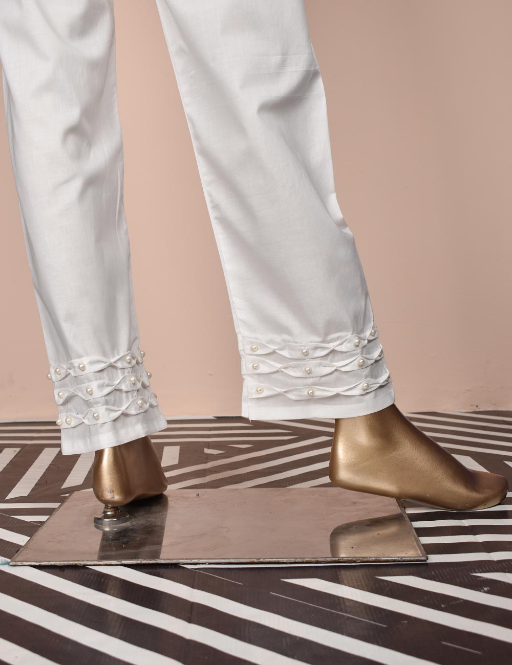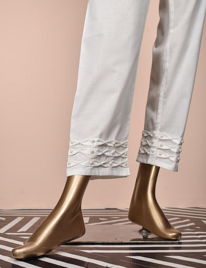 Ready To Wear Cotton Trouser With Stylish Pearls - Snowy Mood (CT-7-White)