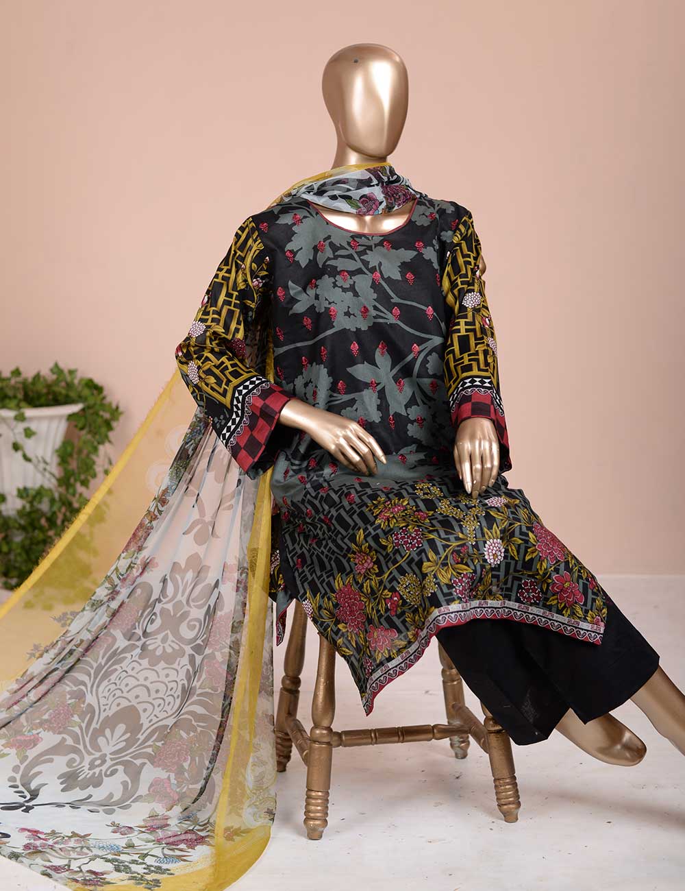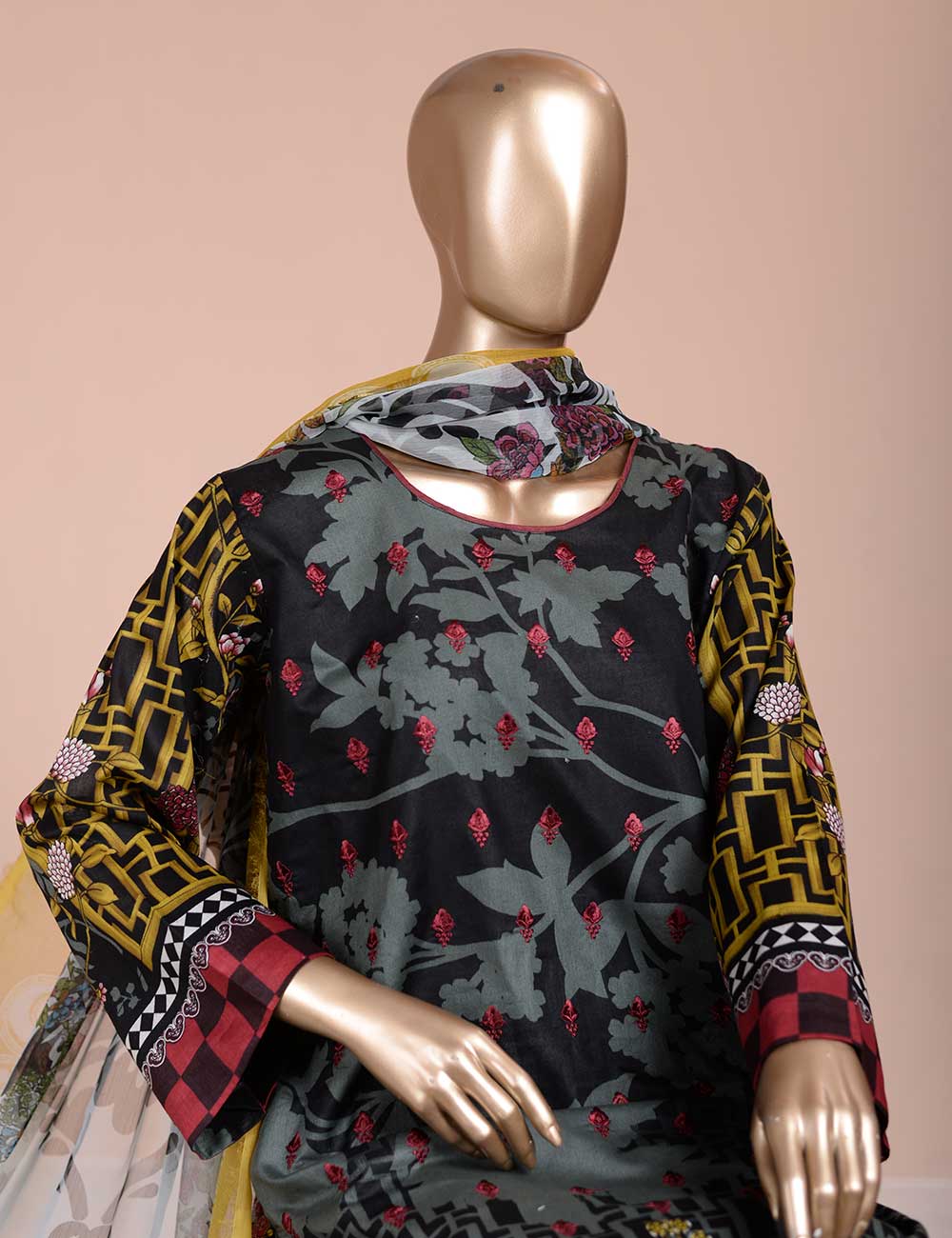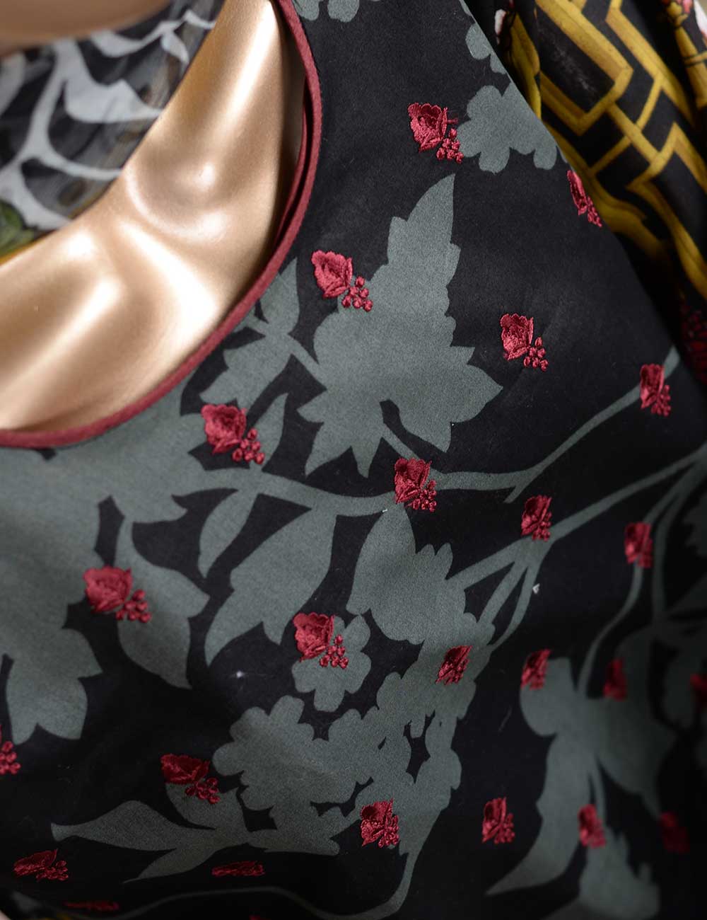 3 Pc Unstitched Lawn Embroidered Dress with Chiffon Dupatta.