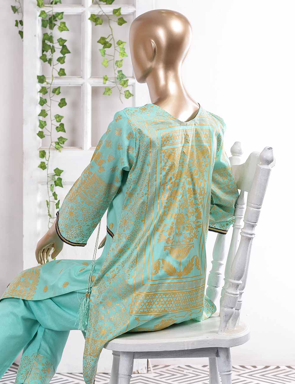 3 Pc Unstitched Gold Printed Lawn Dress with Lawn Gold Printed Dupatta