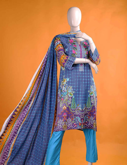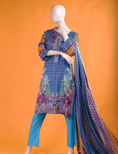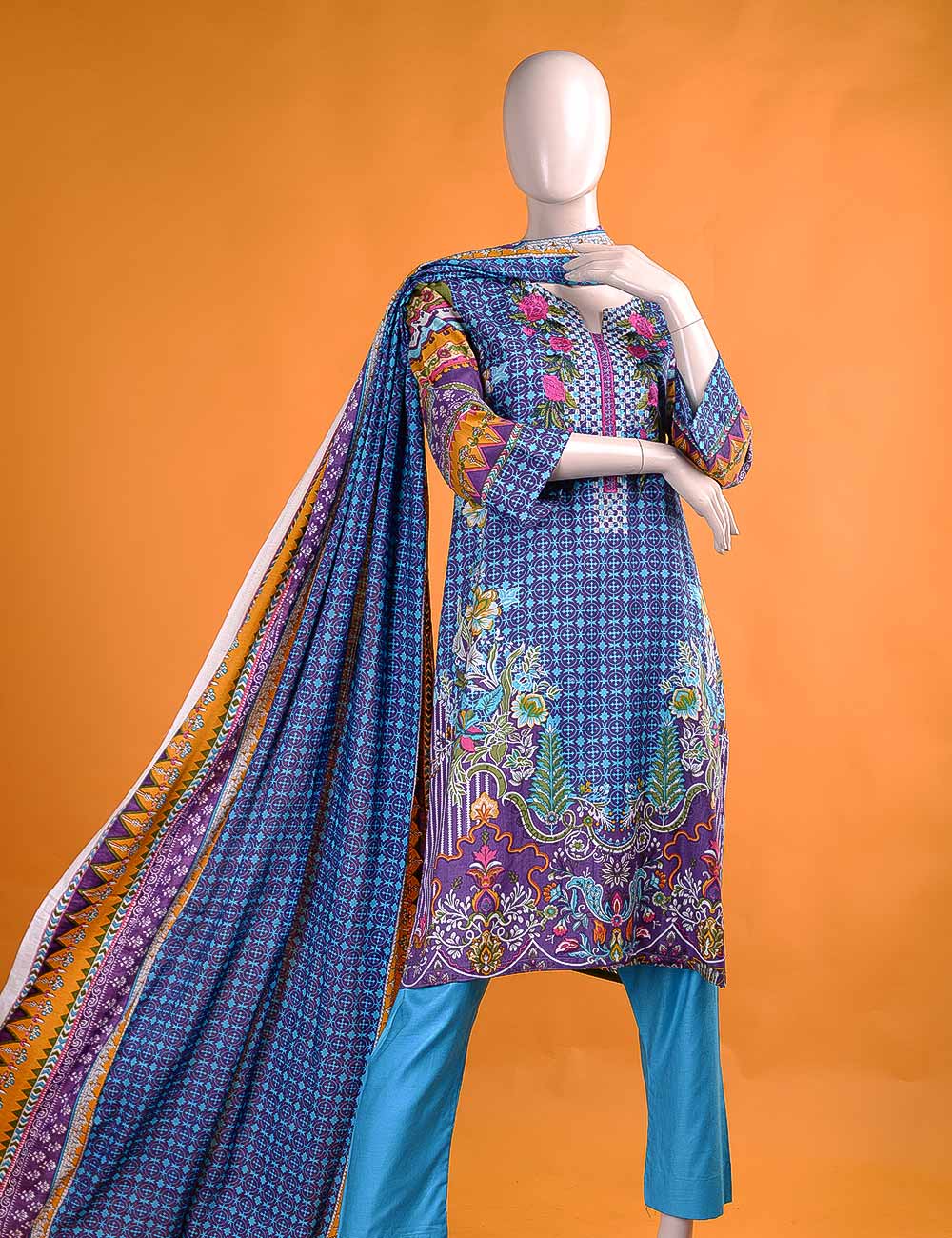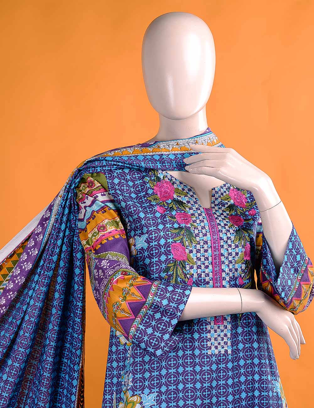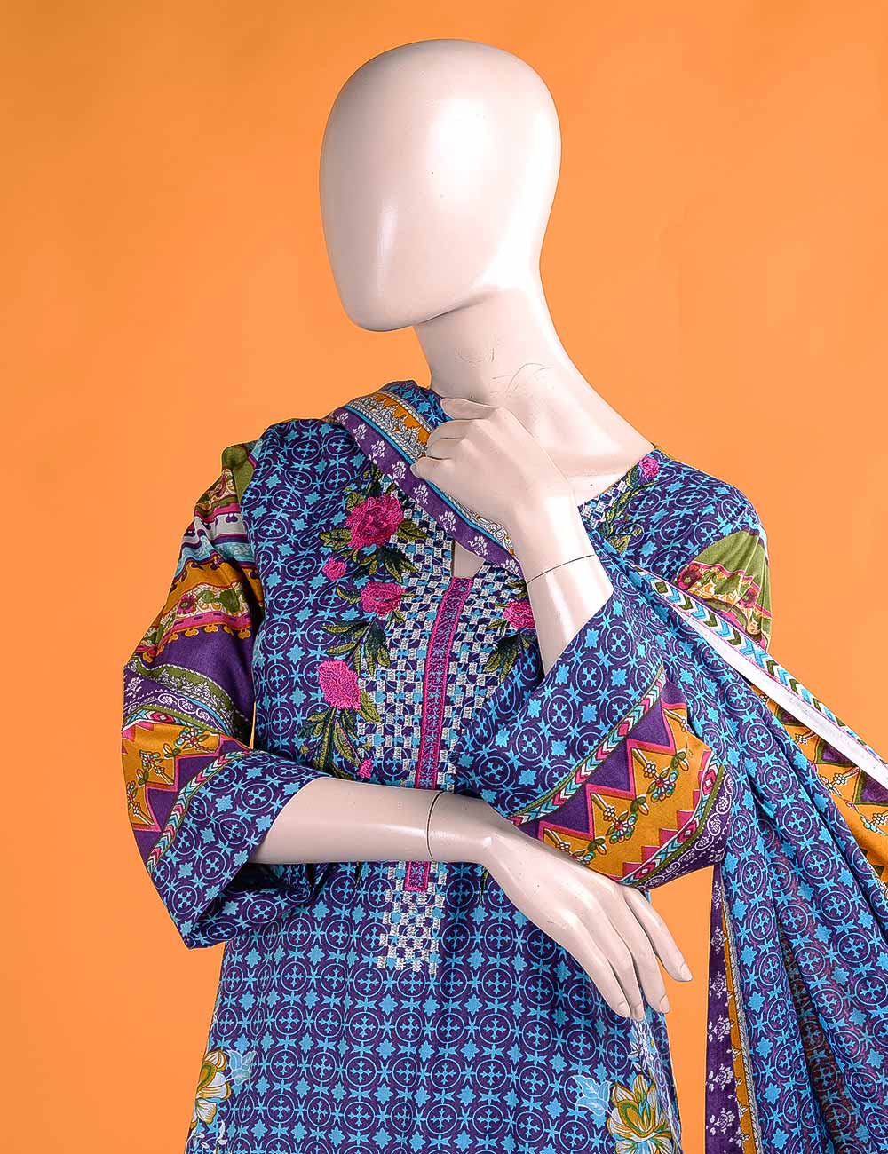3 Pc Unstitched Printed & Embroidered Linen Dress with Linen Printed Dupatta