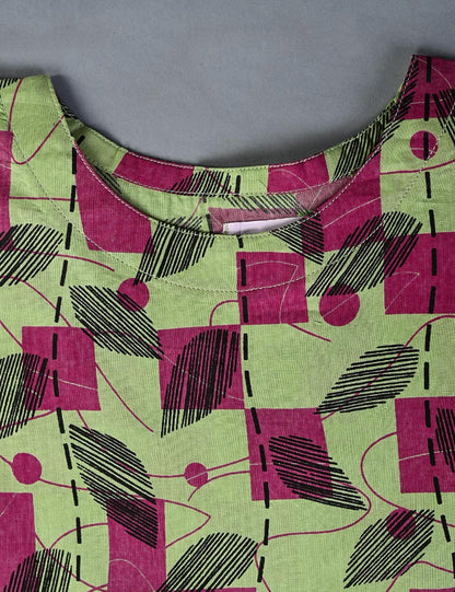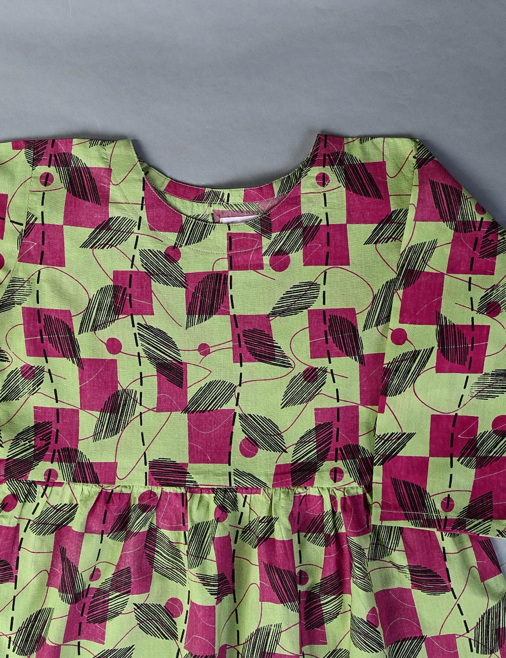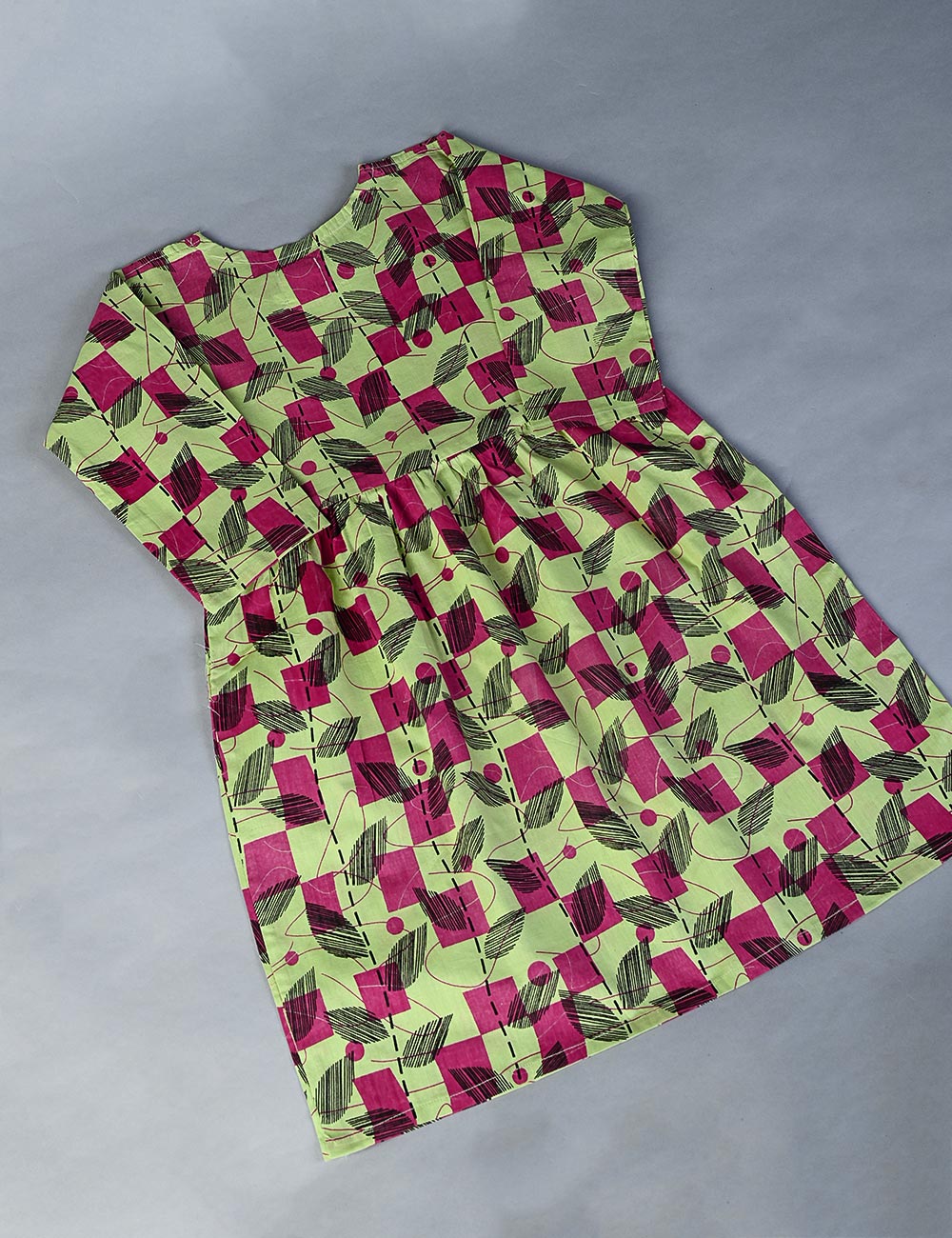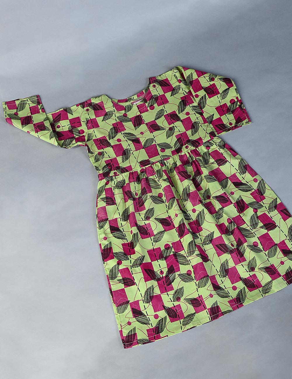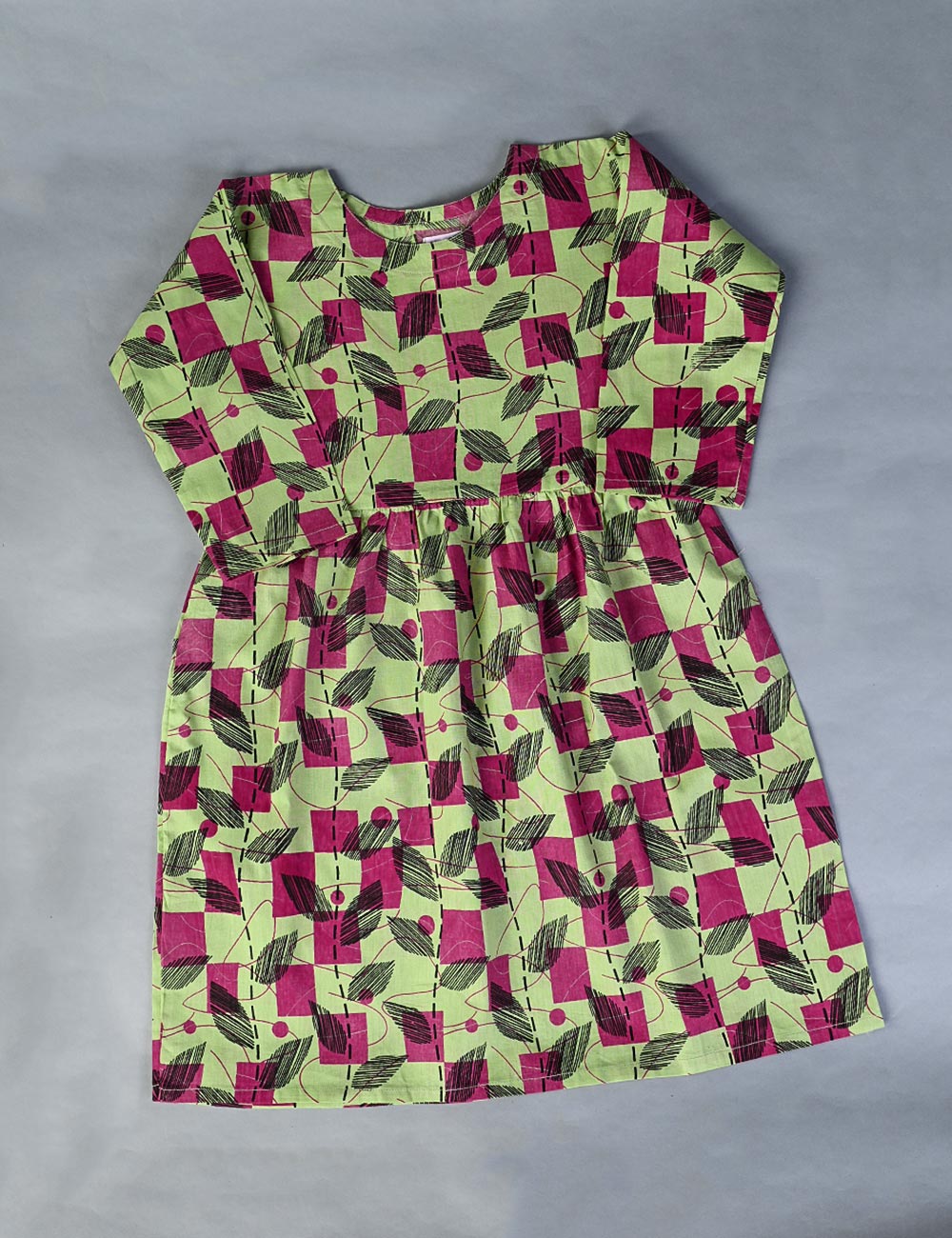 KOS-04-LightGreen - Kids Cambric Printed Frock