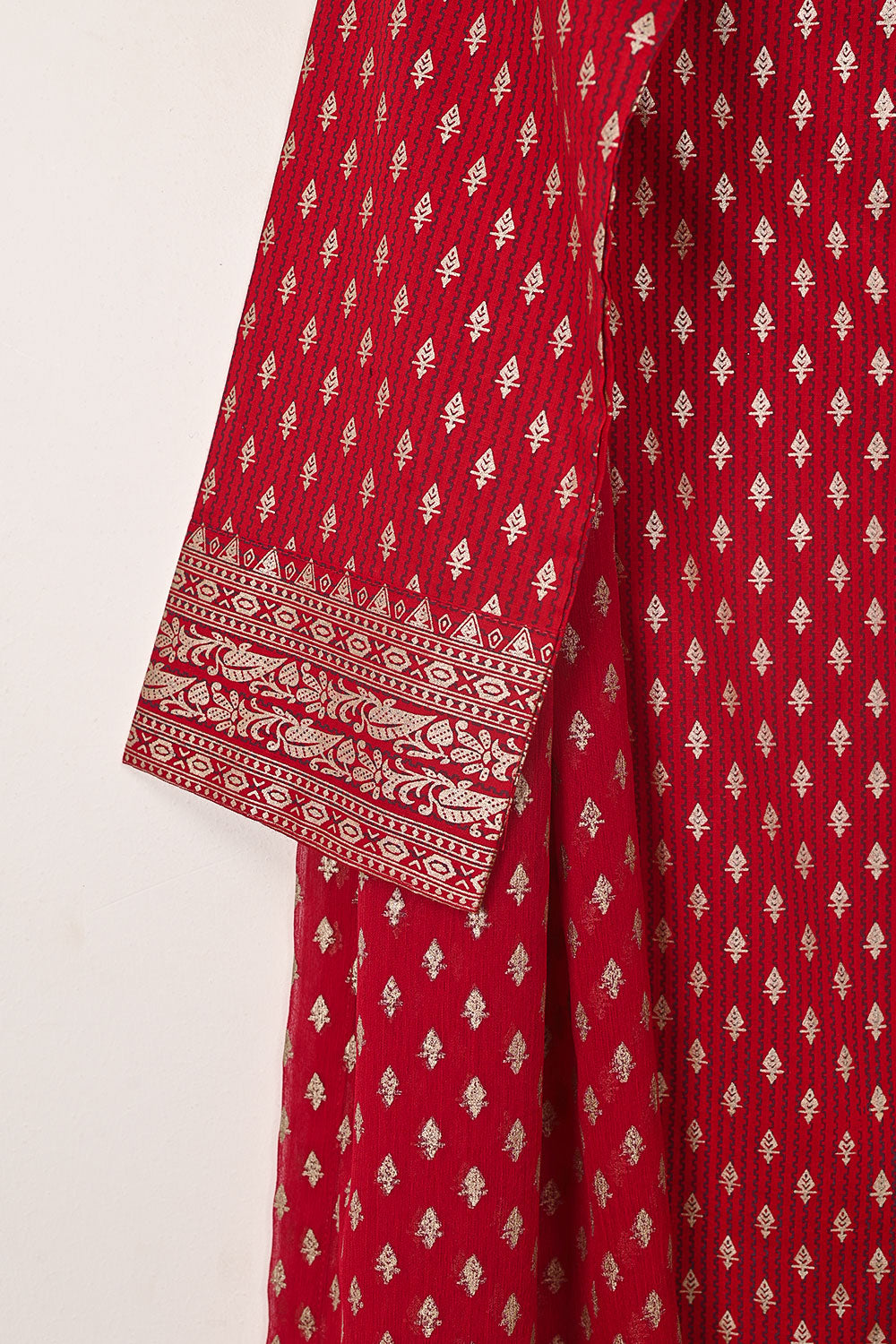 3 Piece Ready To Wear Printed Cambric Shirt With Chiffon Dupatta