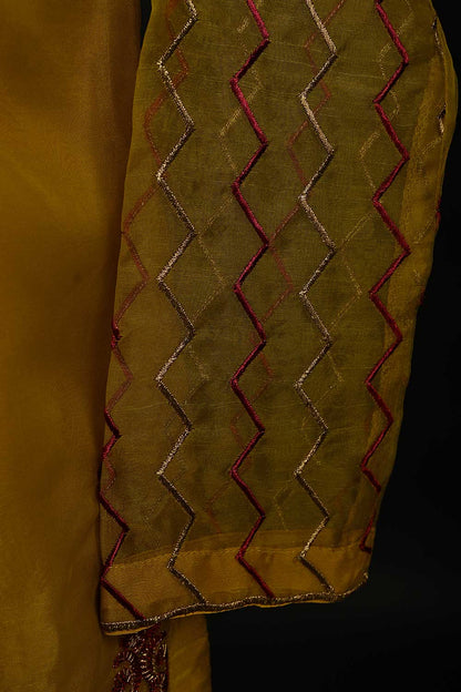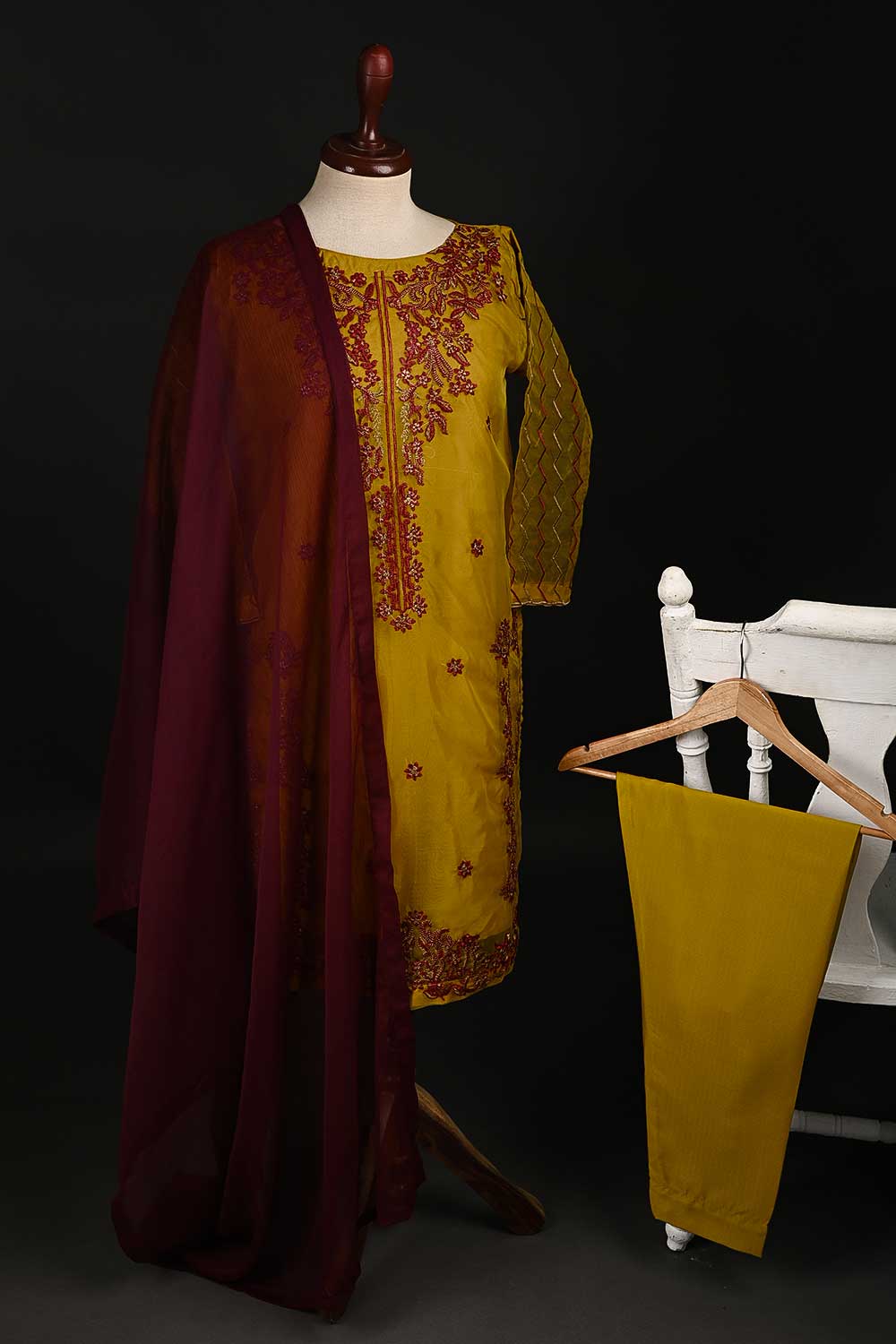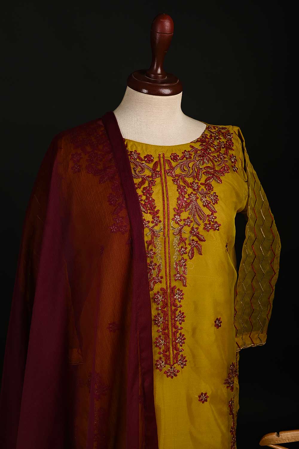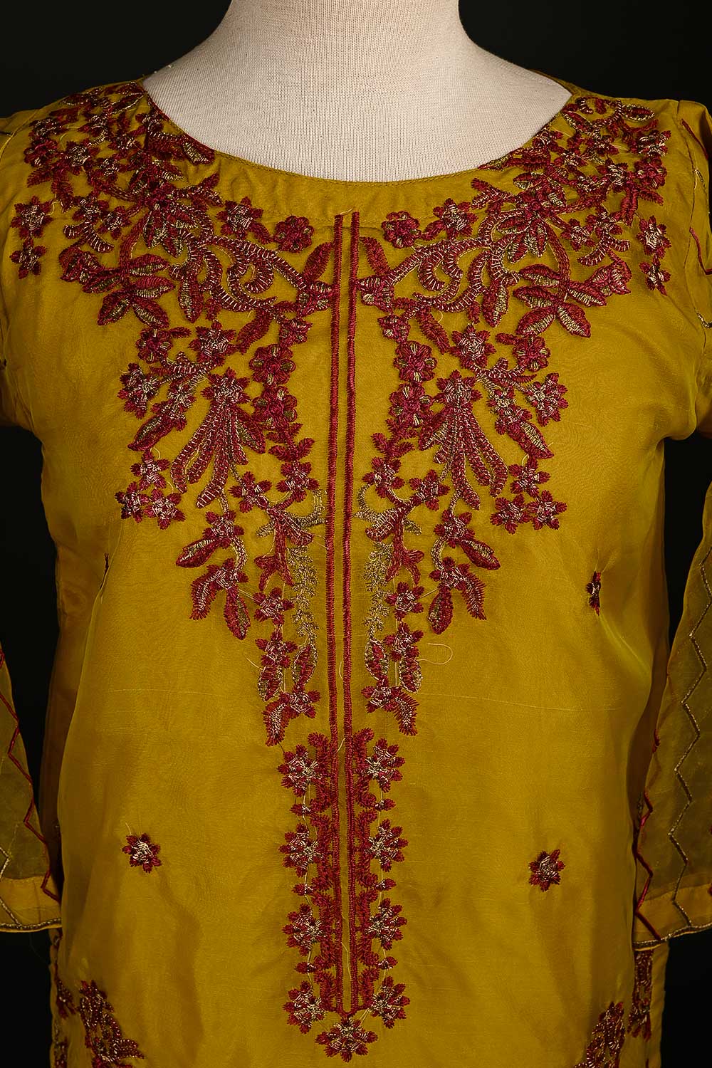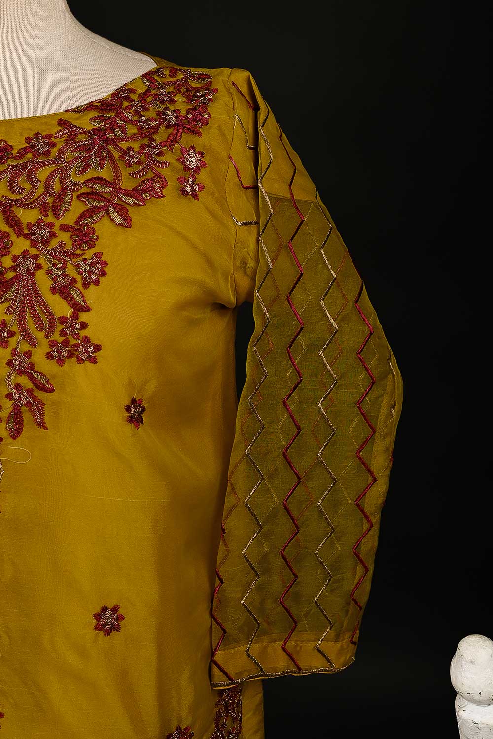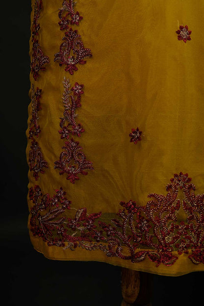 RTW-109-Mustard - 3Pc Stitched Embroidered Organza Dress