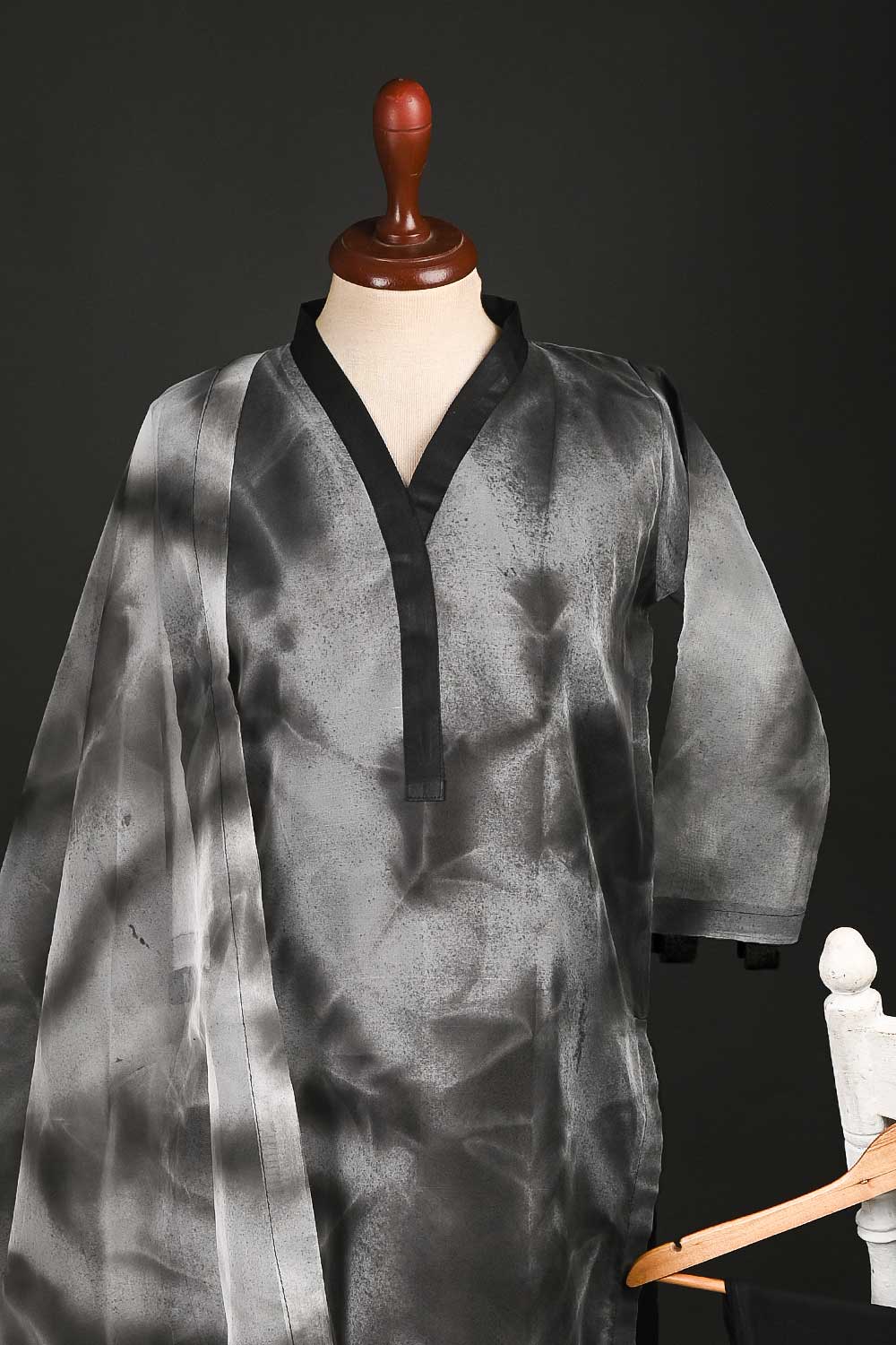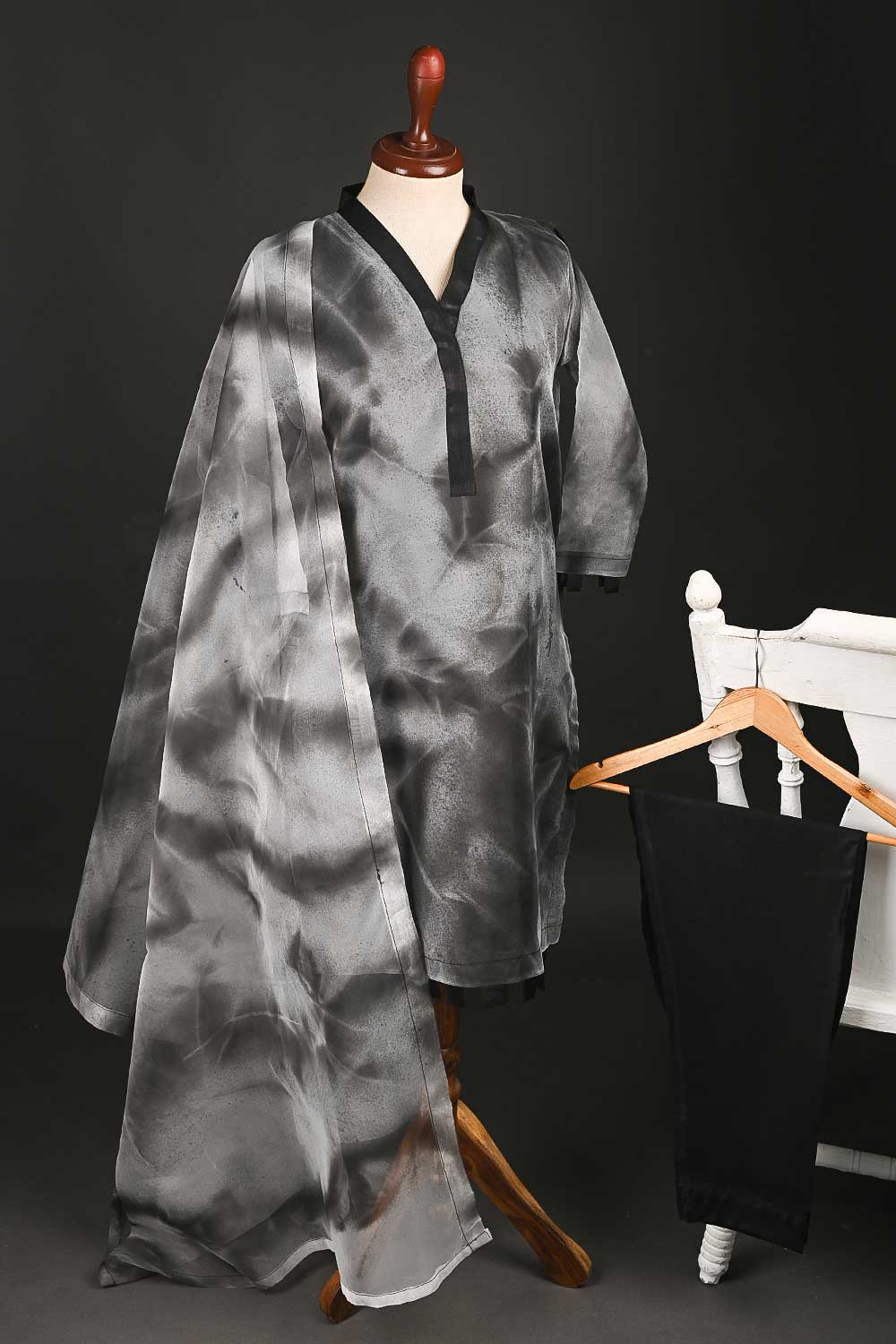 RTW-112-Black - 3Pc Stitched Organza Dress