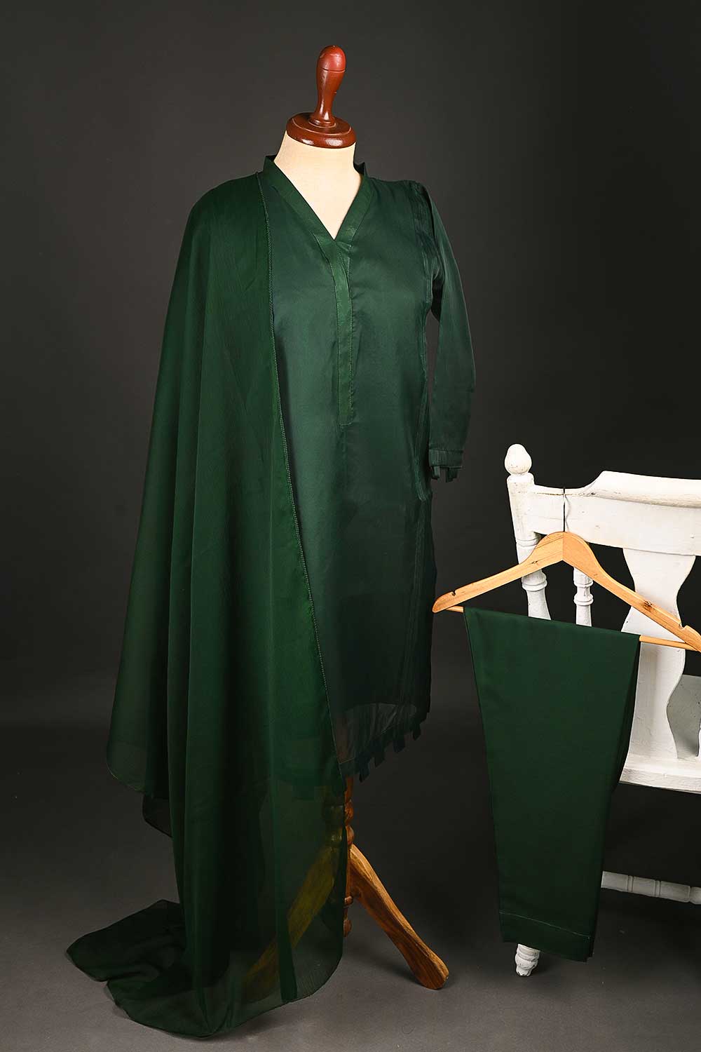 RTW-116-Green - 3Pc Stitched Organza Dress