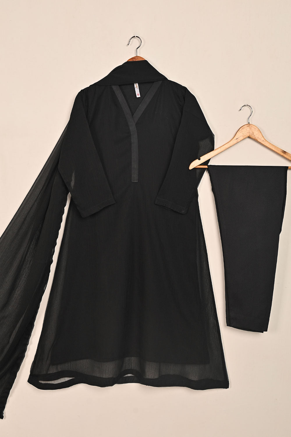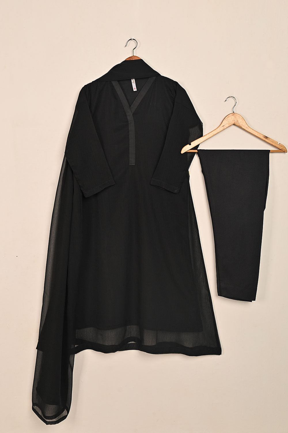 RTW-119-Black - 3Pc Stitched Chiffon Shirt