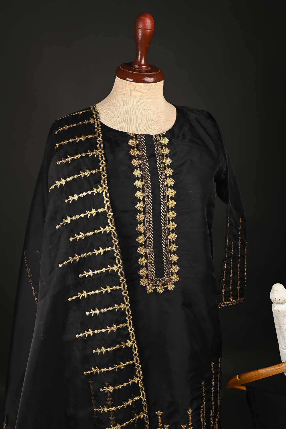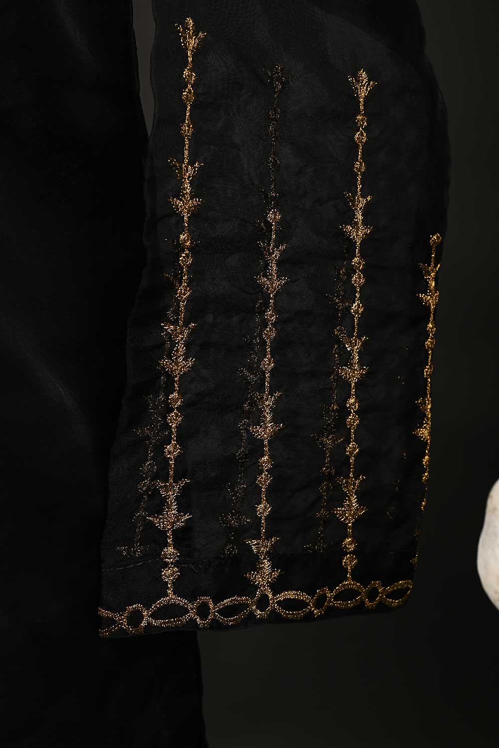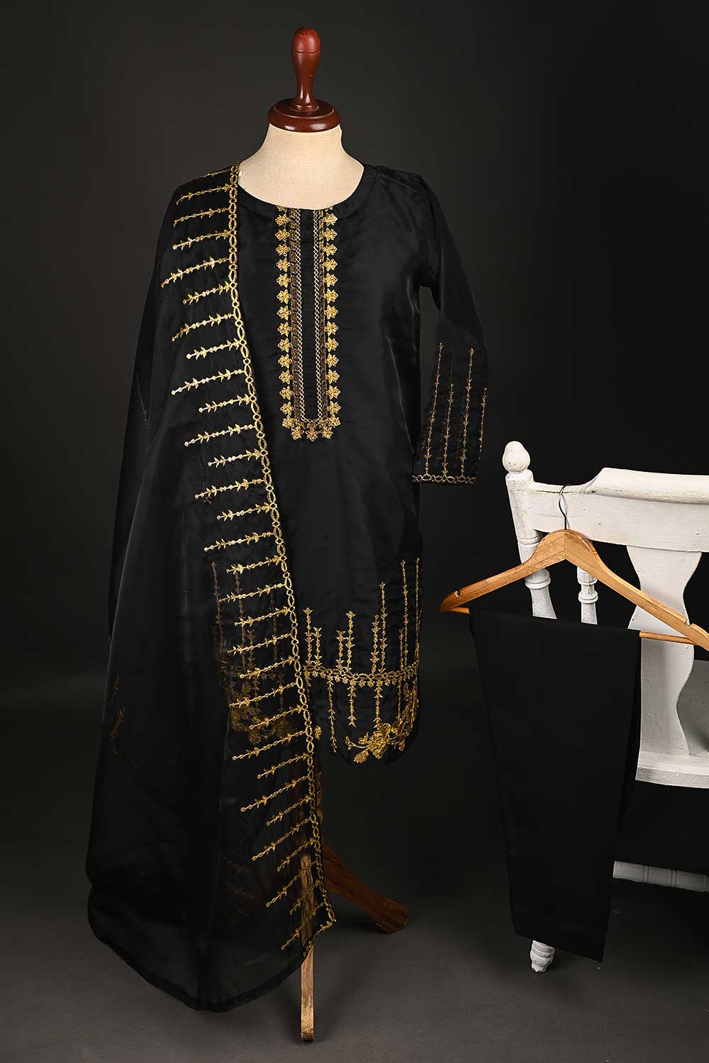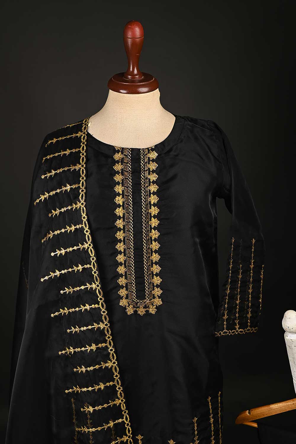 RTW-126-Black - 3Pc Stitched Organza Dress