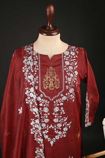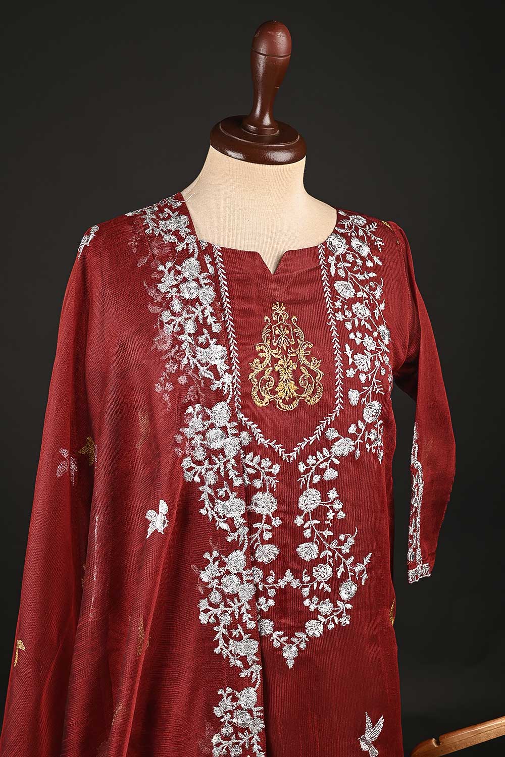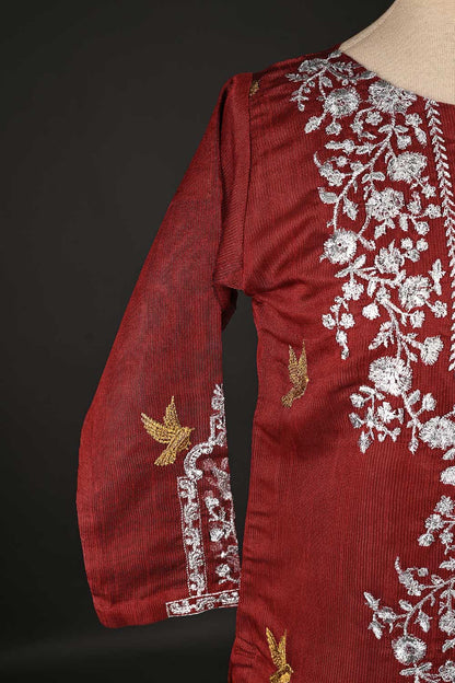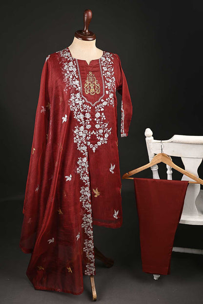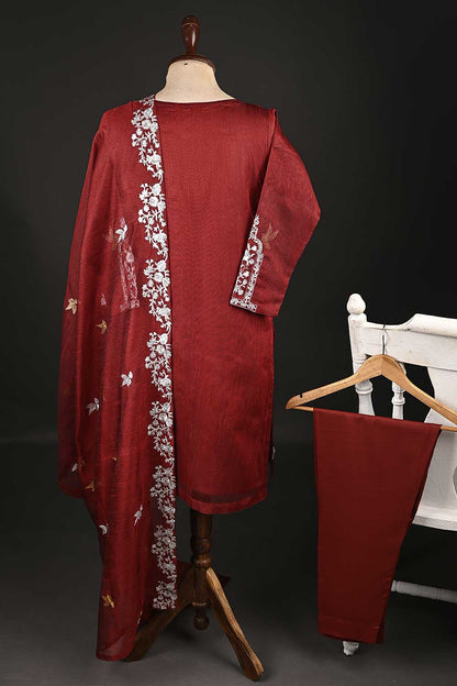 RTW-136-Red - 3Pc Stitched Khaadi Net Dress