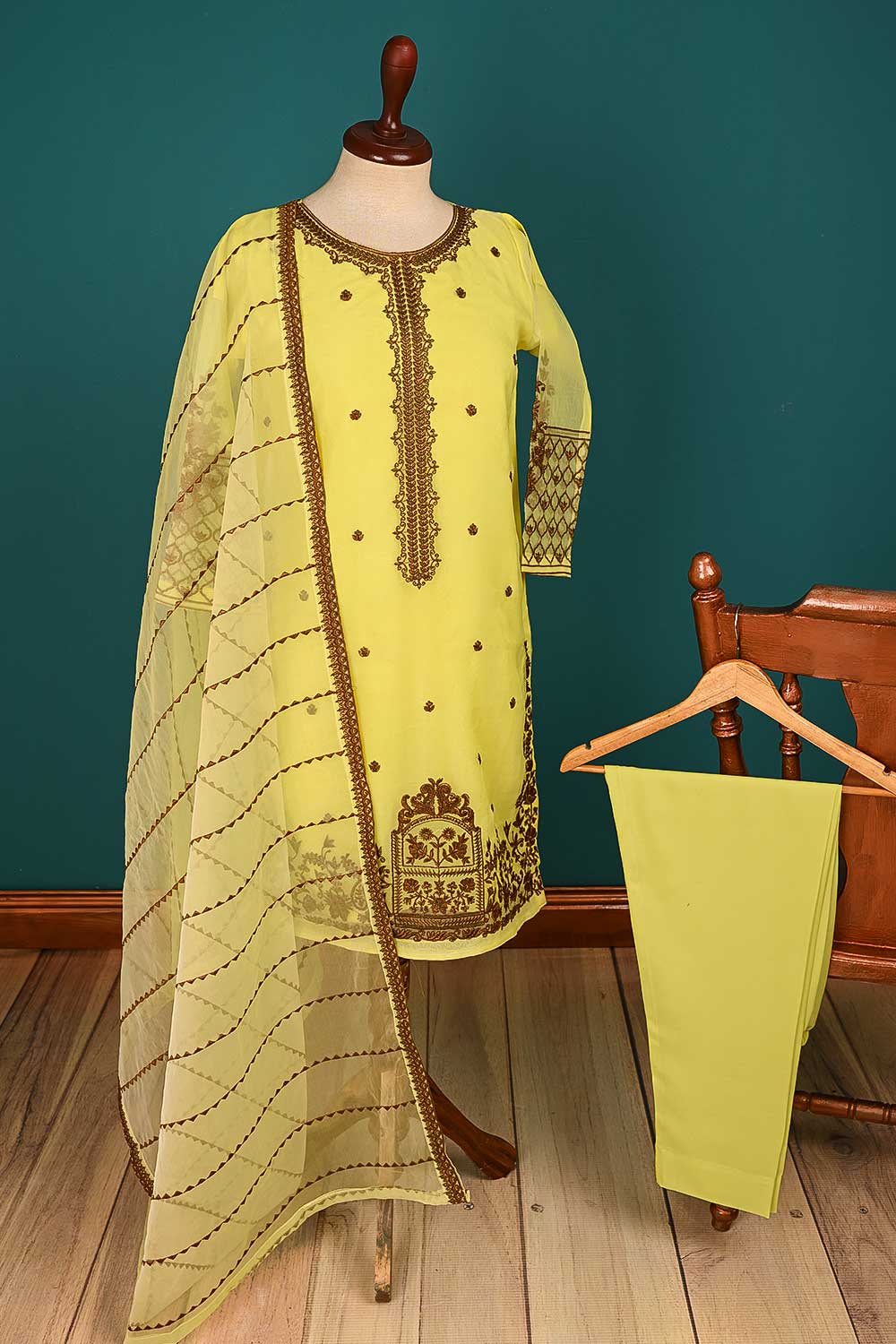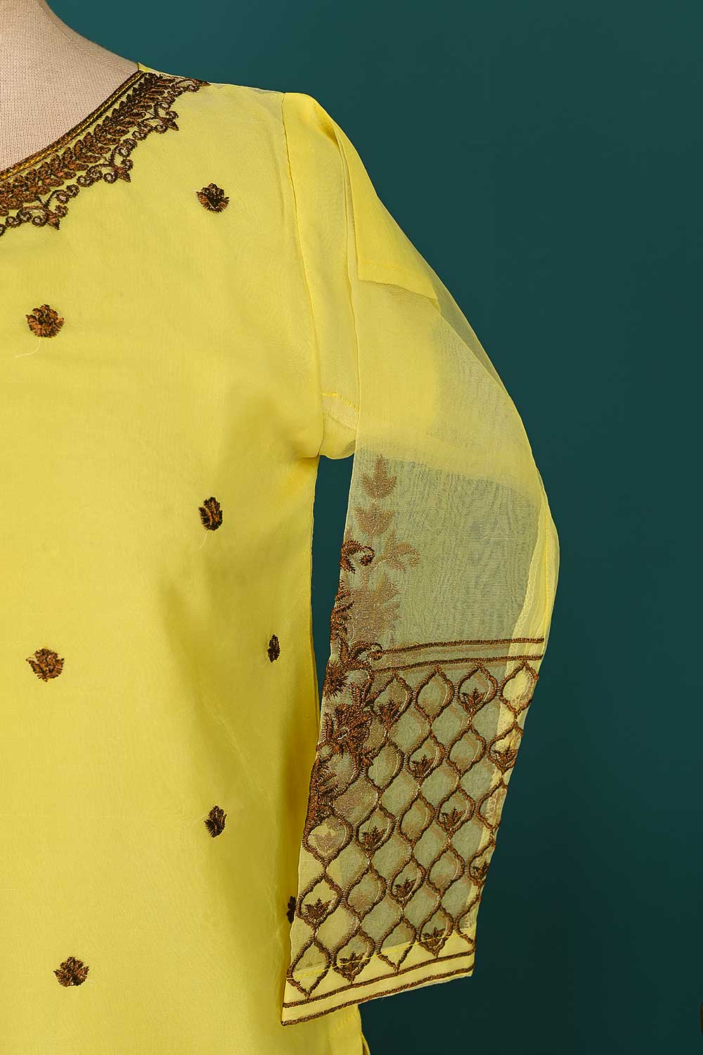 RTW-140-Yellow - 3Pc Stitched Organza Dress