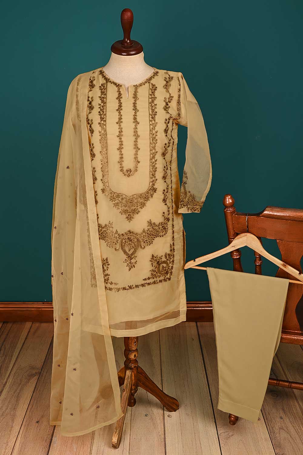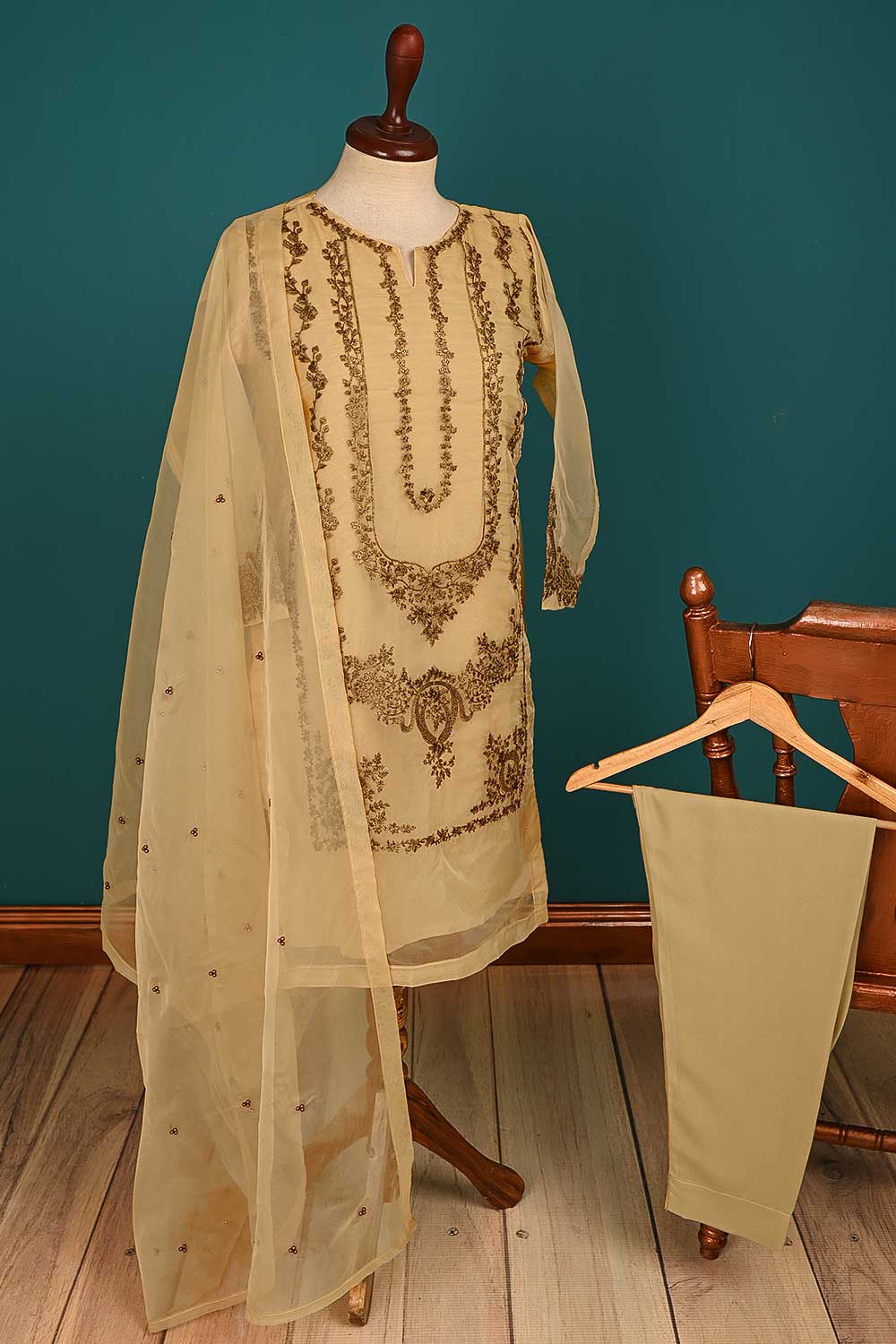 RTW-141-Skin - 3Pc Stitched Organza Dress