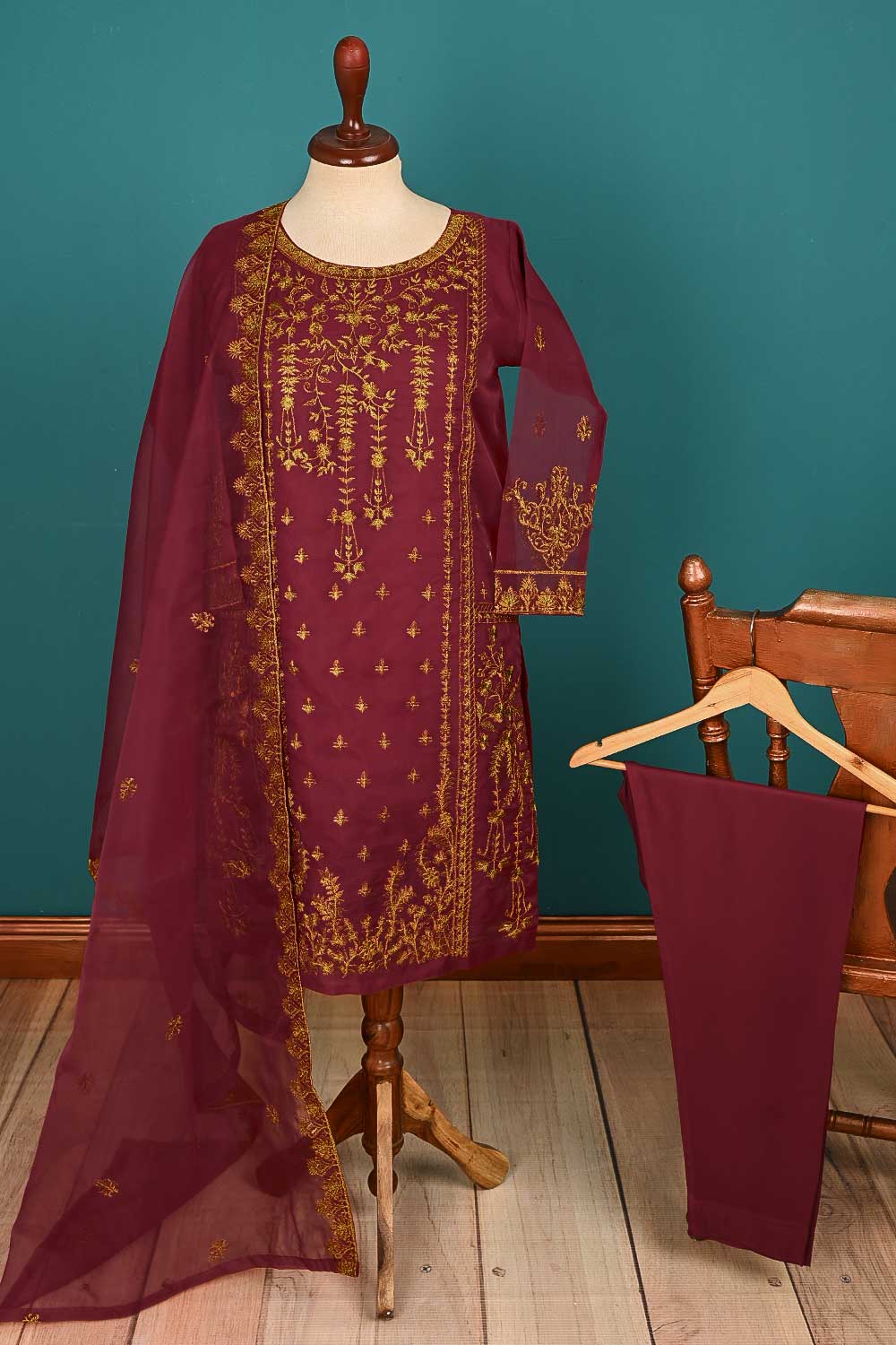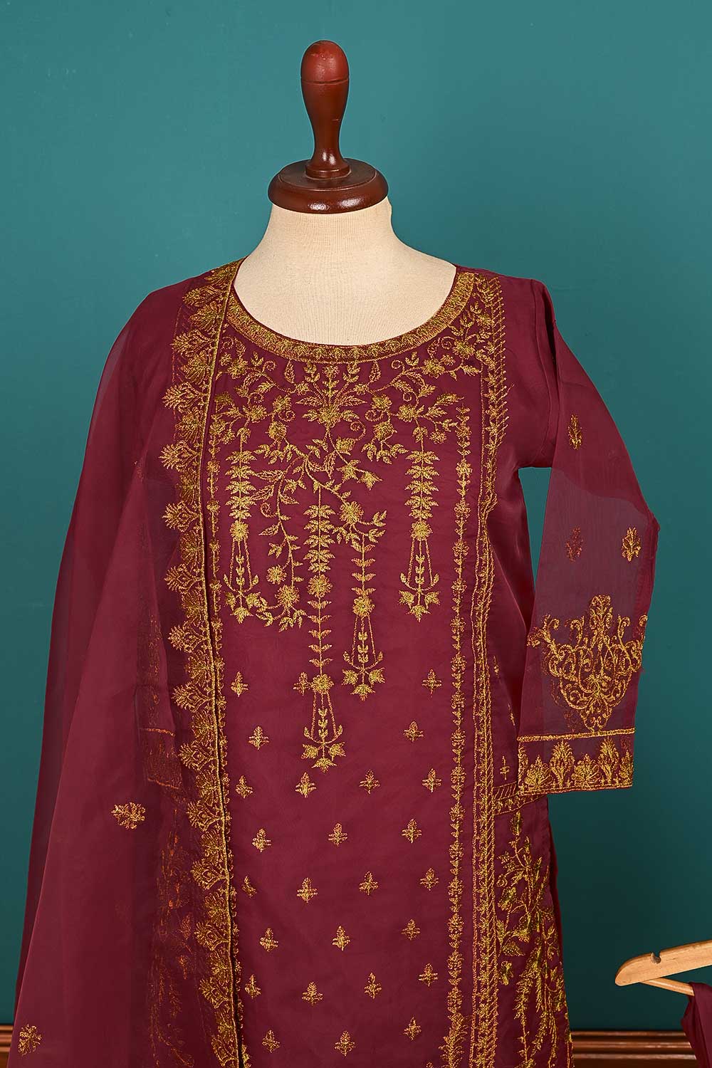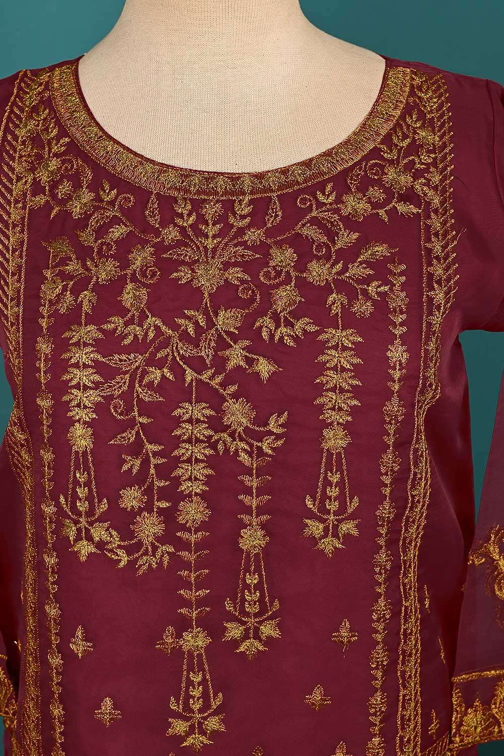 RTW-151-Maroon - 3Pc Stitched Organza Embroidered Dress
