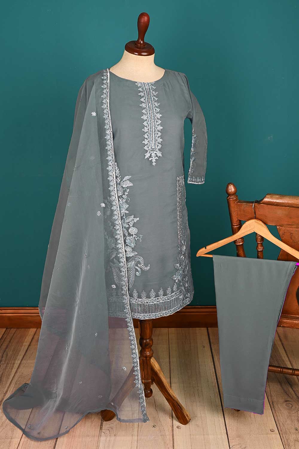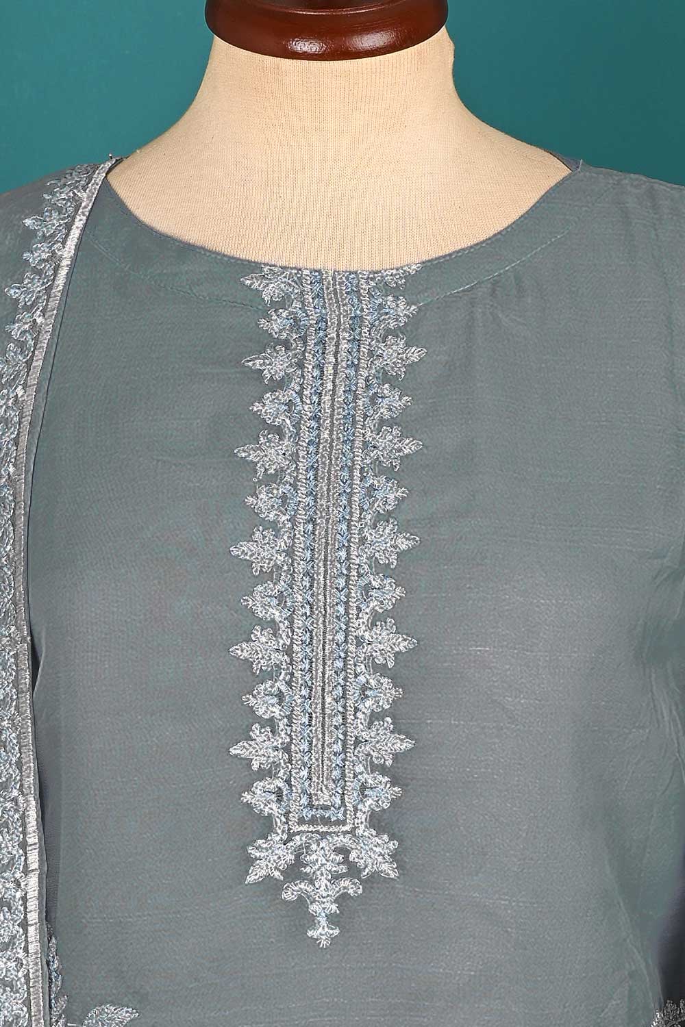 Organza Embroidered Shirt with Organza Dupatta and Malai Trouser