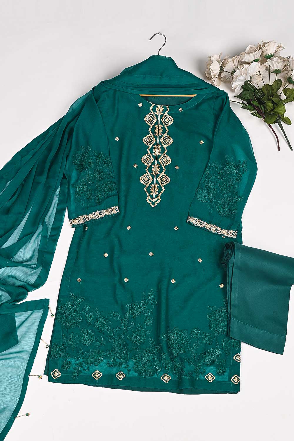 RTW-162-Green - 3Pc Stitched Chiffon Embroidered Dress