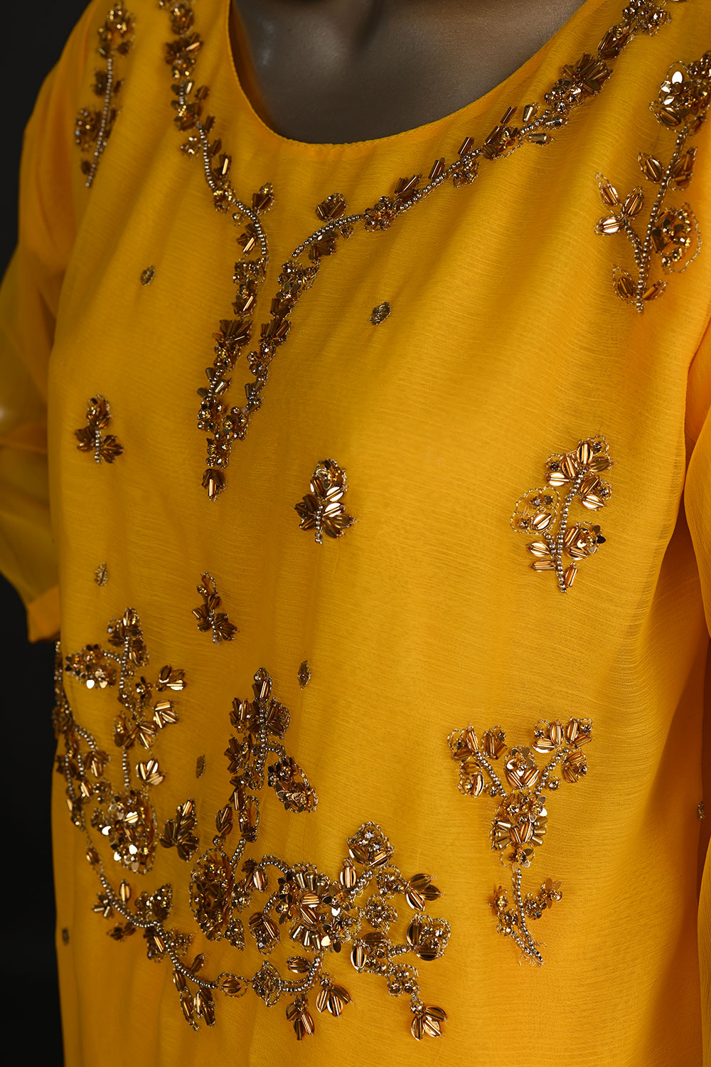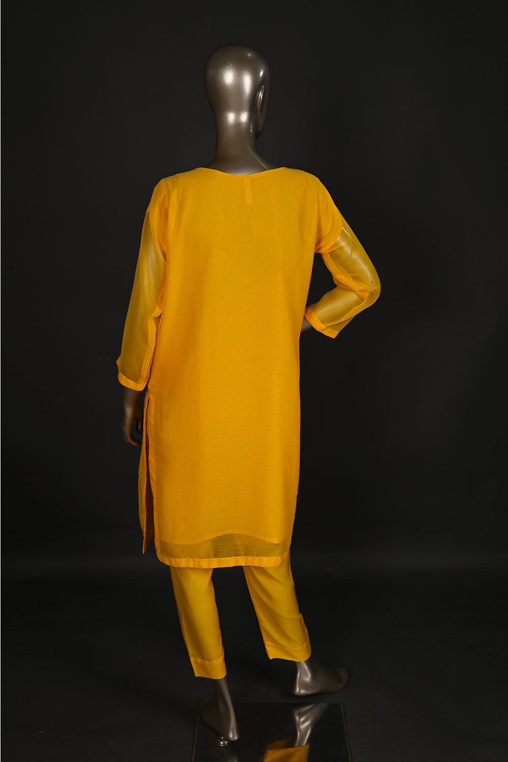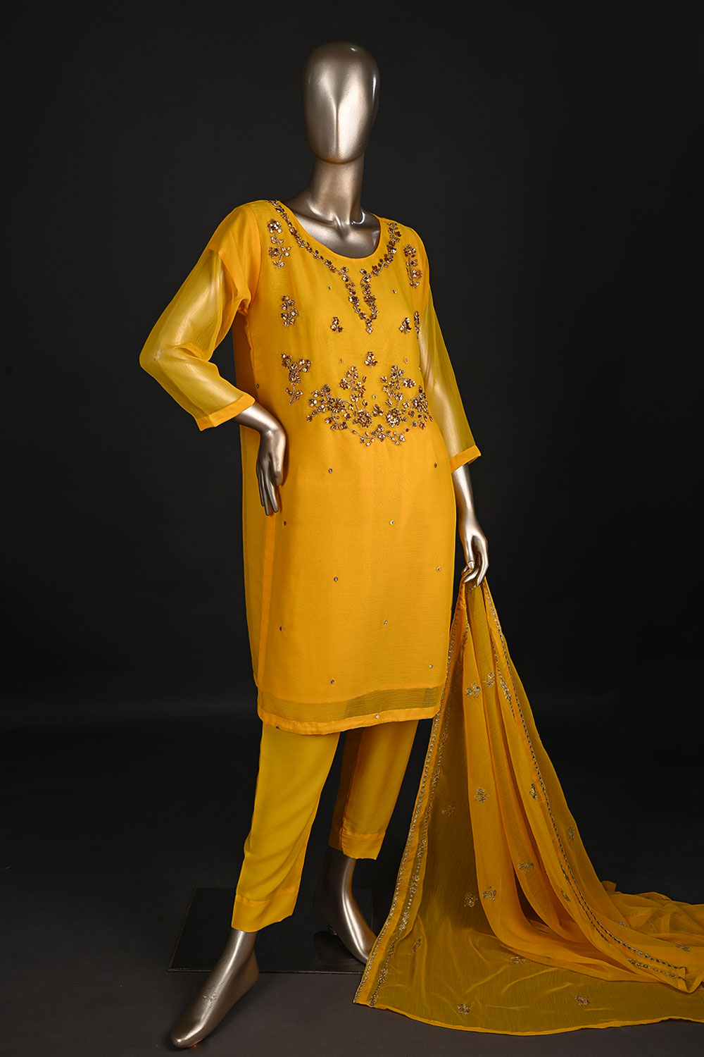RTW-173-Yellowish Mustard - 3Pc Ready to Wear Embroidered Adda Work Chiffon Dress