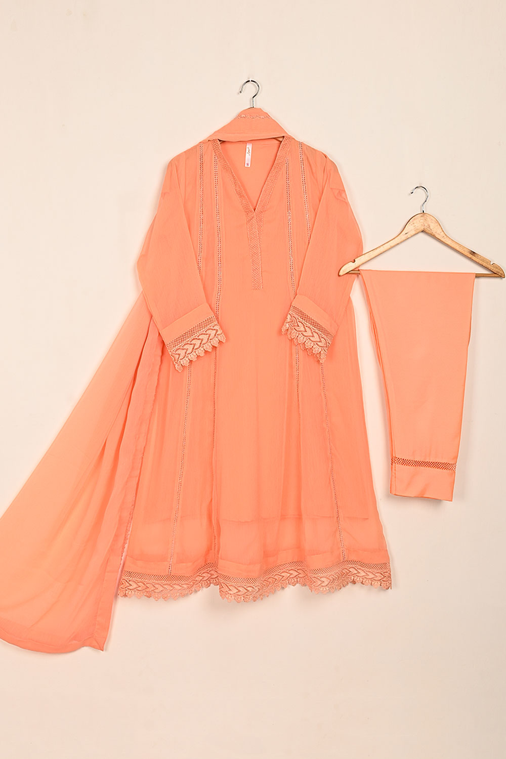 RTW-184-Peach - 3Pc Ready To Wear Chiffon Frock