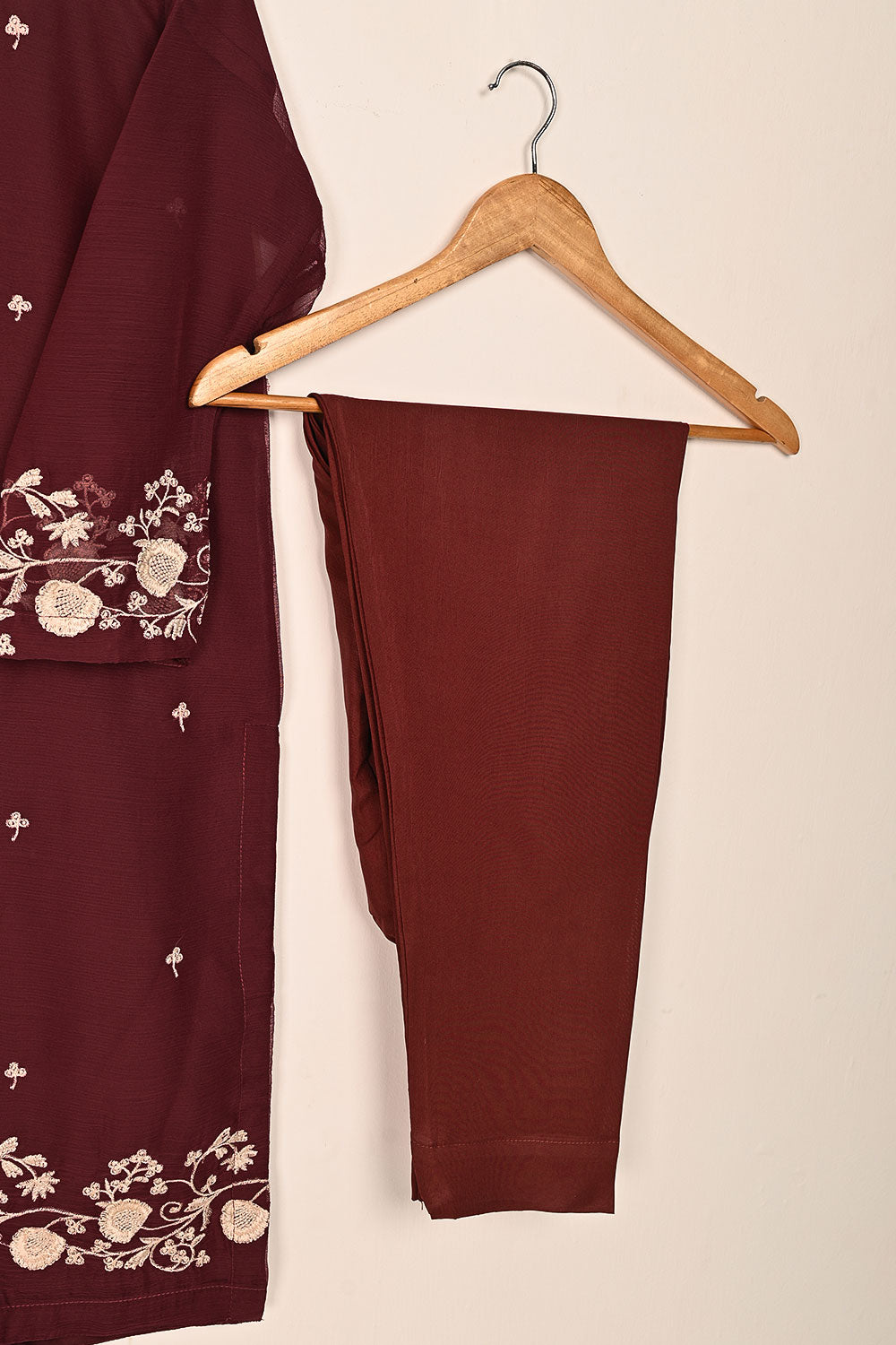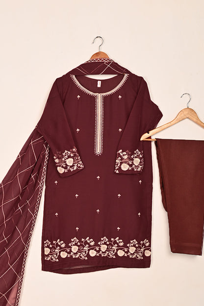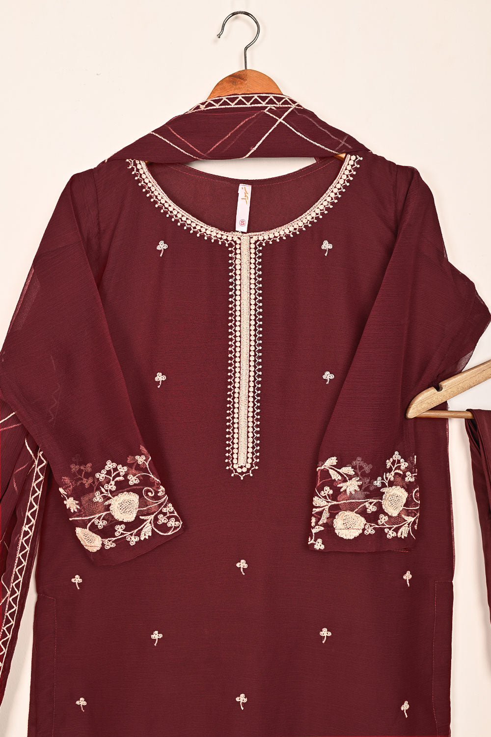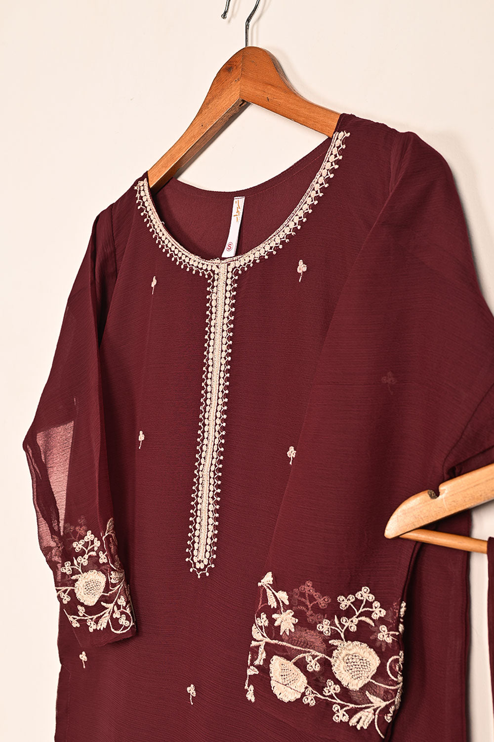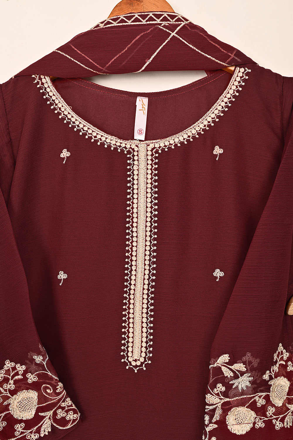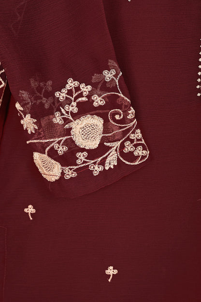 RTW-187-Maroon - 3Pc Ready to Wear Embroidered Chiffon Dress