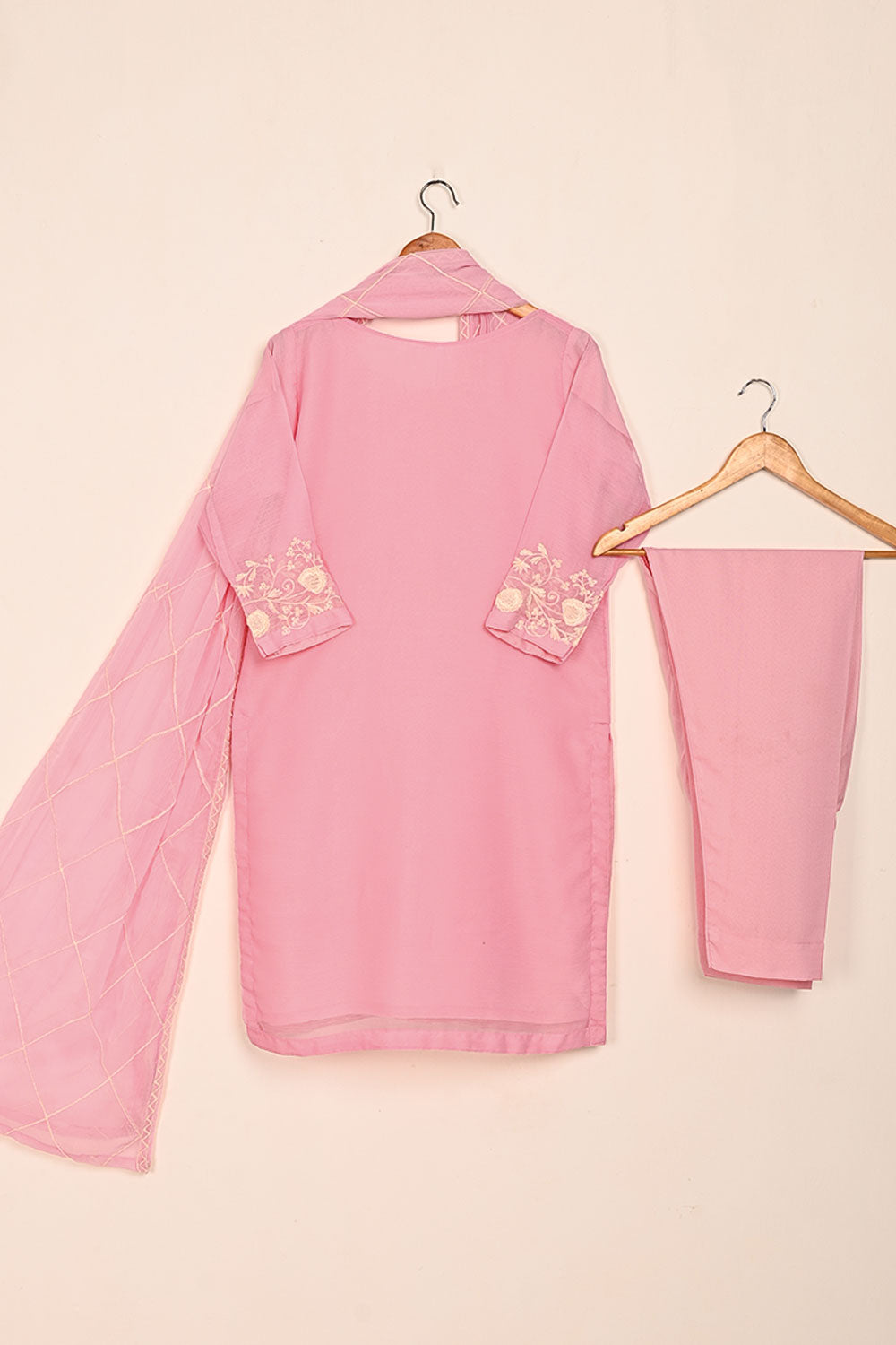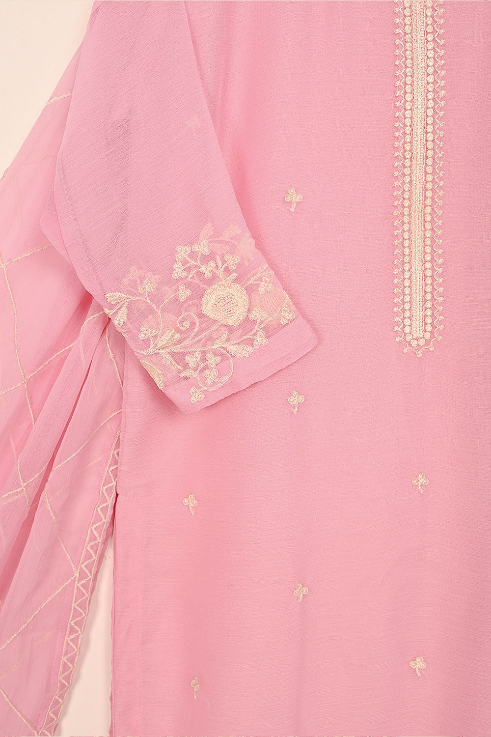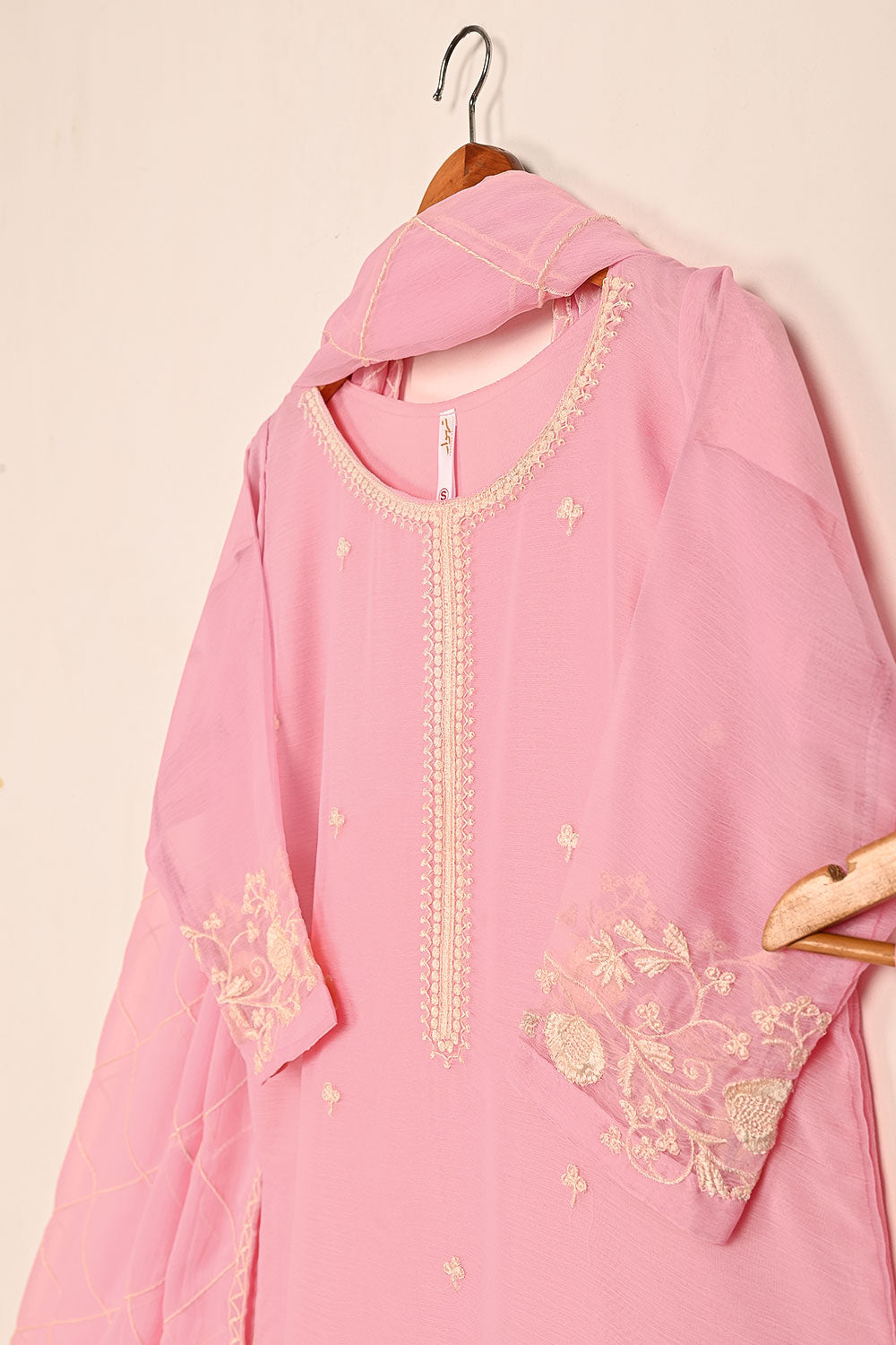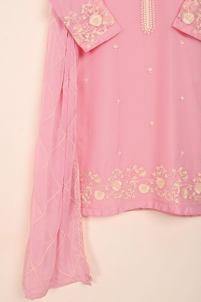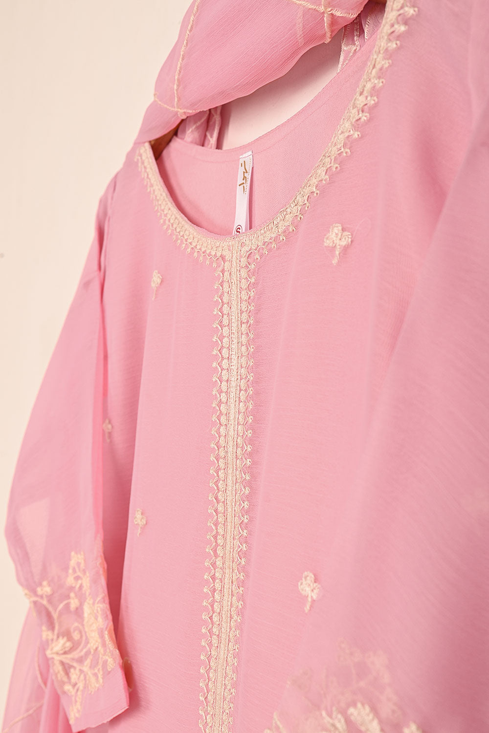 RTW-188-Pink - 3Pc Ready to Wear Embroidered Chiffon Dress