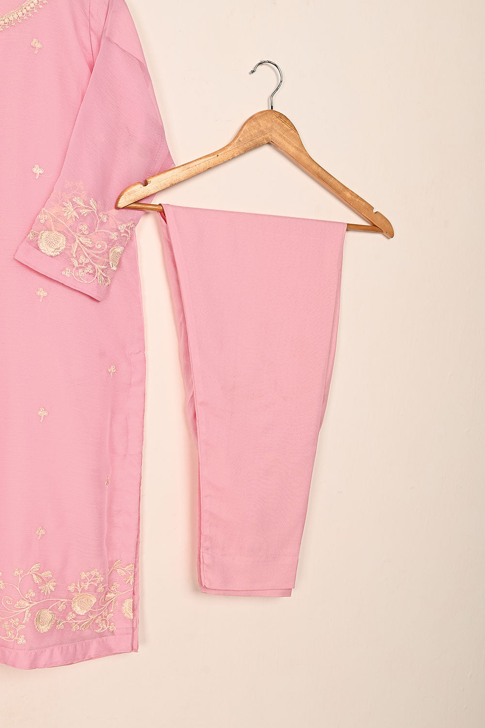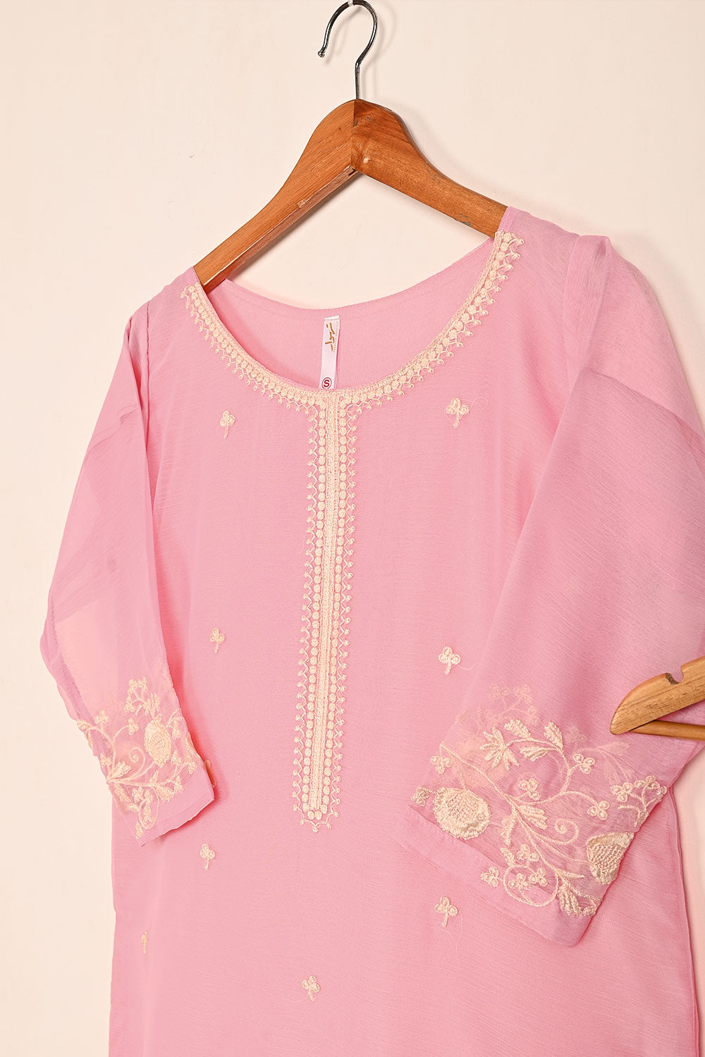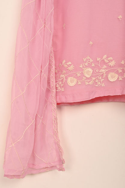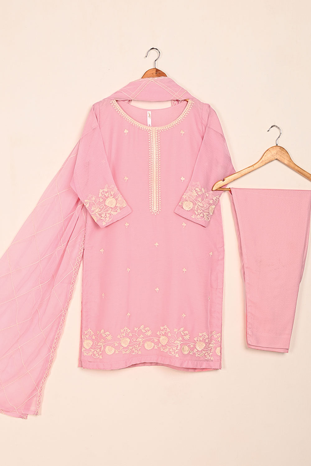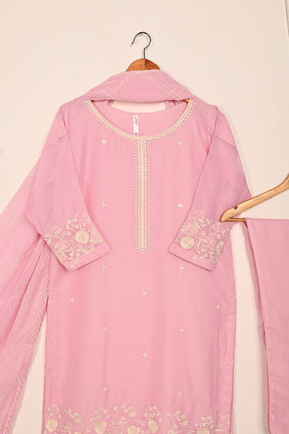 RTW-188-Pink - 3Pc Ready to Wear Embroidered Chiffon Dress