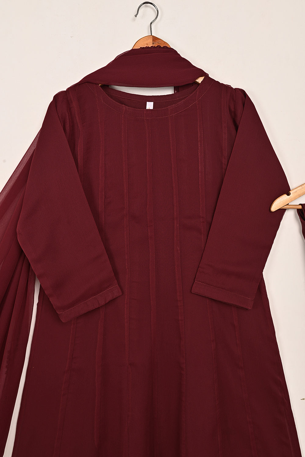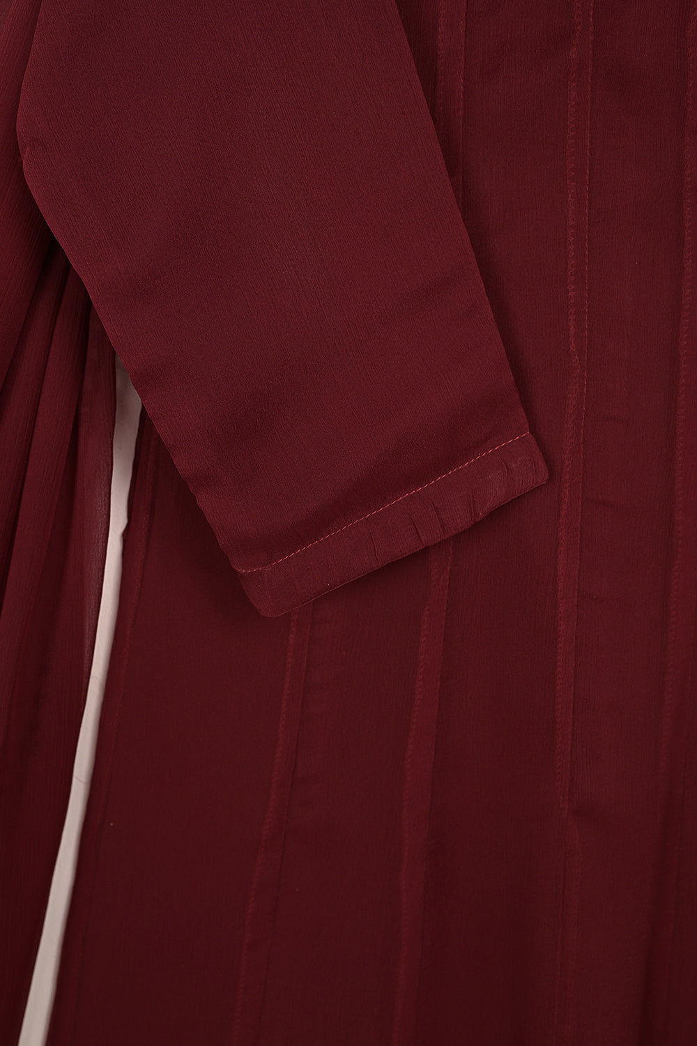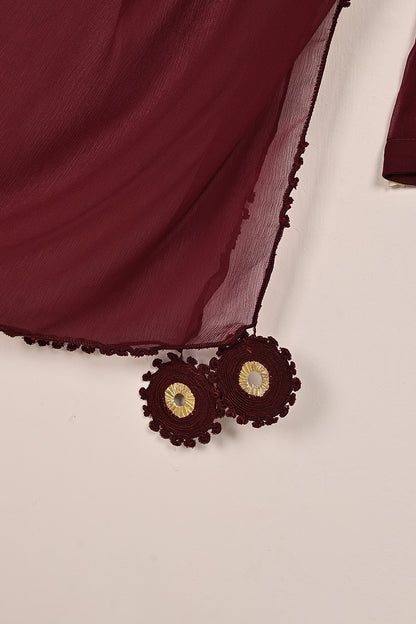 RTW-194-Maroon - 3Pc Ready To Wear Chiffon Frock