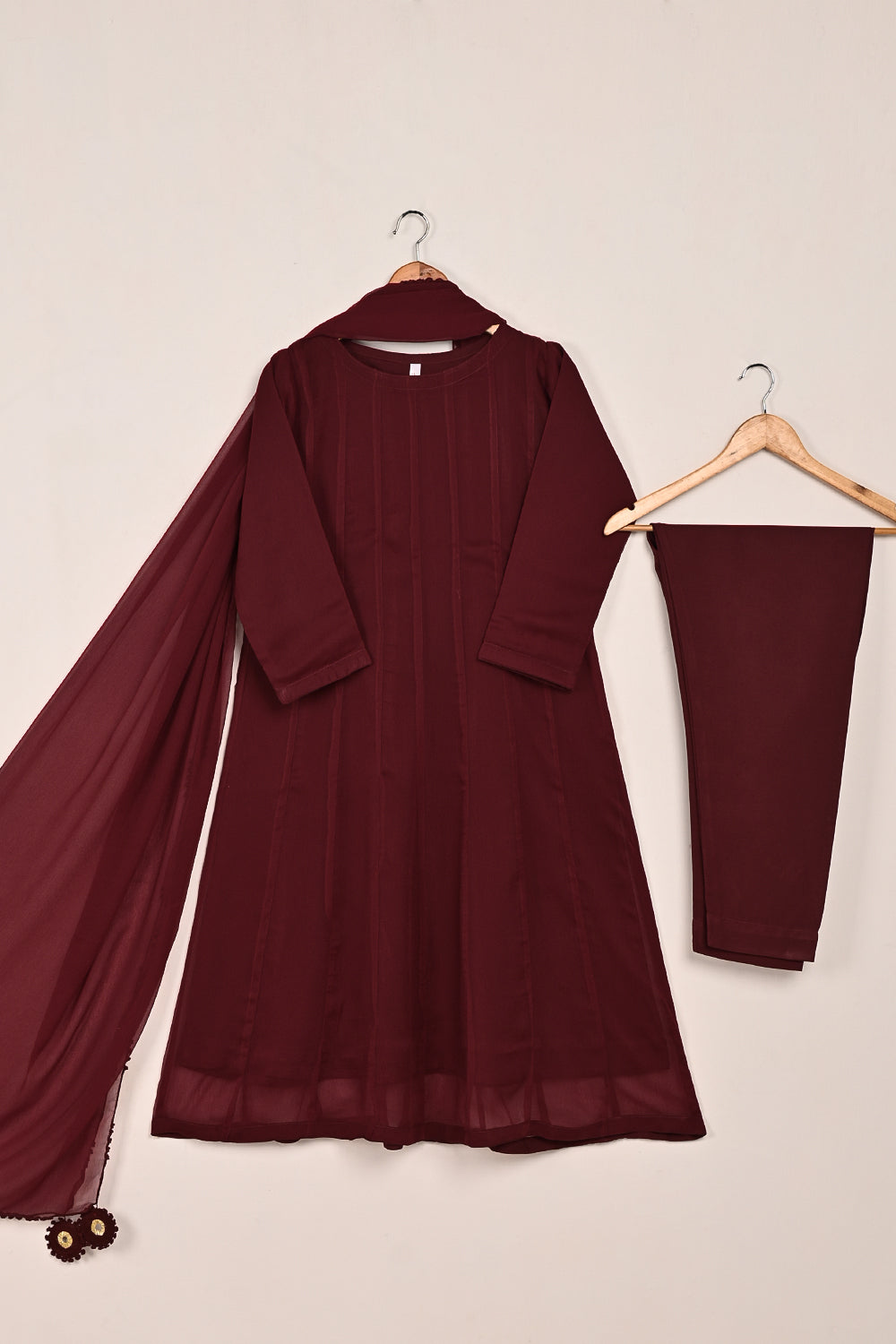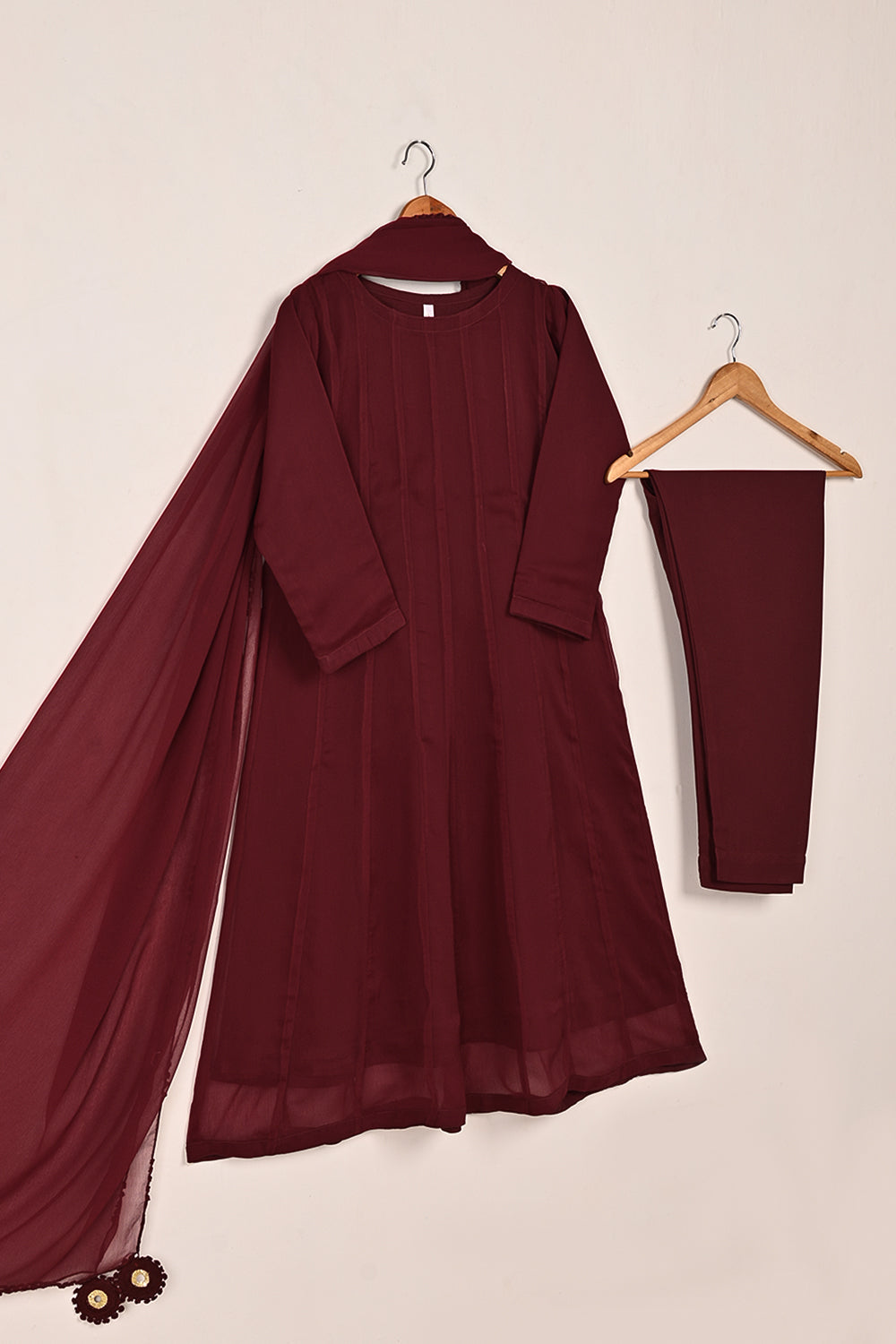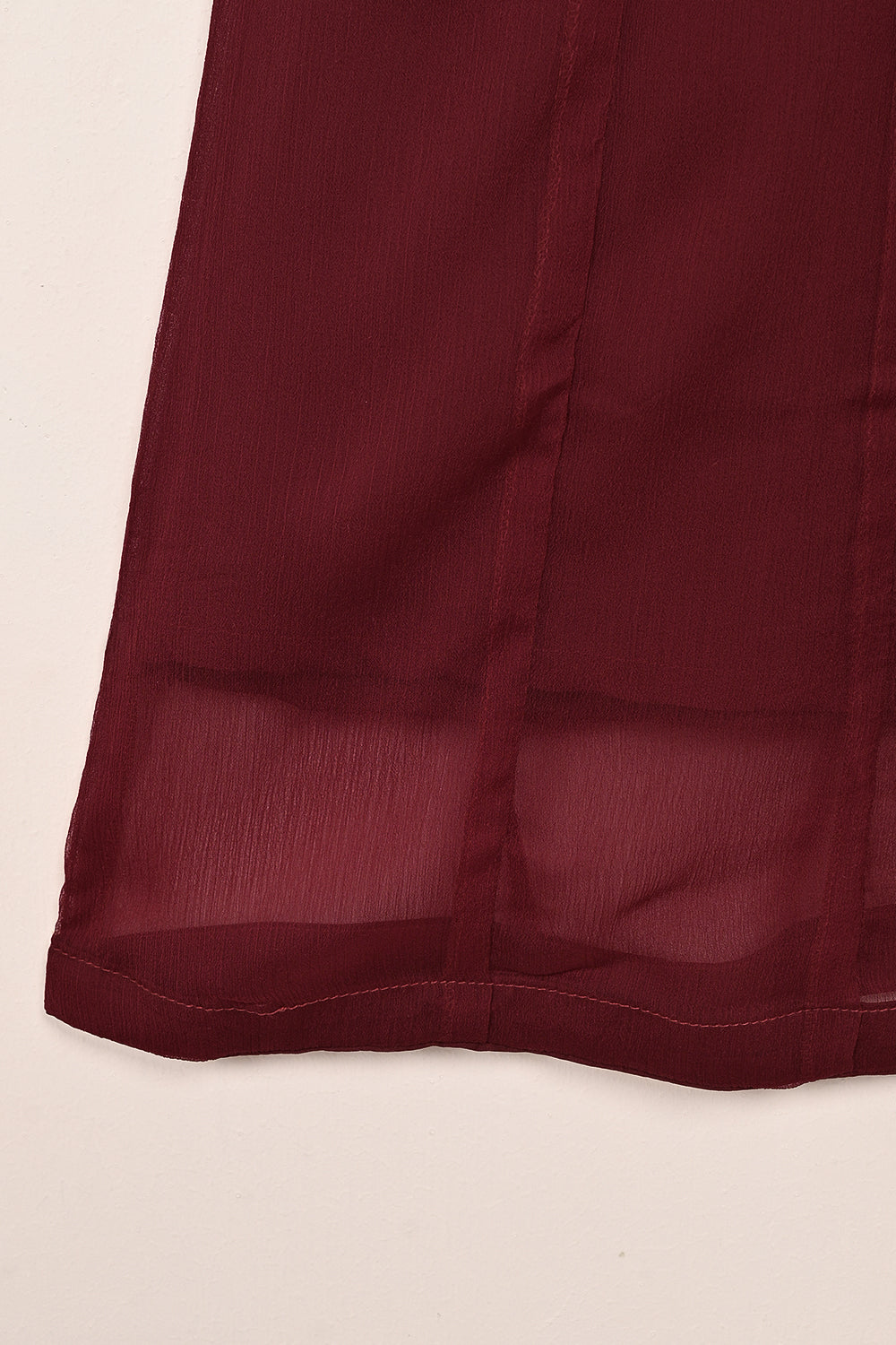 RTW-194-Maroon - 3Pc Ready To Wear Chiffon Frock