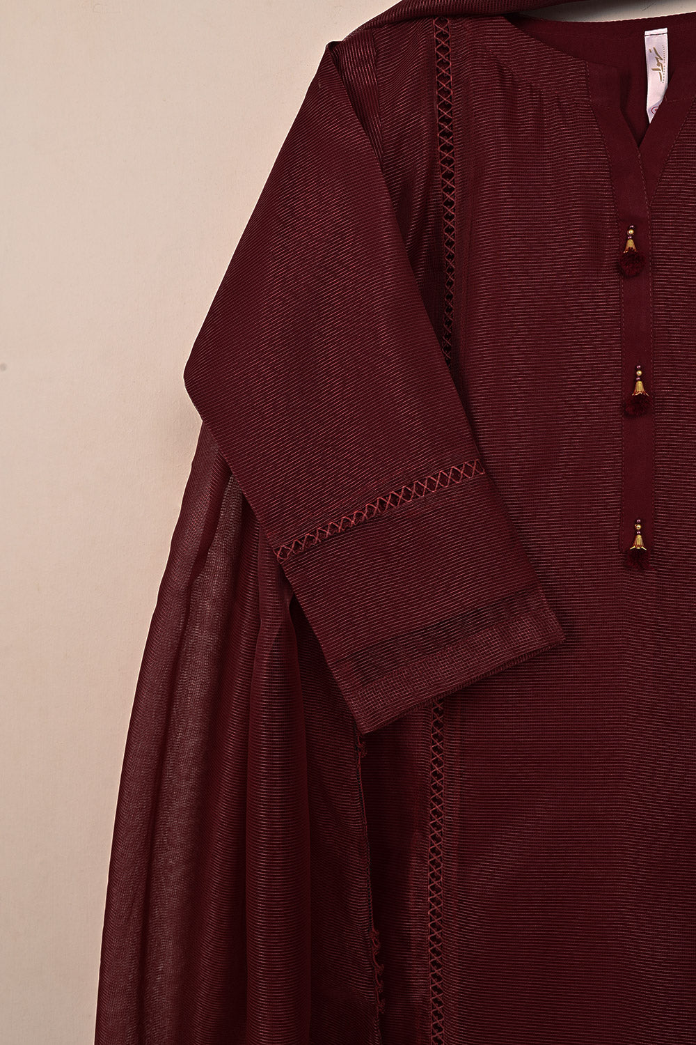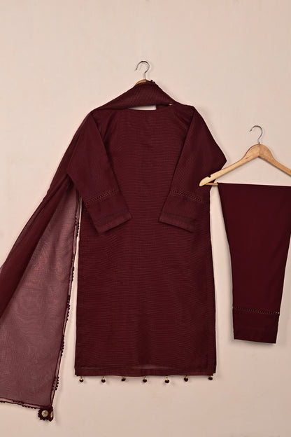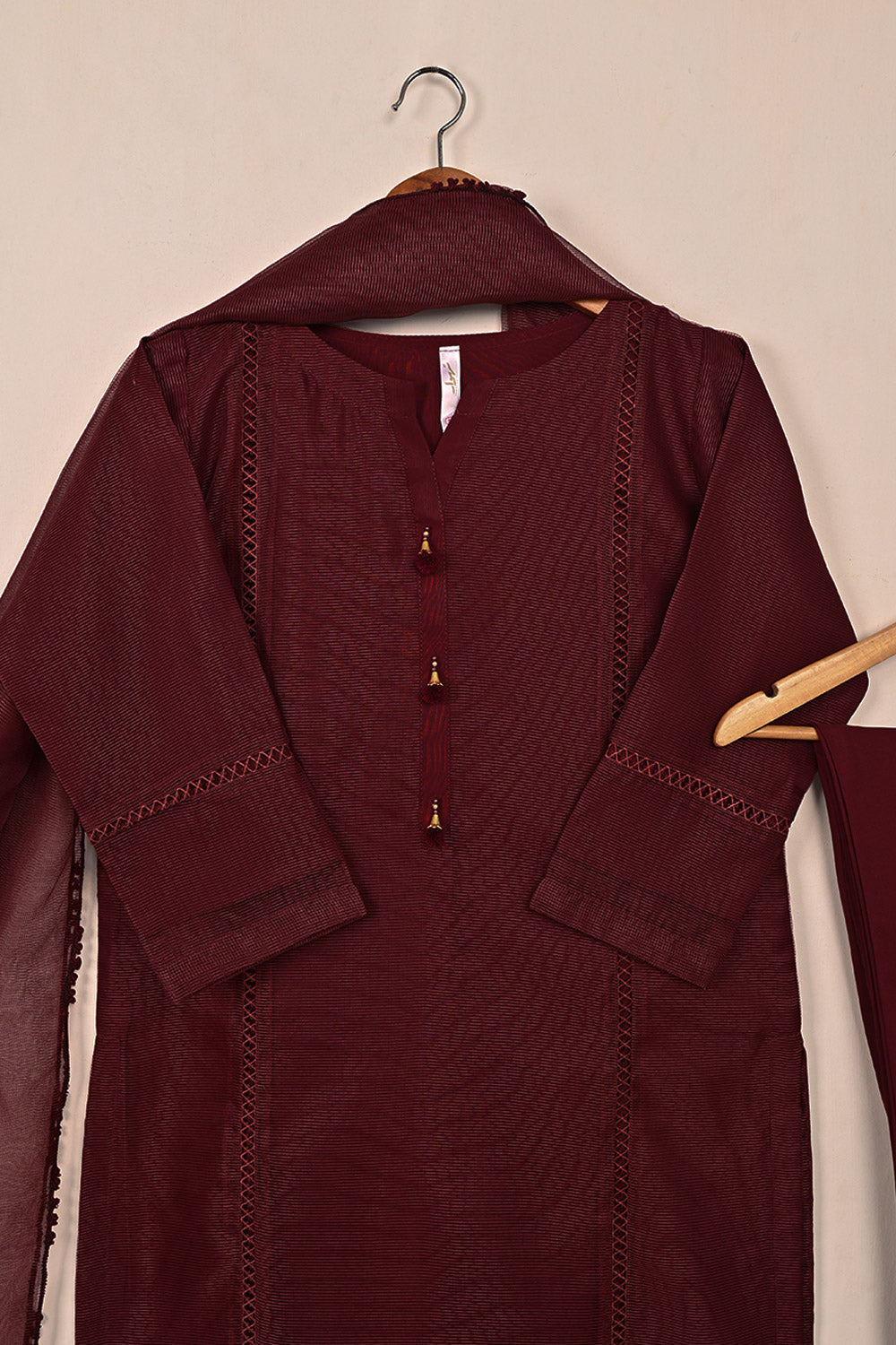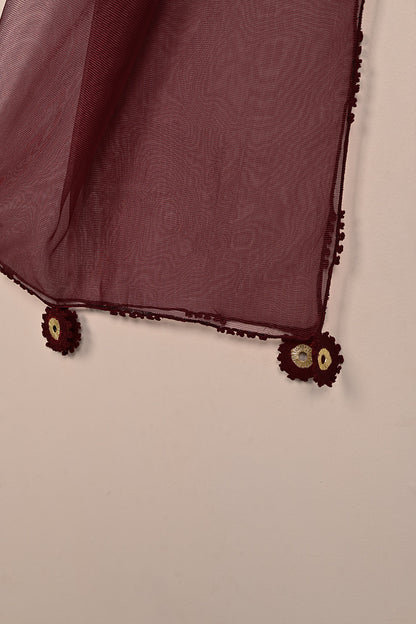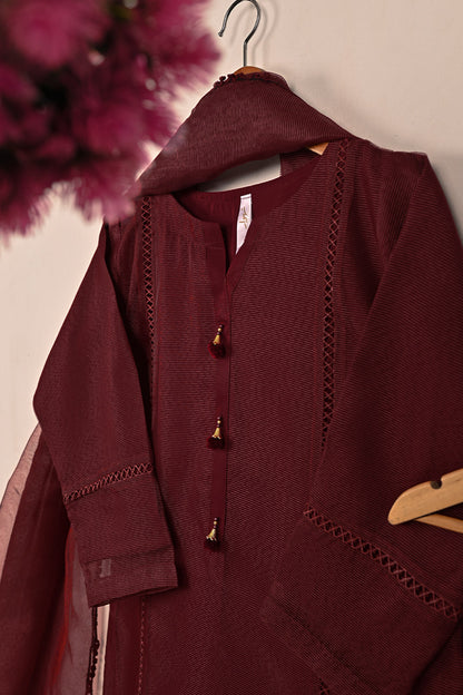 RTW-203-Maroon - 3Pc Ready to Wear Javeria Net Dress