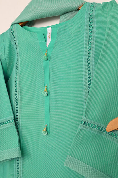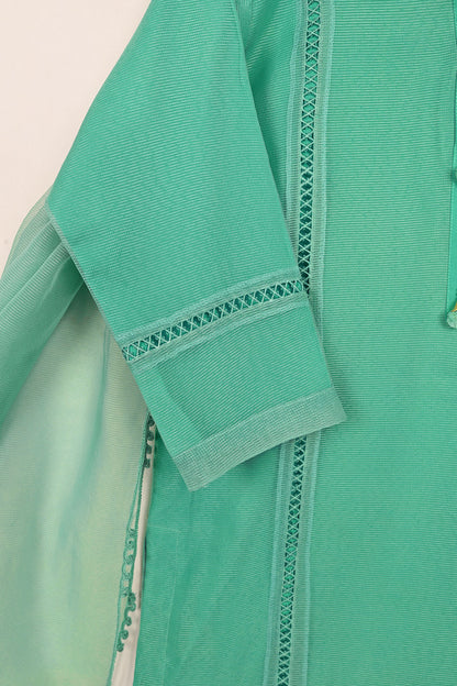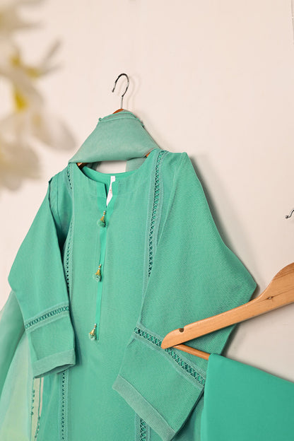 RTW-206-Green - 3Pc Ready to Wear 3Pc Javeria Net Embroidered Dress