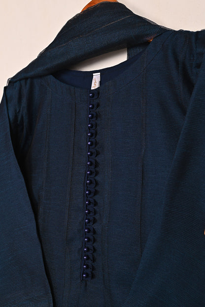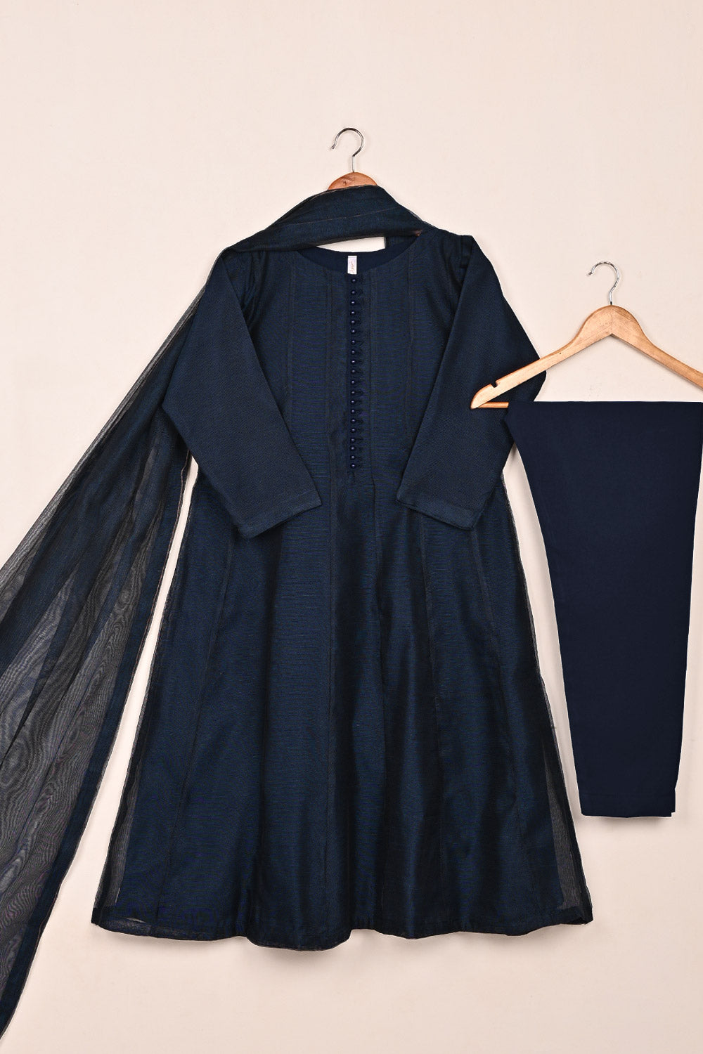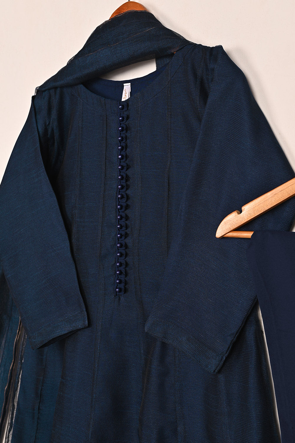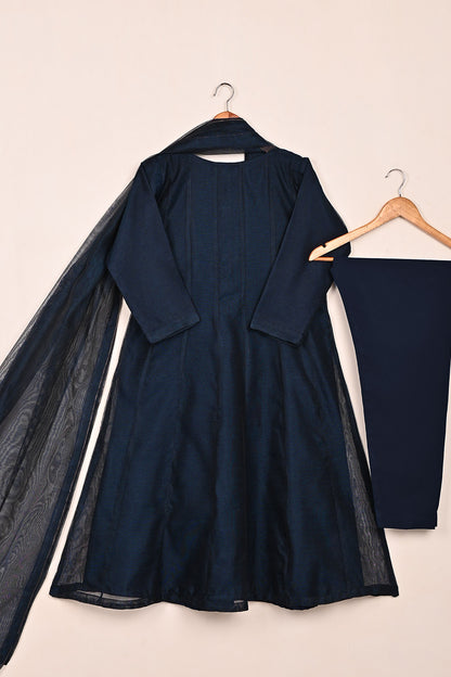 RTW-225-NavyBlue - 3Pc Ready to Wear Khaddi Net Frock