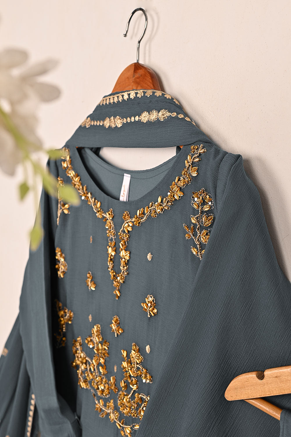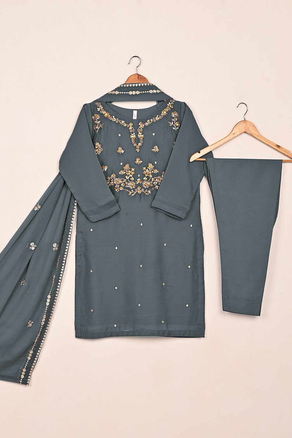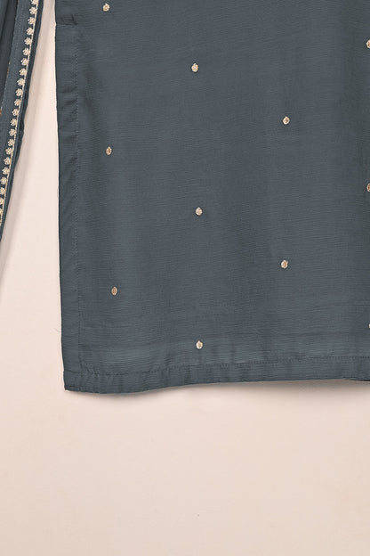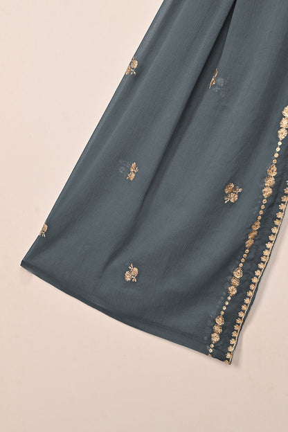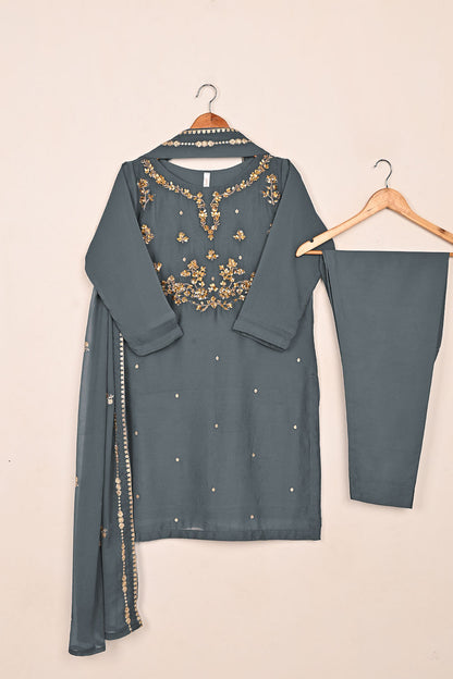 RTW-232-Gray - 3Pc Ready to Wear Embroidered Adda Work Chiffon Dress