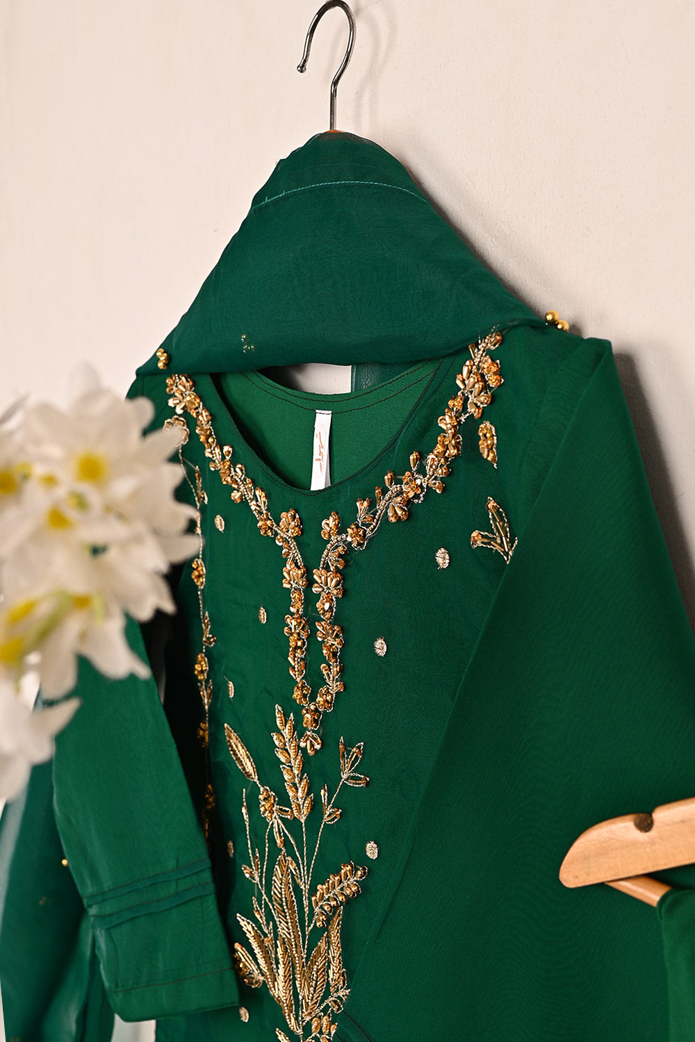 - Embroidered Organza Adda Work Shirt