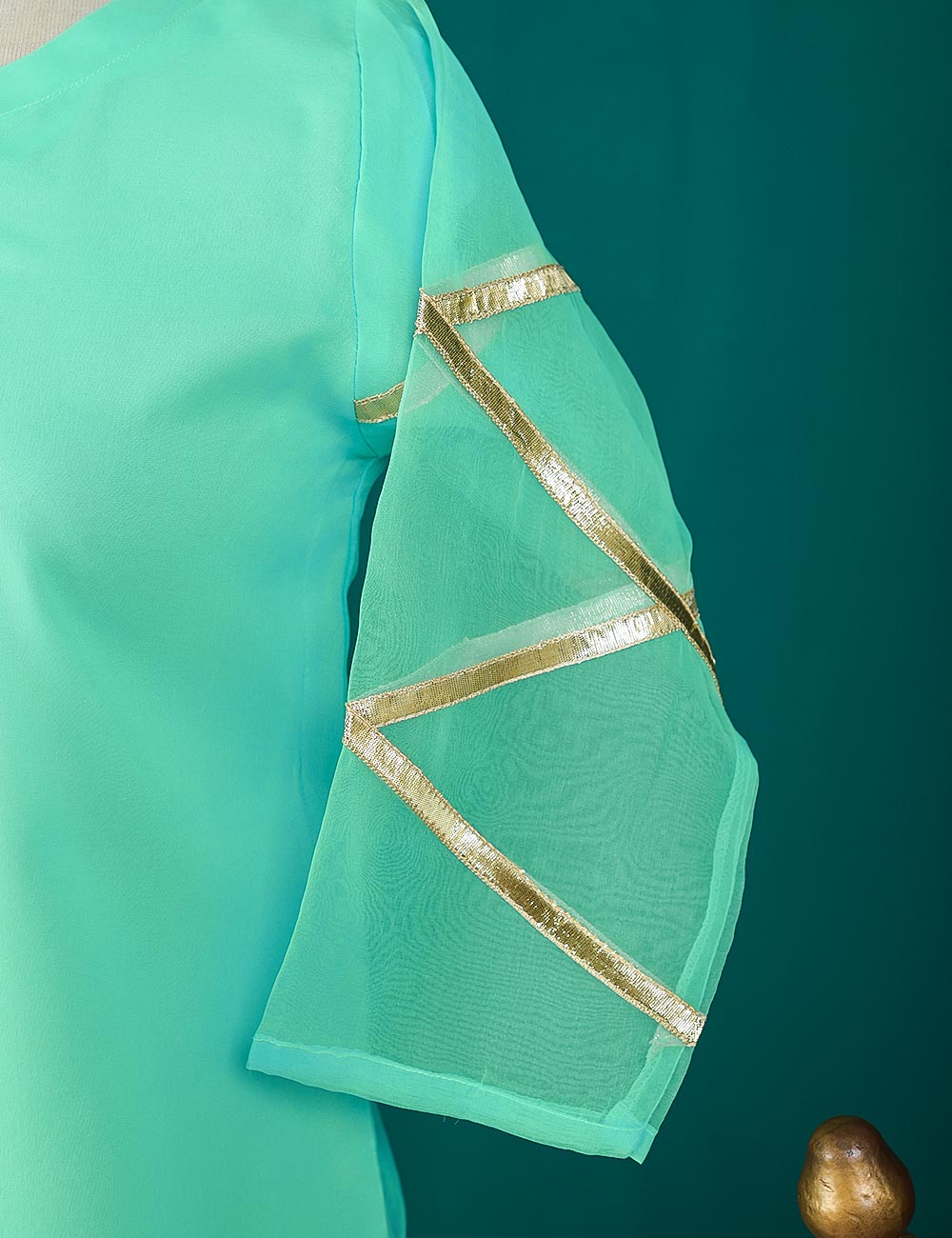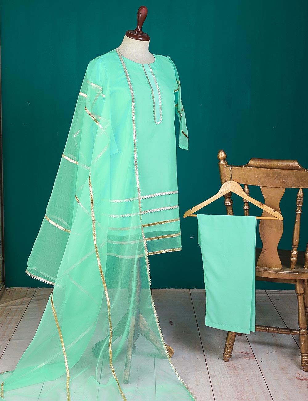 3 Pc Stitched Organza Suit With Organza Dupatta and Malai Trouser - Wayfarer (RTW-24-AquaGreen)