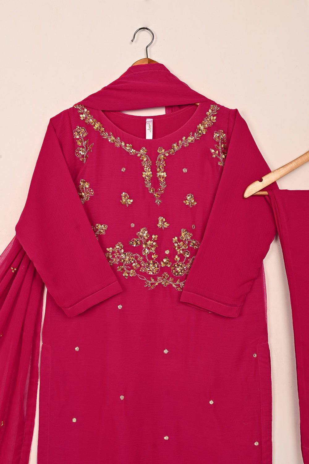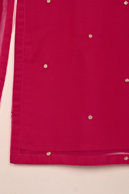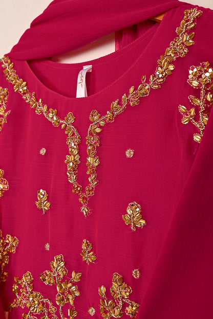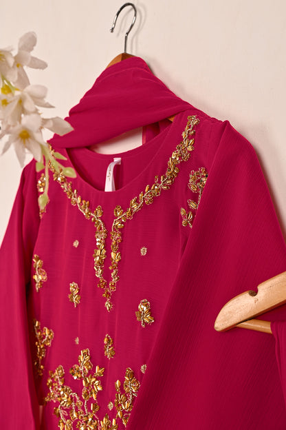 RTW-244-Fuchsia - 3Pc Ready to Wear Embroidered Adda Work Chiffon Dress