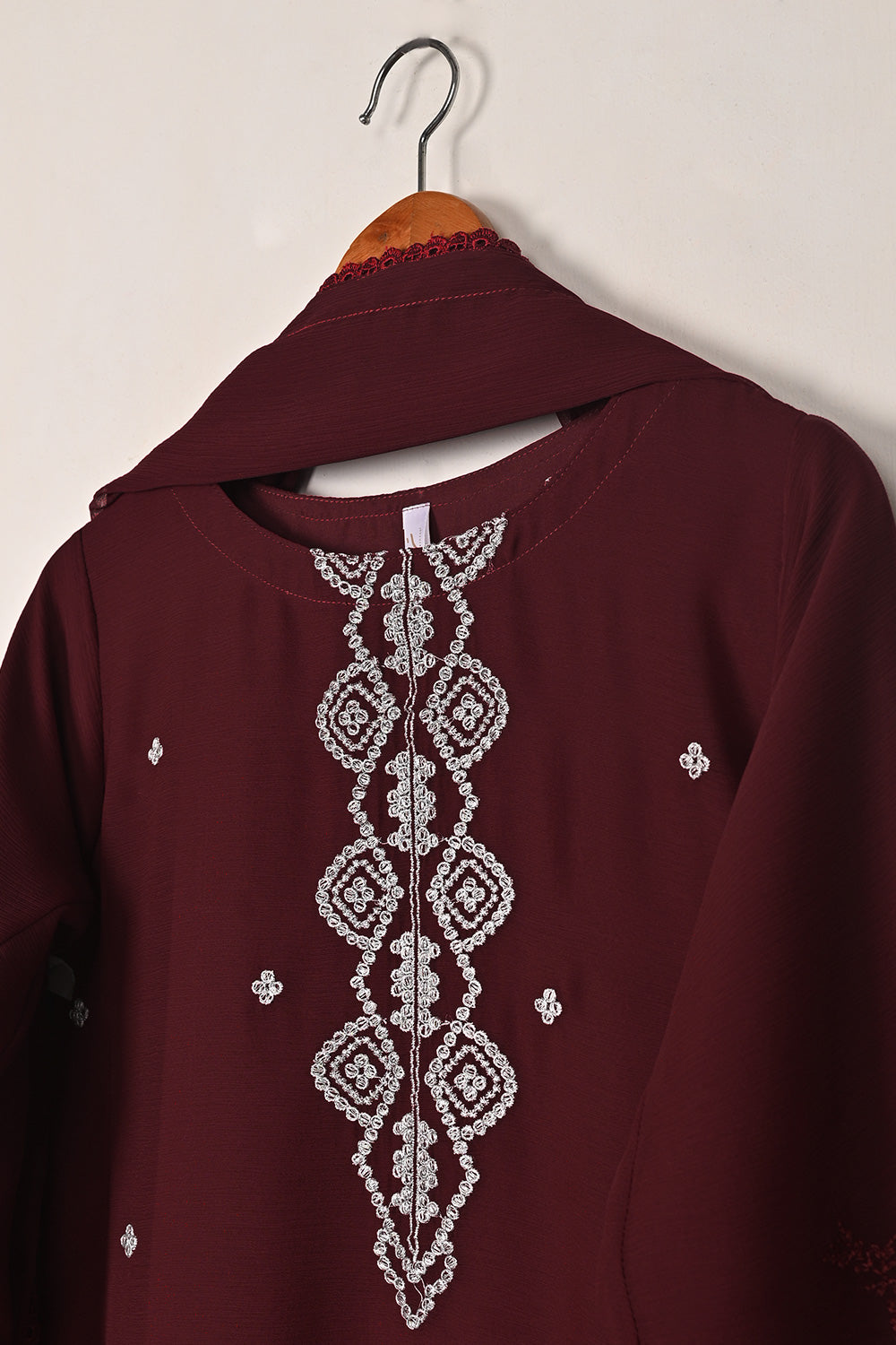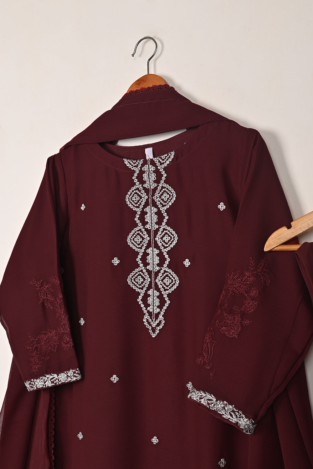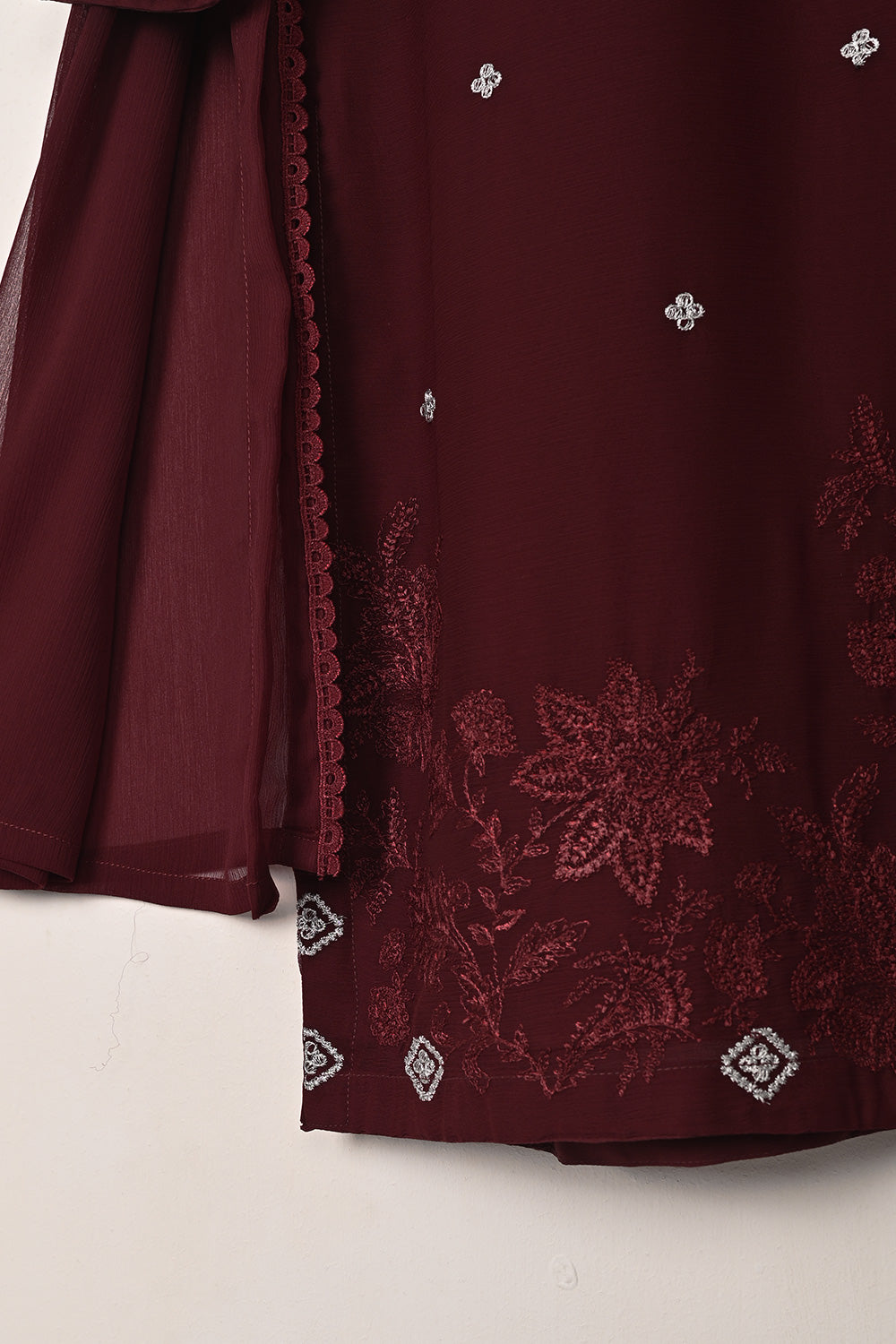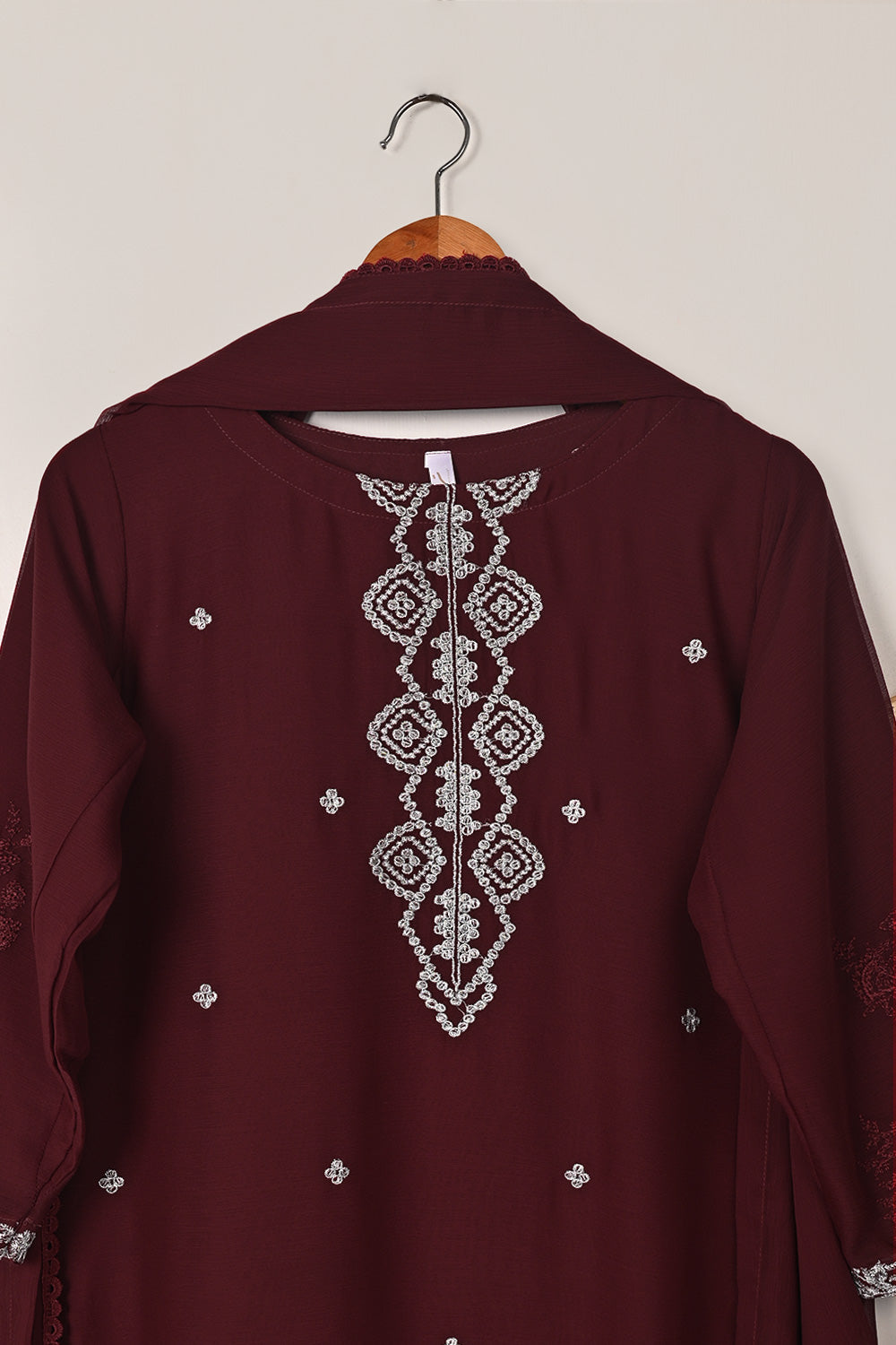 3Pc Ready to Wear Embroidered Chiffon Dress with Chiffon Embroidered Dupatta & Malai Trouser