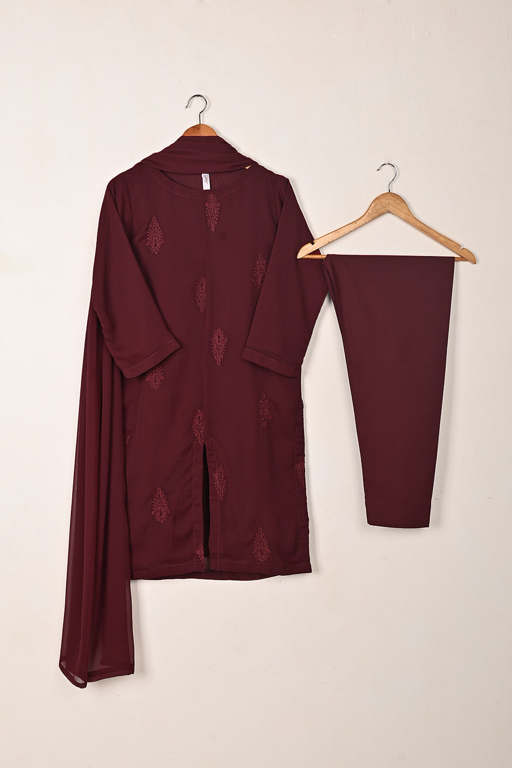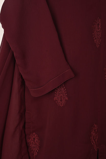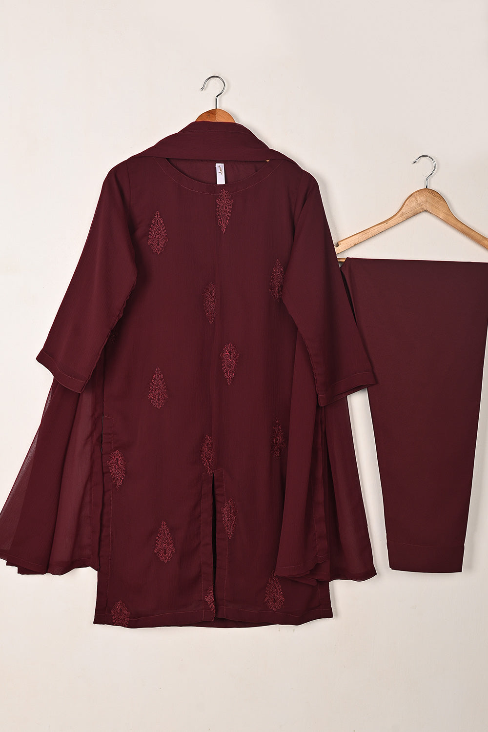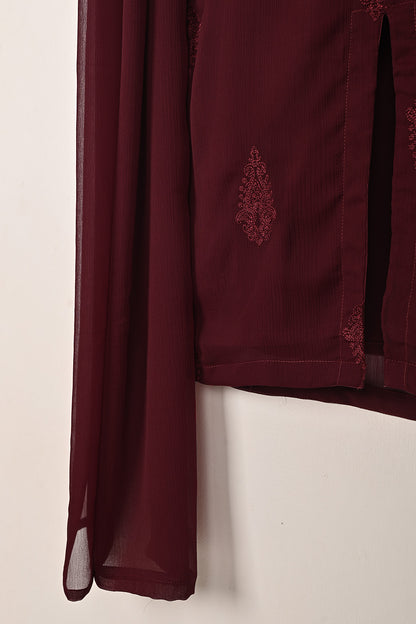 3Pc Ready to Wear Embroidered Chiffon Dress with Chiffon Embroidered Dupatta & Malai Trouser