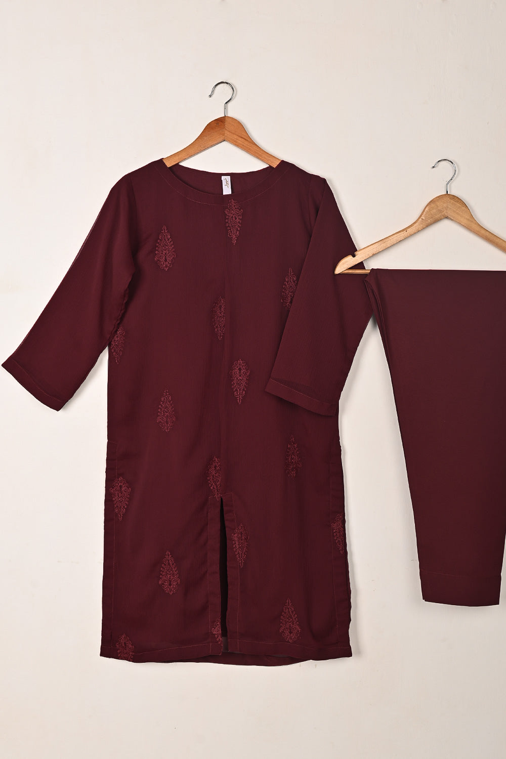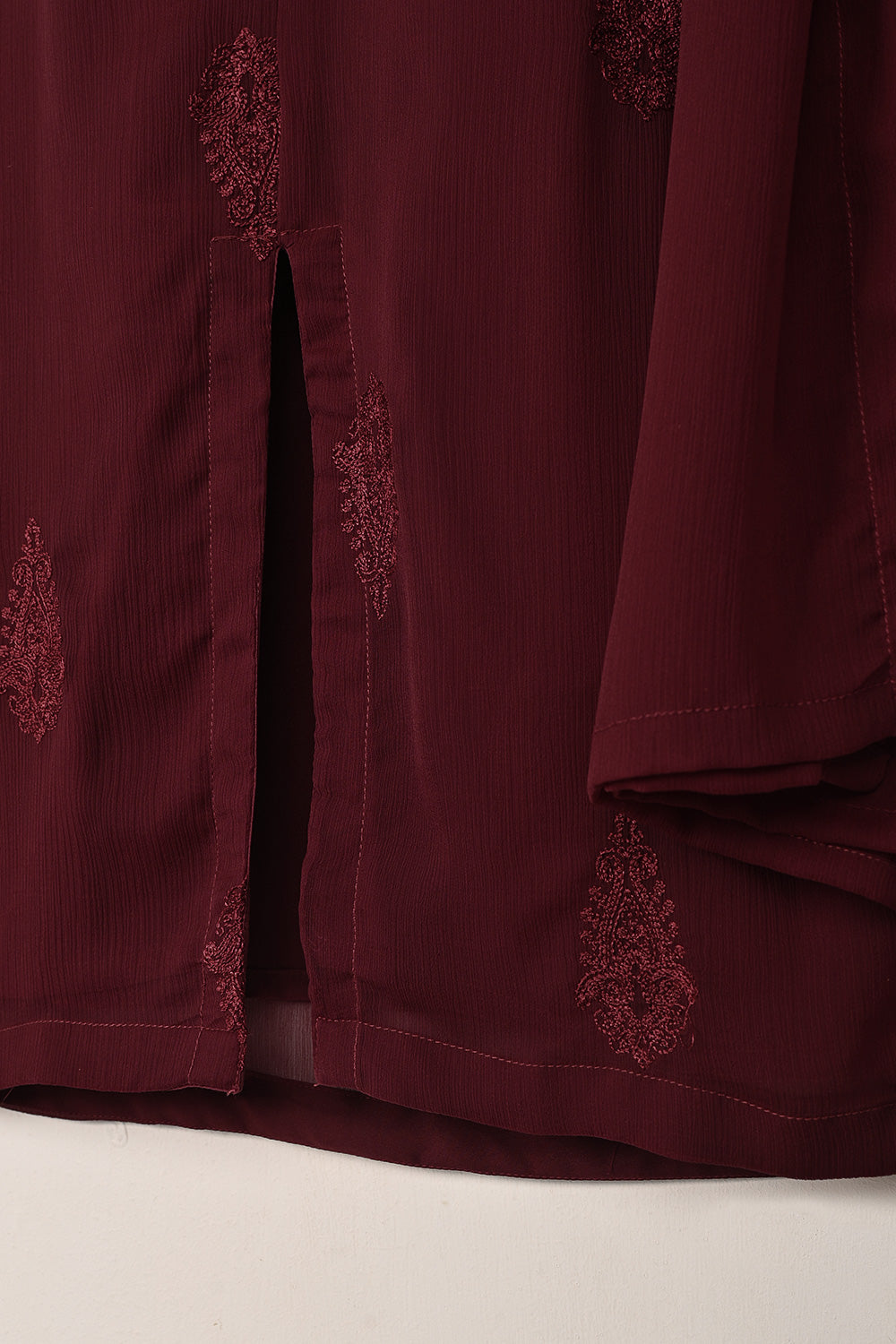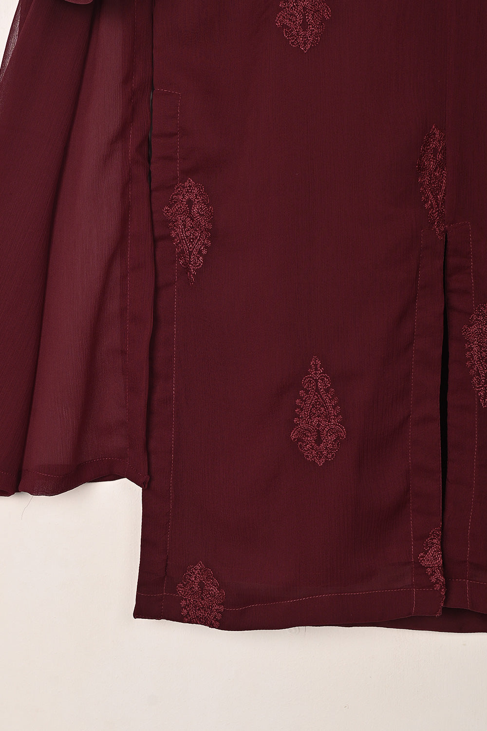 3Pc Ready to Wear Embroidered Chiffon Dress with Chiffon Embroidered Dupatta & Malai Trouser